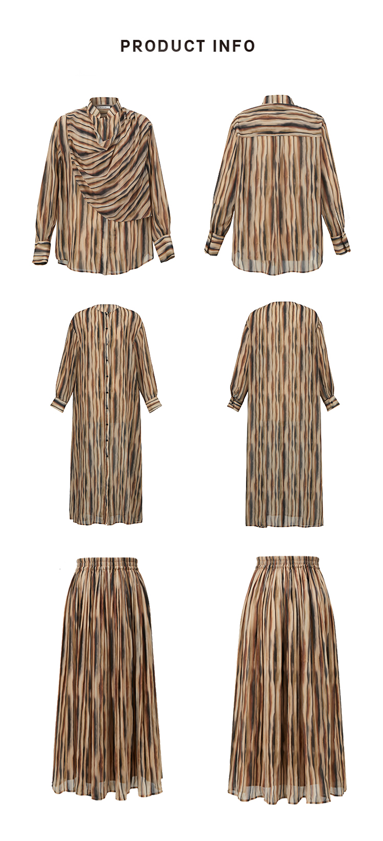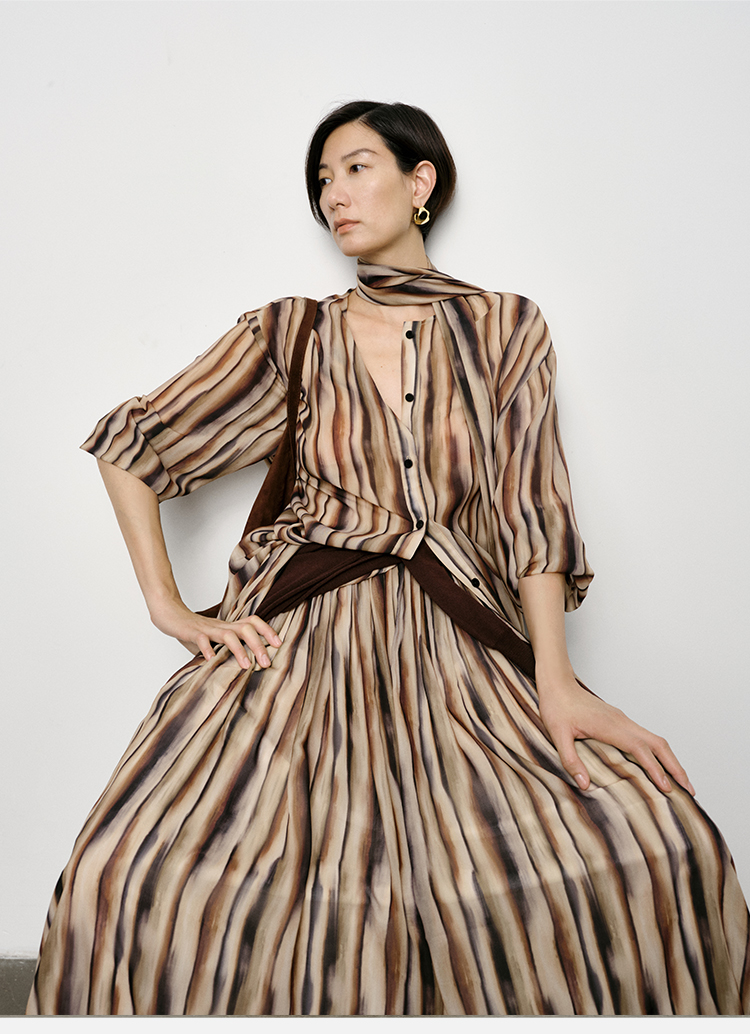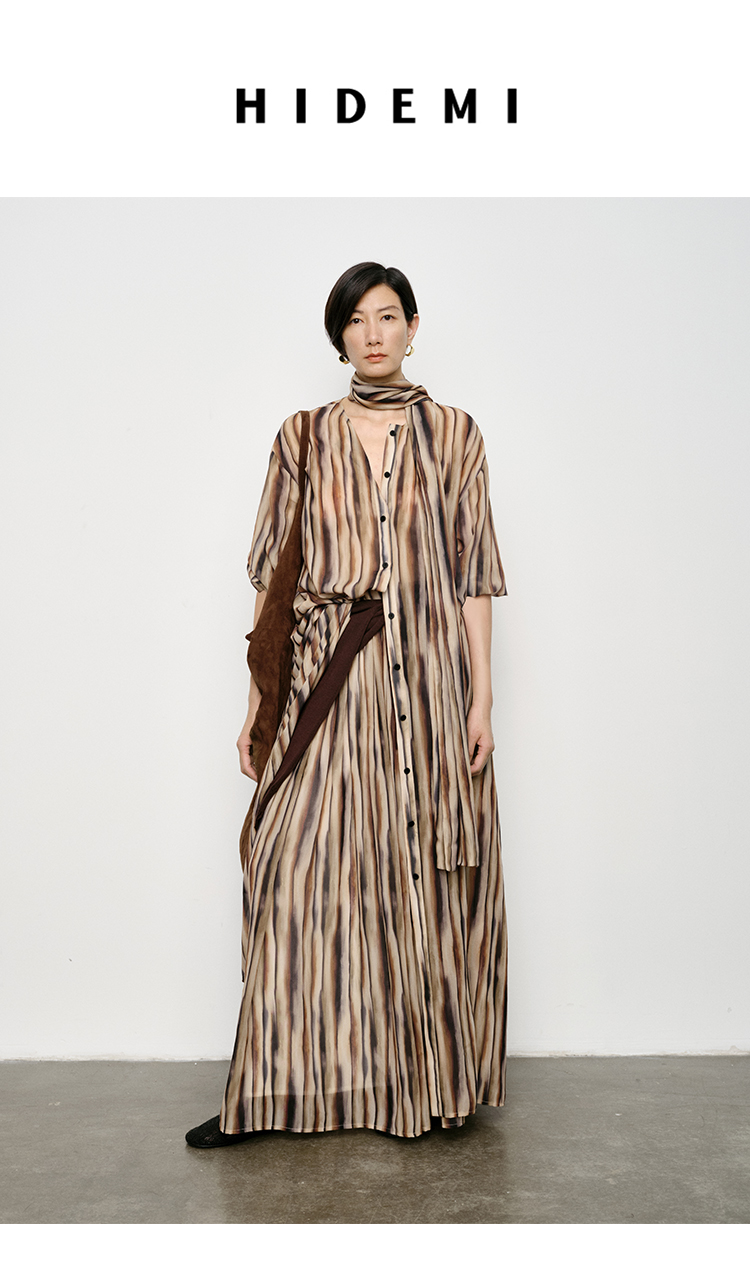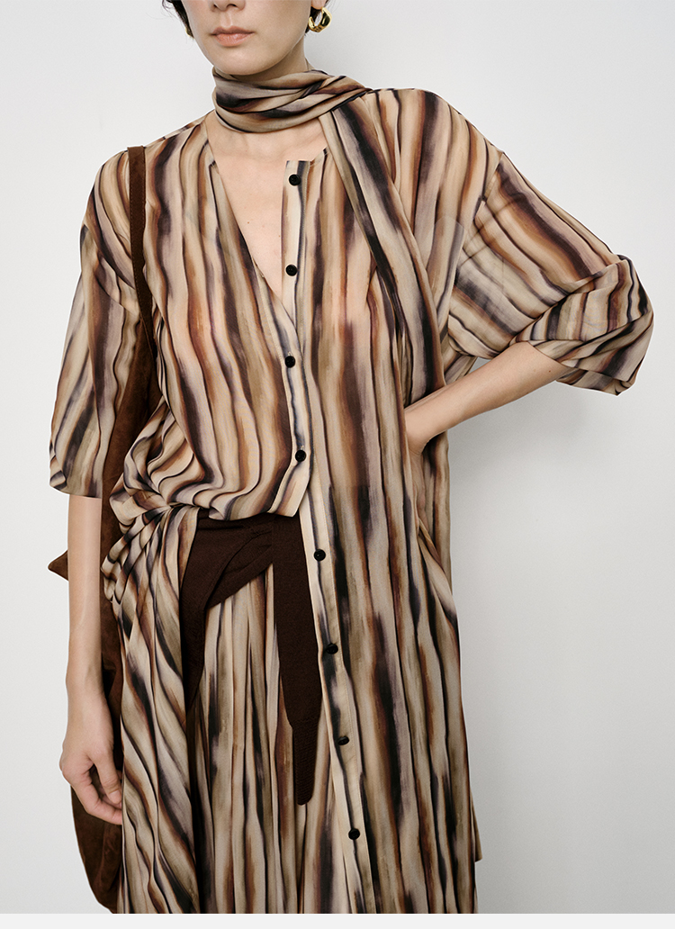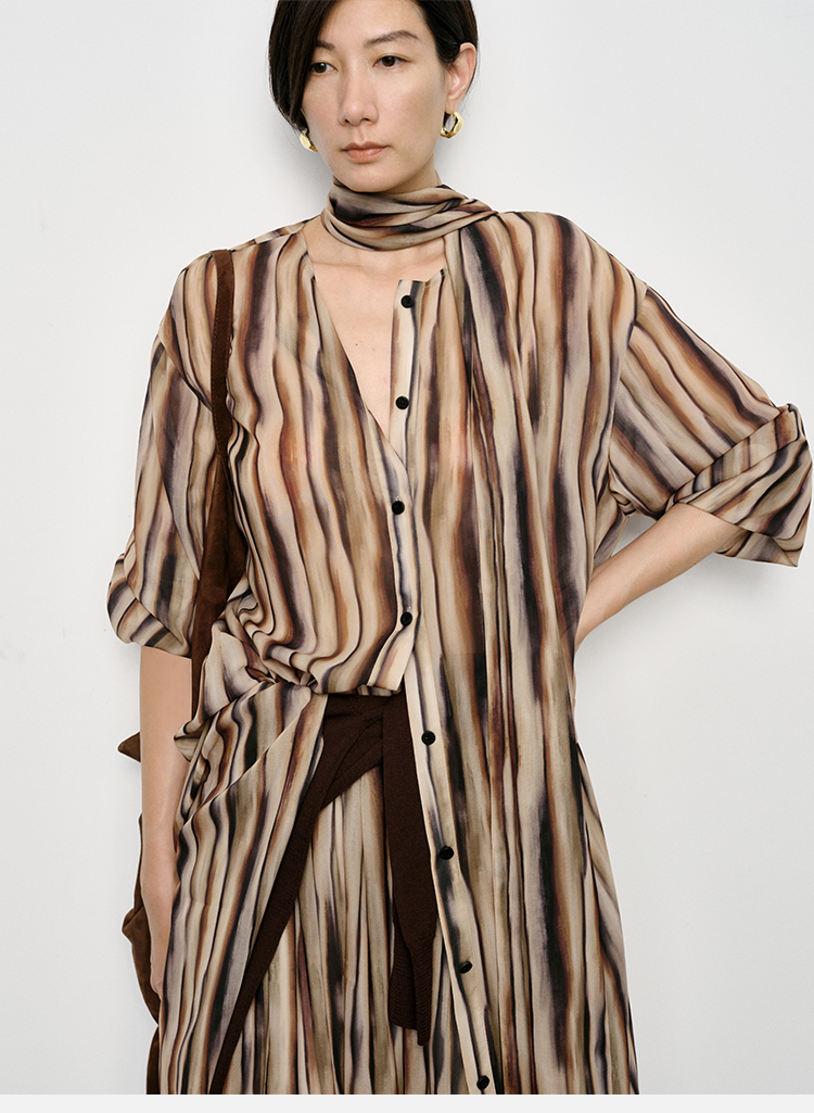 HIDEMI 河流抽象印花轻柔丝巾式极简衬衫/半身裙/连衣裙