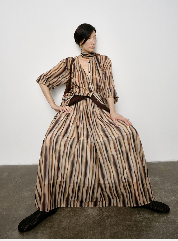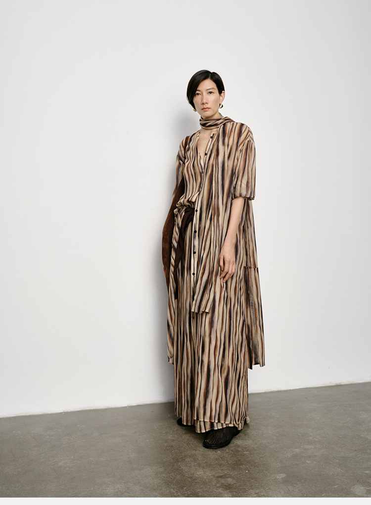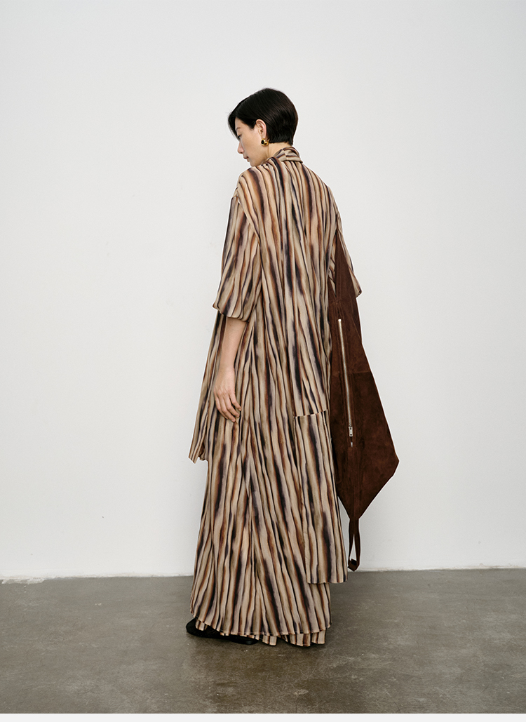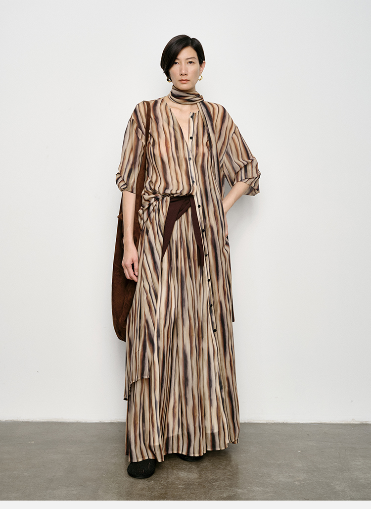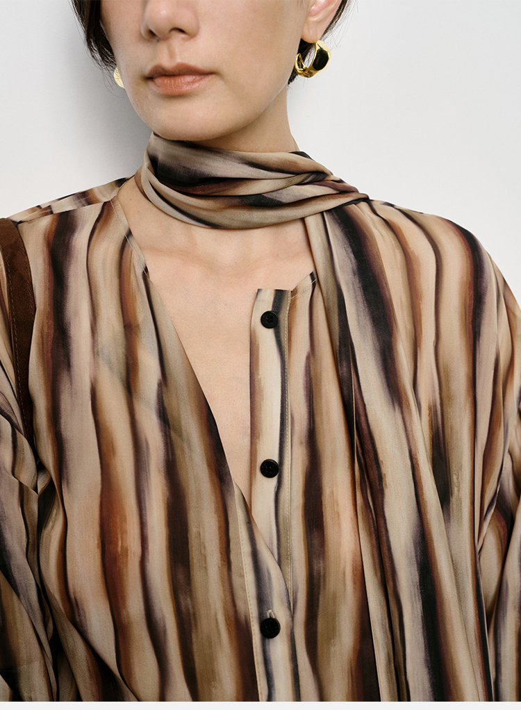 HIDEMI 河流抽象印花轻柔丝巾式极简衬衫/半身裙/连衣裙