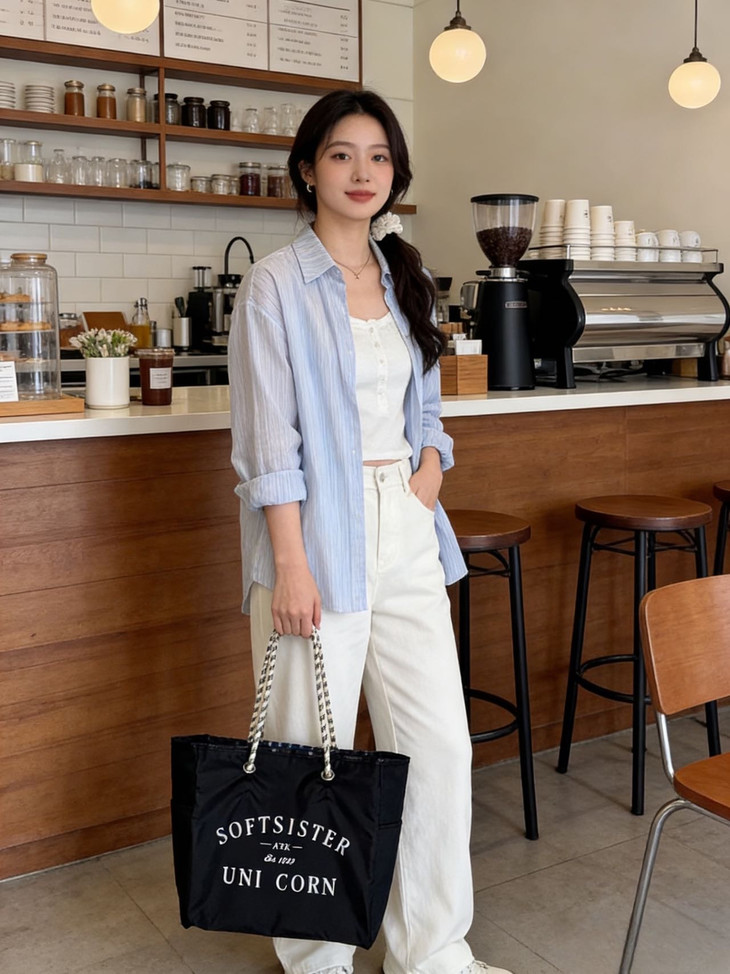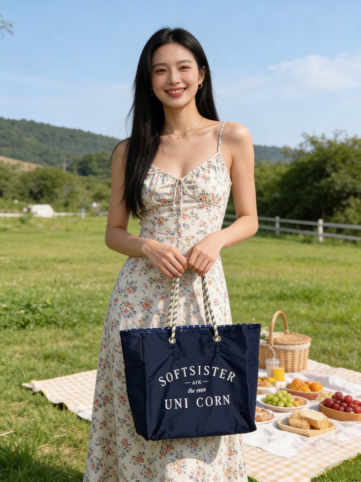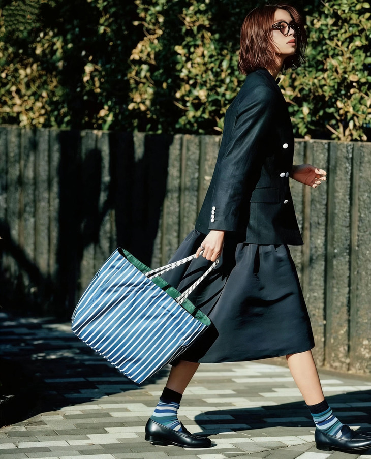 蓝色托特包百搭不挑人 搭配简约T恤休闲随性配衬衫文艺清新 搭长裙温柔浪漫。春夏背清爽减龄 轻松打造松弛感造型 日常出门、上班、约会都合适 随性一背就很有博主范