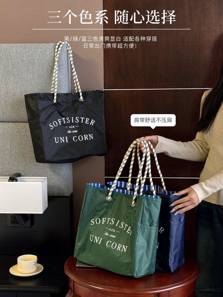 托特包采用加厚防水牛津布+尼龙面料 手感柔软却强韧耐磨,防刮、抗造 日常使用完全不娇气 优质面料自带挺括感不软塌不瘪形 轻身无负担,背久肩膀也不累 质感在线的一款!!耐用度直接拉满👍