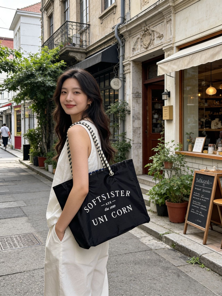 黑色托特包堪称万能搭配神器 搭配T恤、牛仔裤简约随性 配衬衫、西装干练通勤搭连衣裙温柔气质 春夏背利落显精神秋冬背沉稳有格调 慵懒随性又时髦轻松打造各种风格 日常出门随手一背就很好看啦