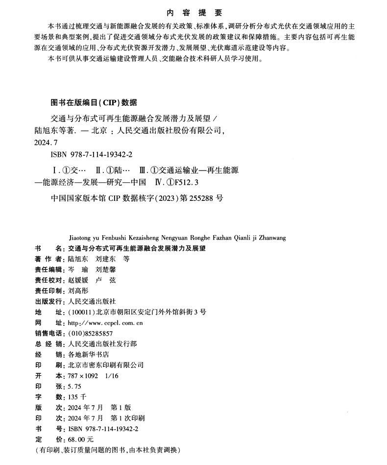 书名:交通与分布式可再生能源融合发展潜力及展望