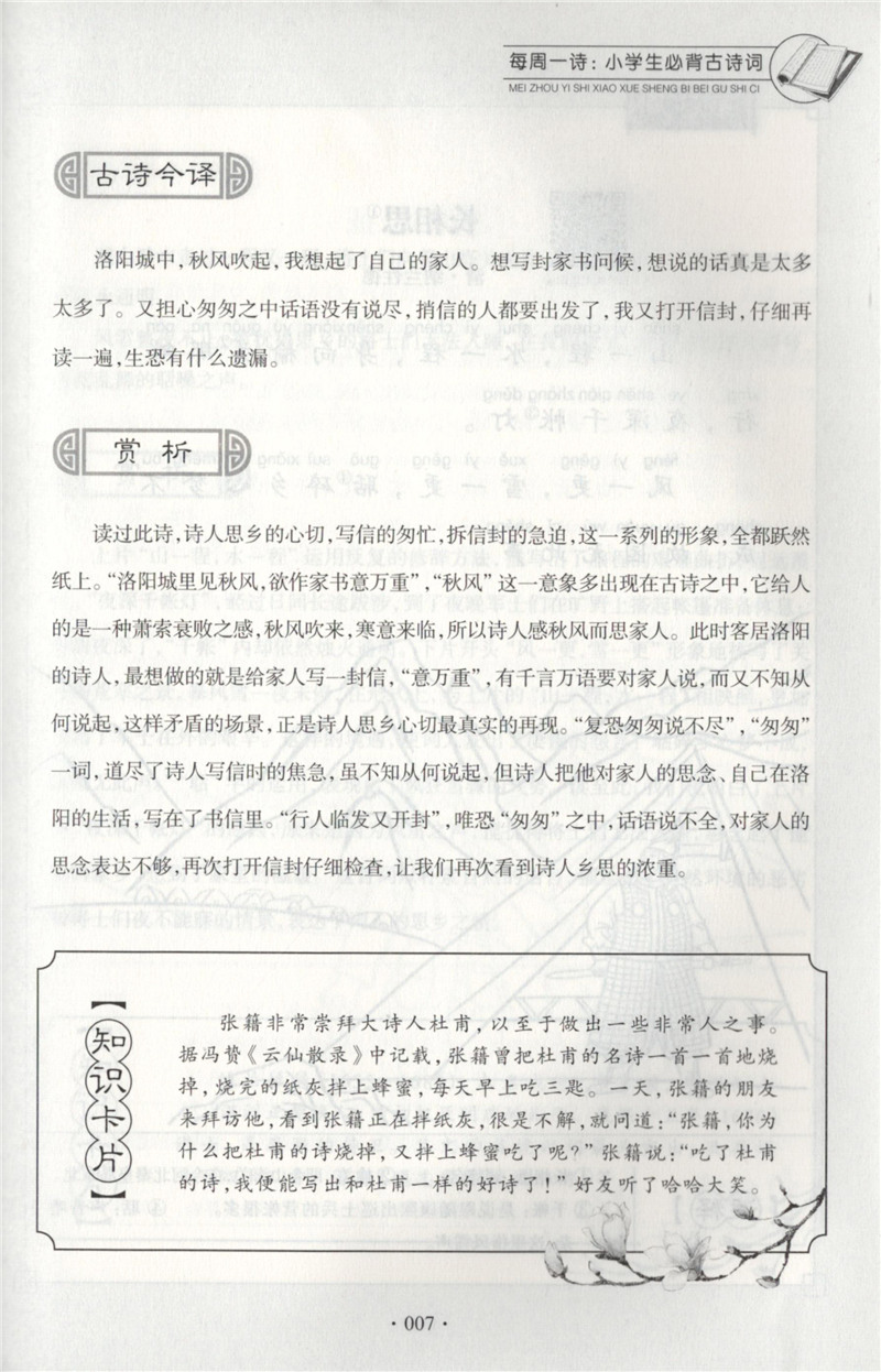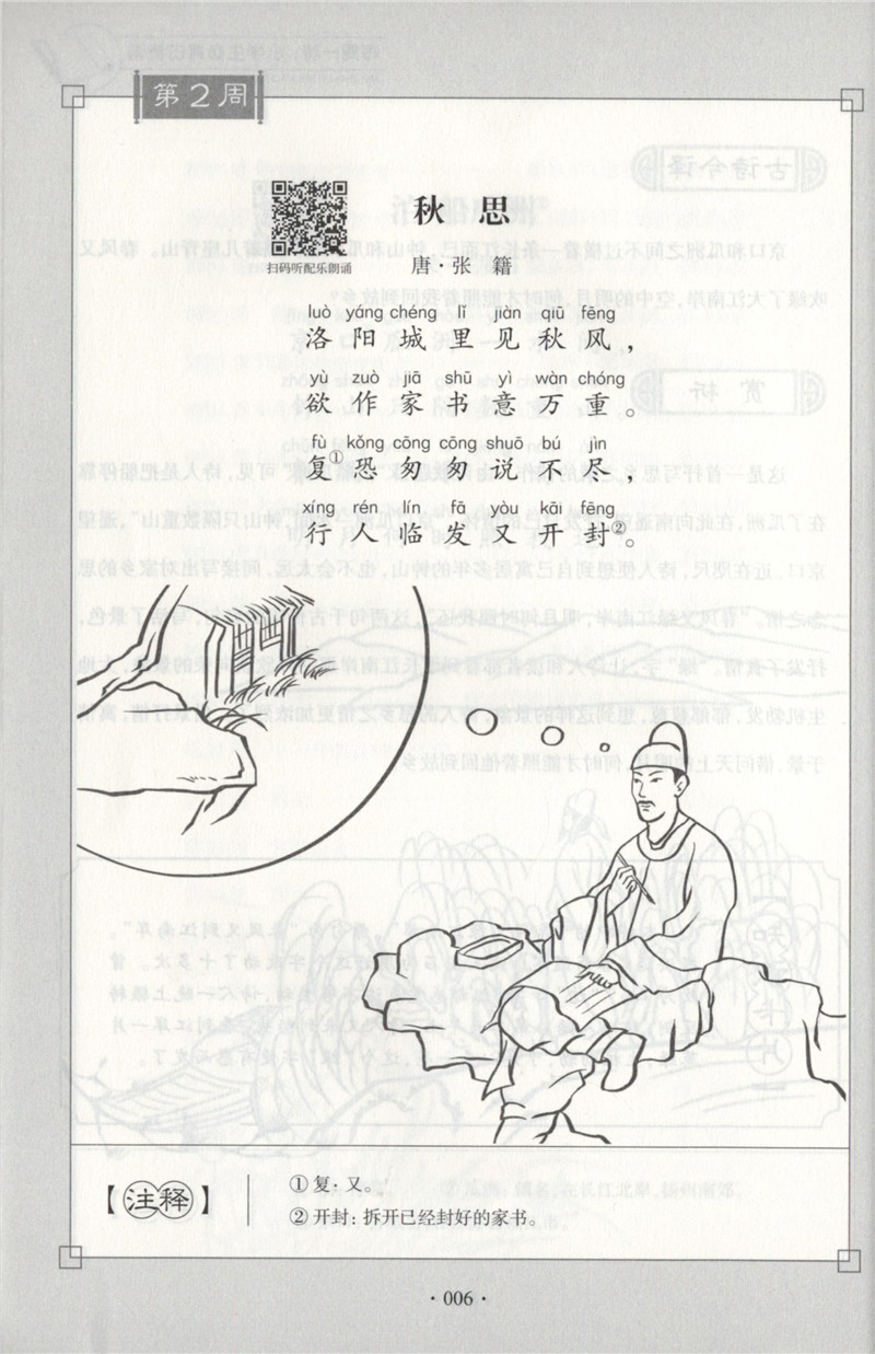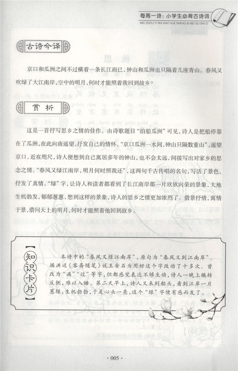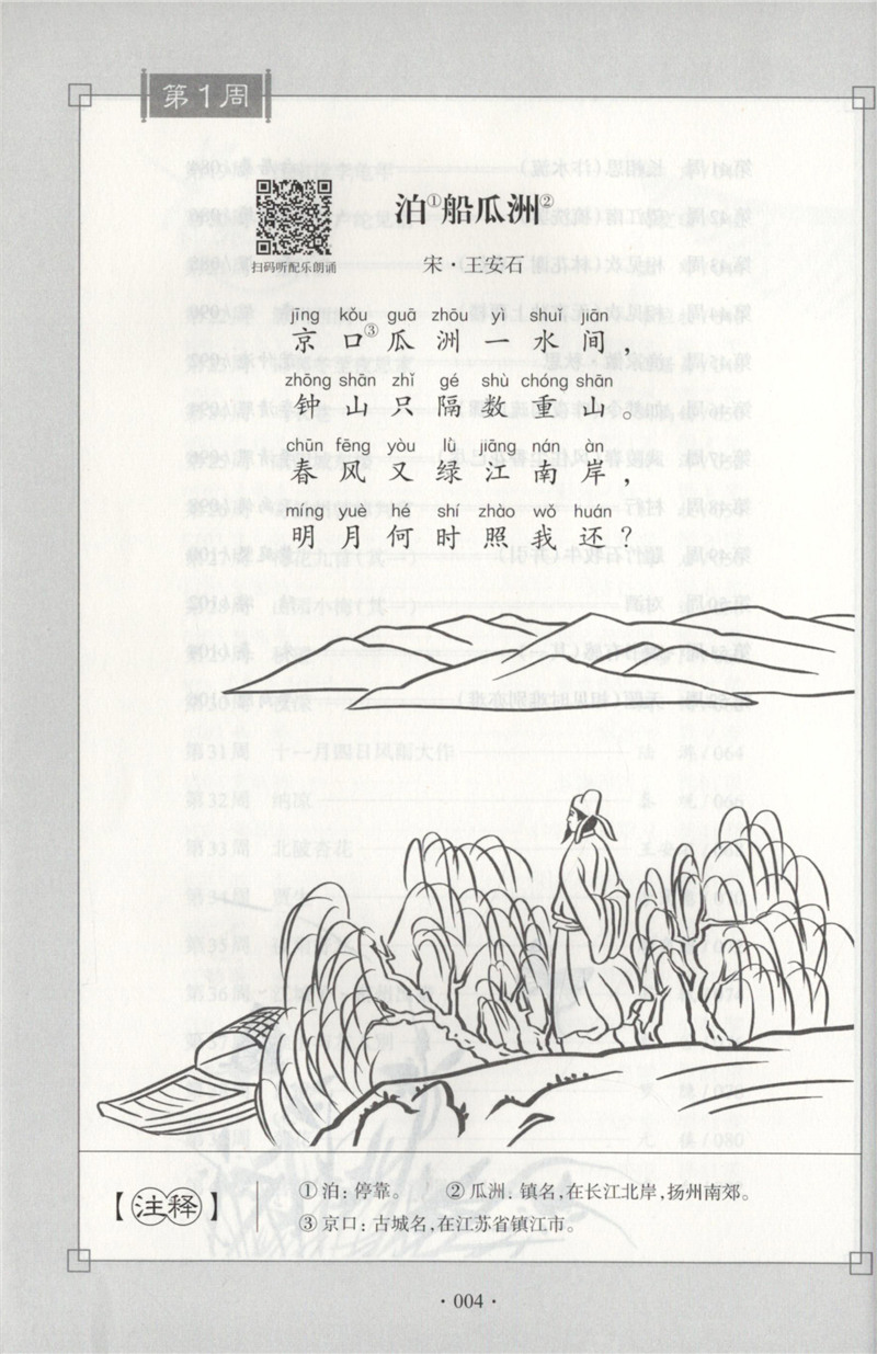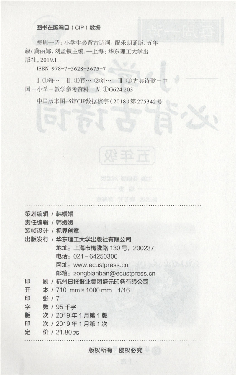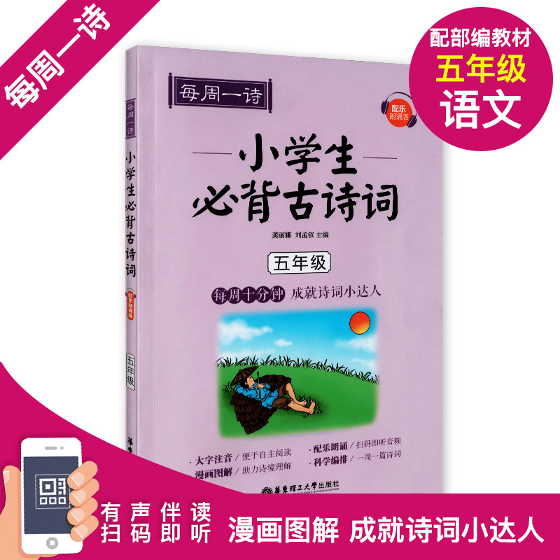 每周一诗 小学生必背古诗词 语文五年级/5年级 注音配乐朗诵 部编版扫码获取配套音频 华东理工大学出版社