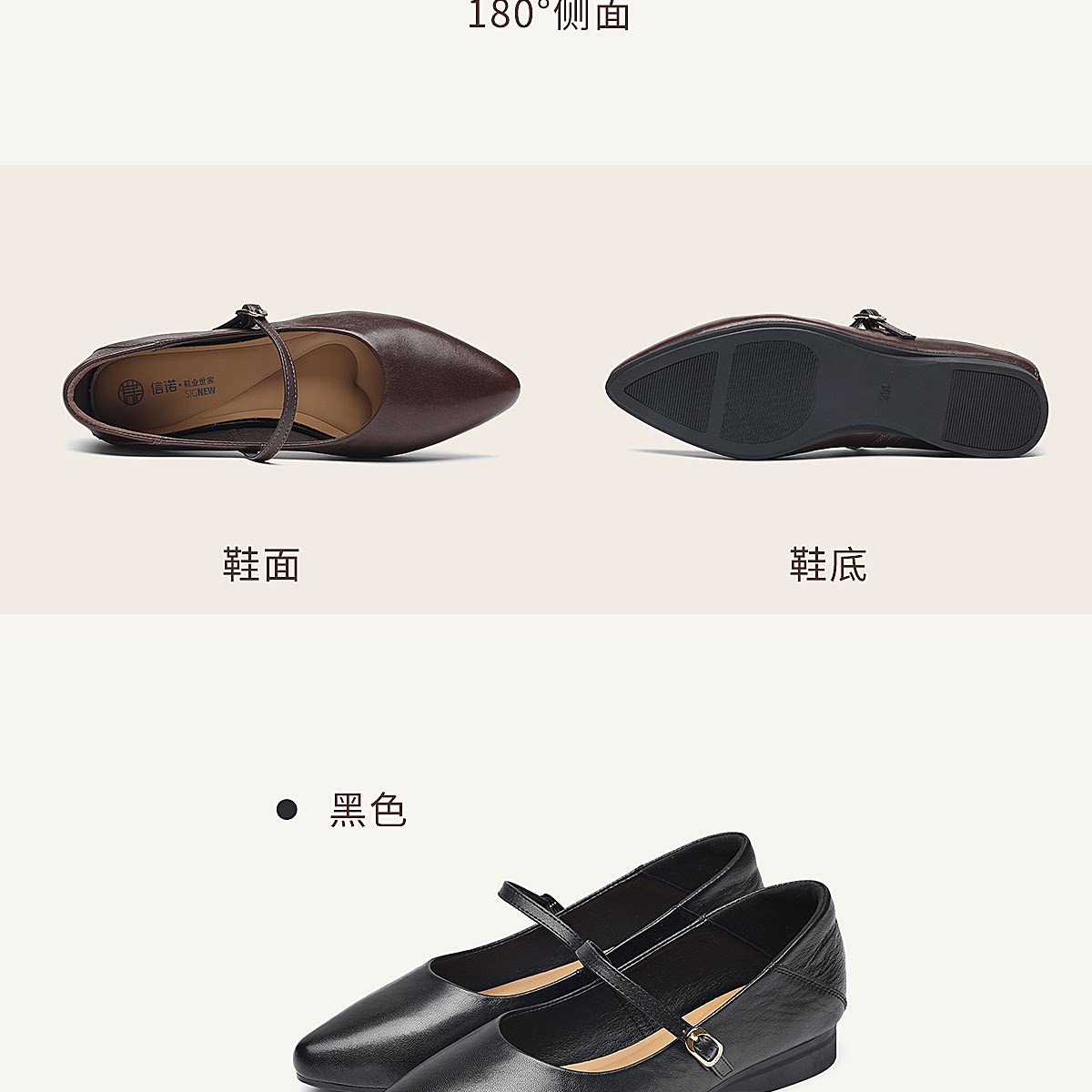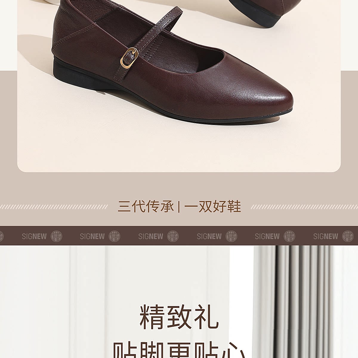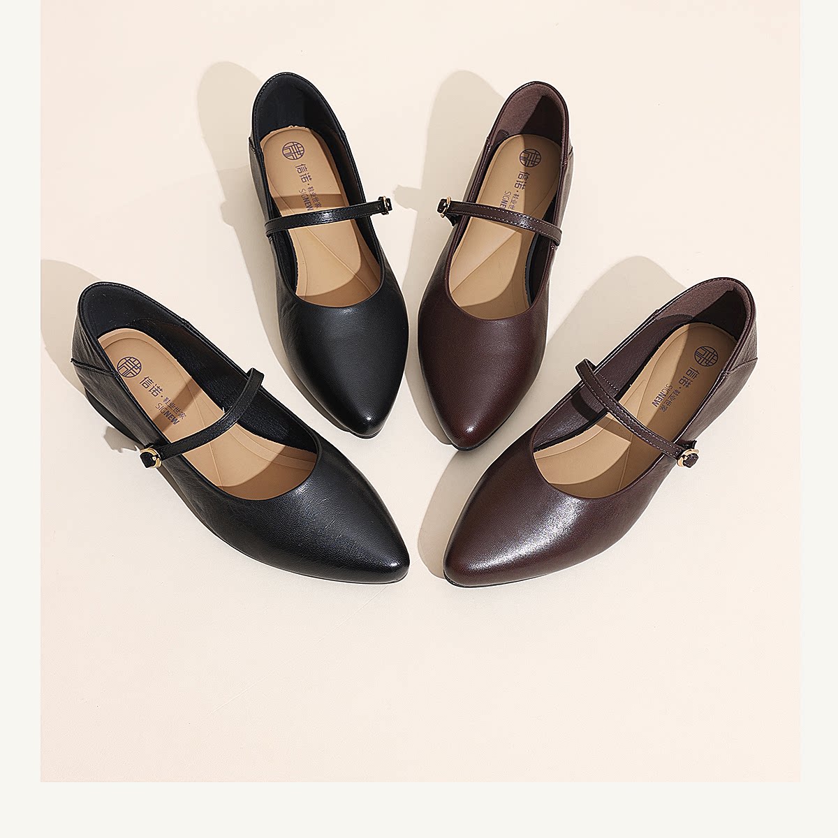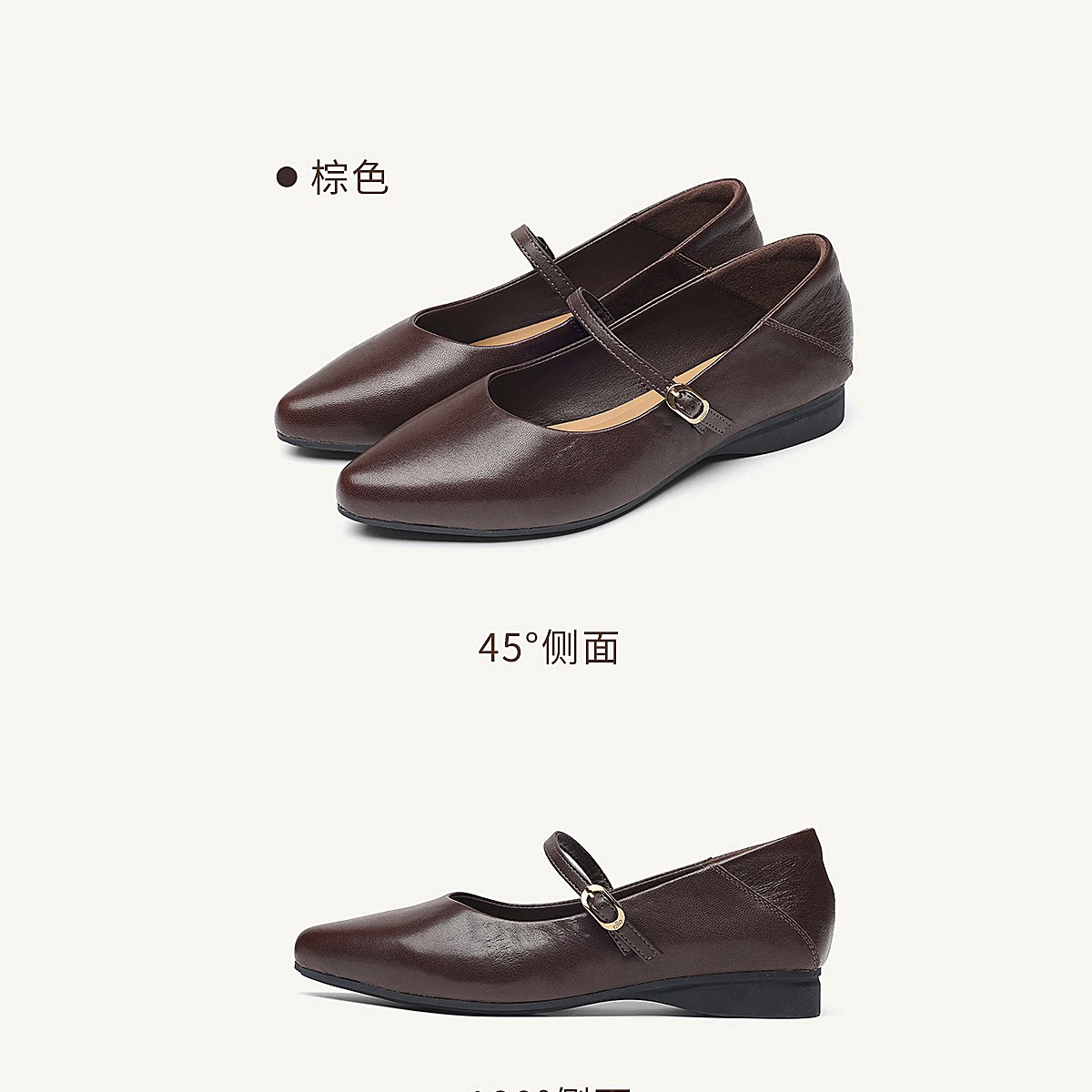 复古风一字扣带玛丽珍鞋女平底尖头单鞋软底配裙子工作鞋X6C002-16