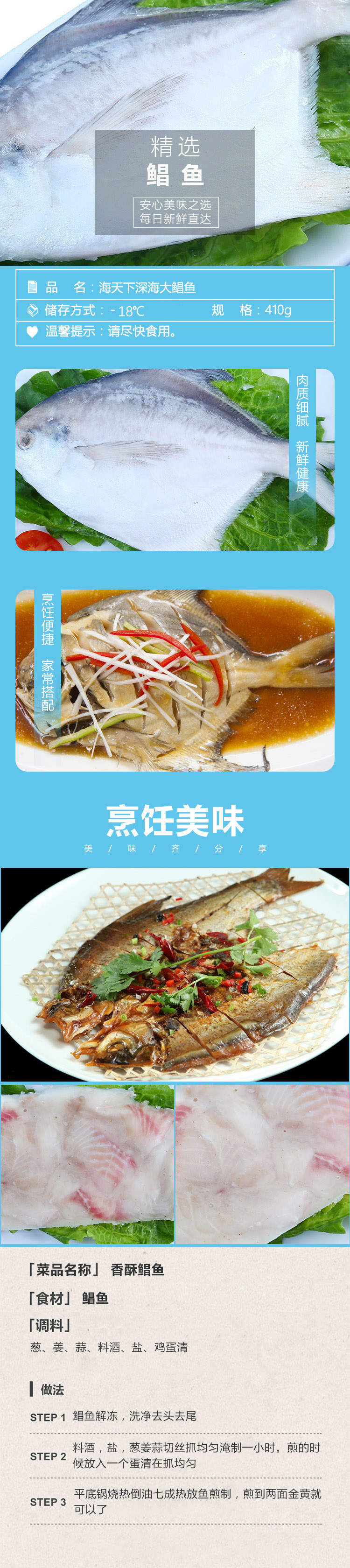海天下冷冻深海大鲳鱼 海鲜水产 海捕活冻 单条4两多 (2条装)410g*1(商)