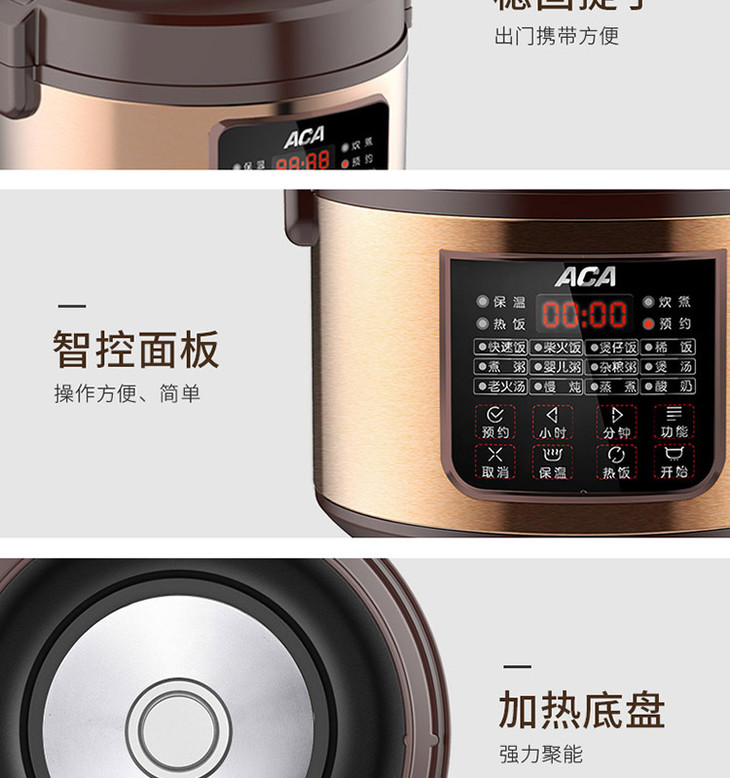 【授权商品】ACA/北美电器ALY-30FB08D微电脑电饭煲电饭锅厨房小家电家用智能蒸煮焖炖3LJPY带授权招加盟代理