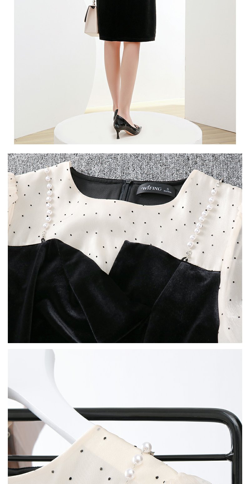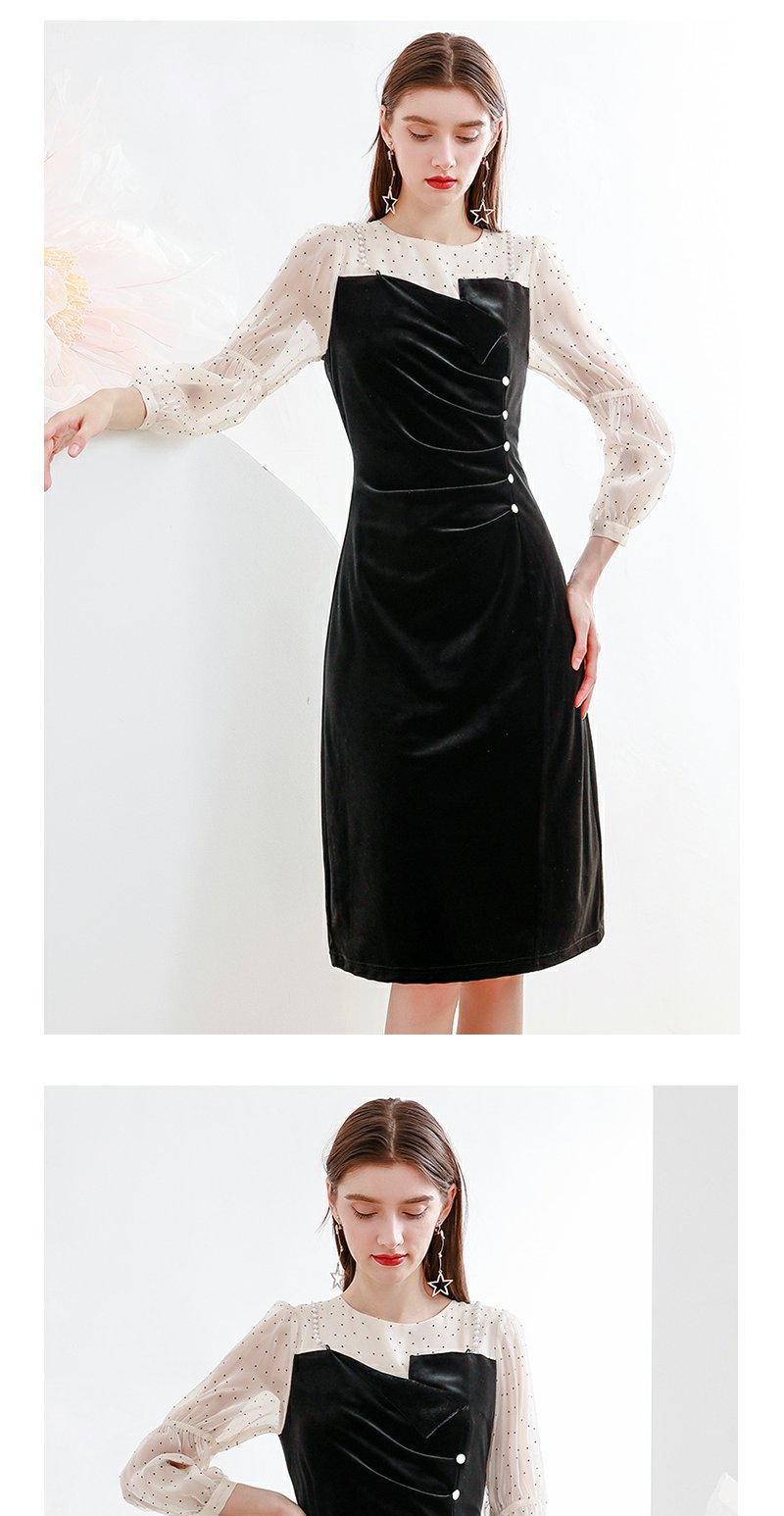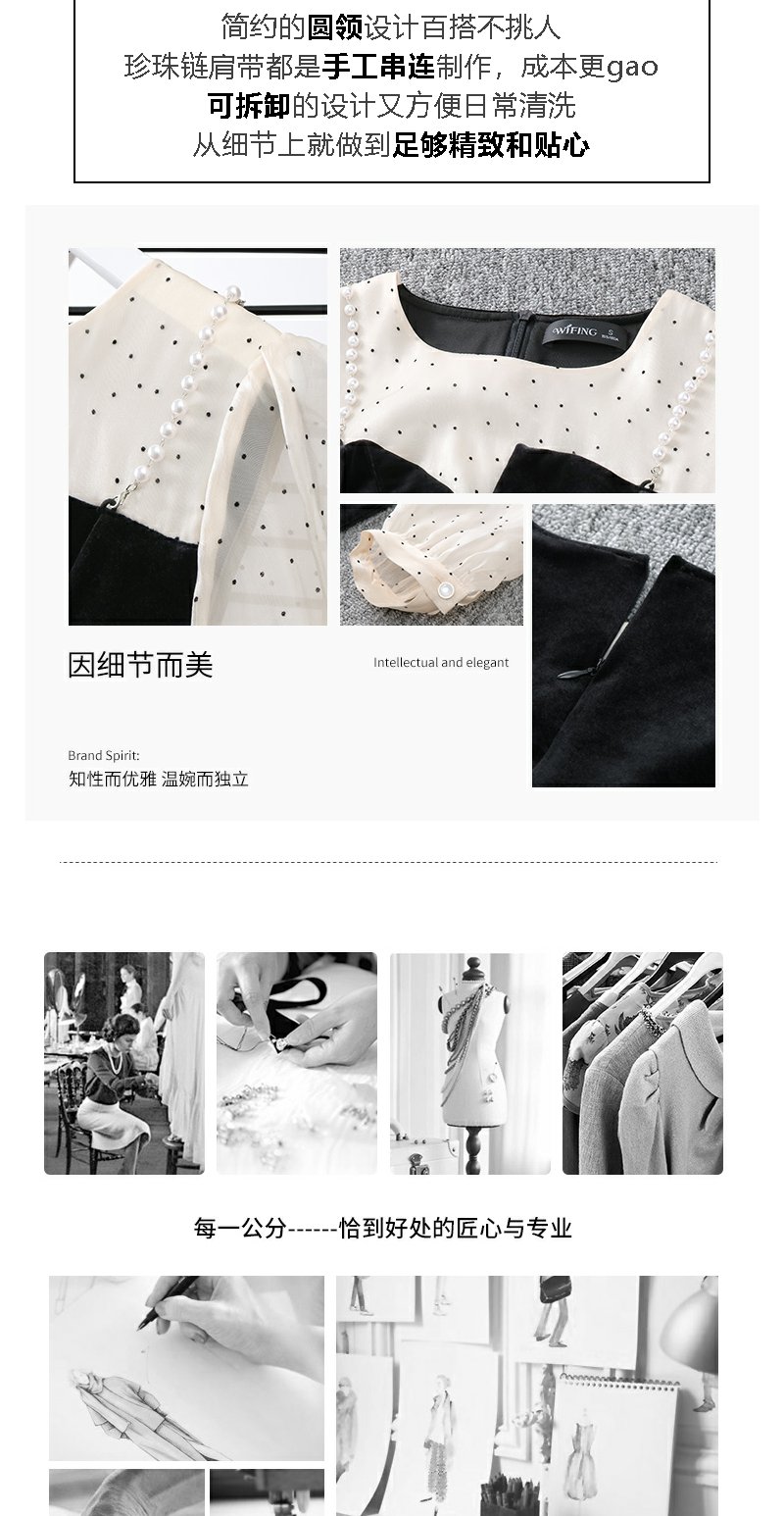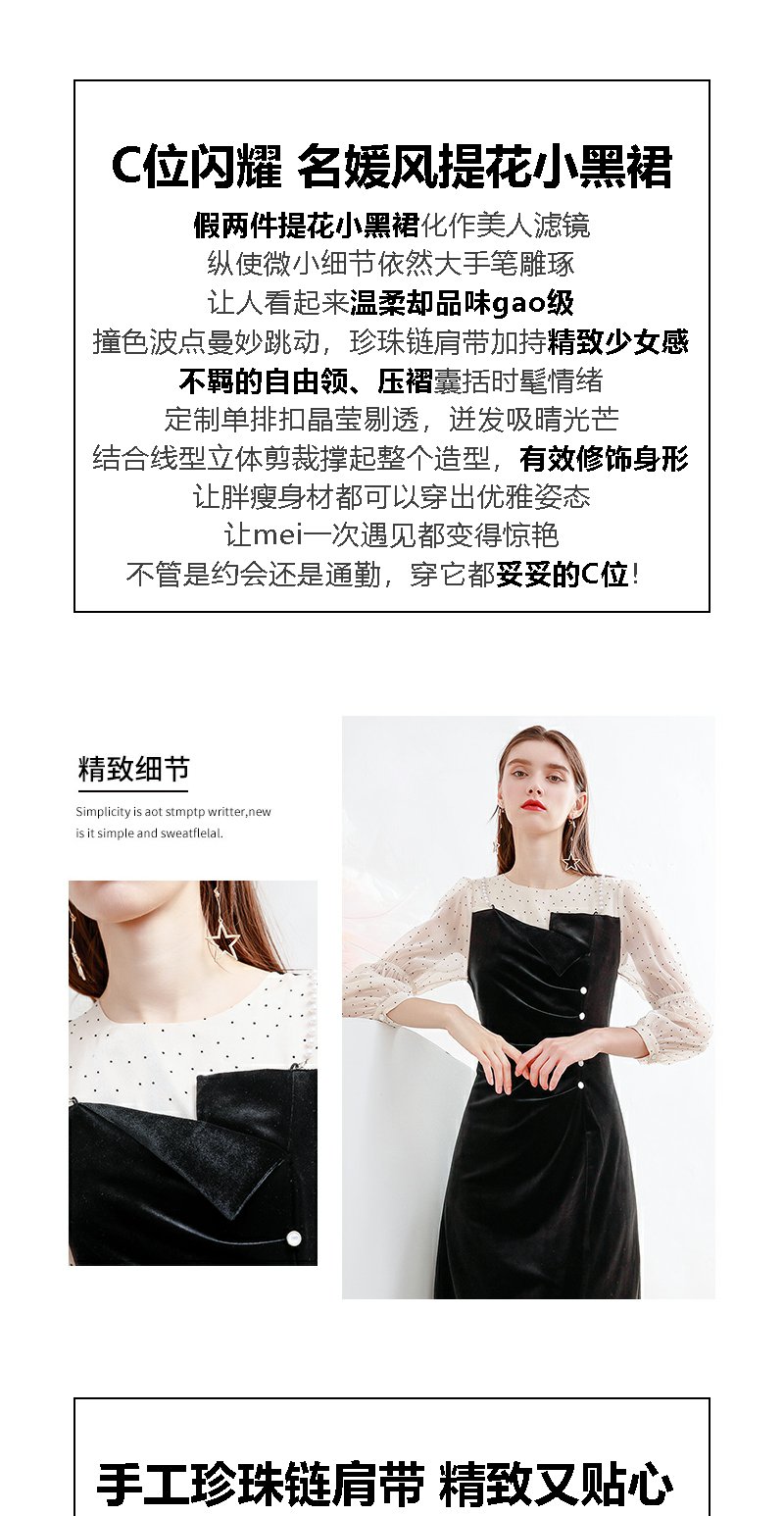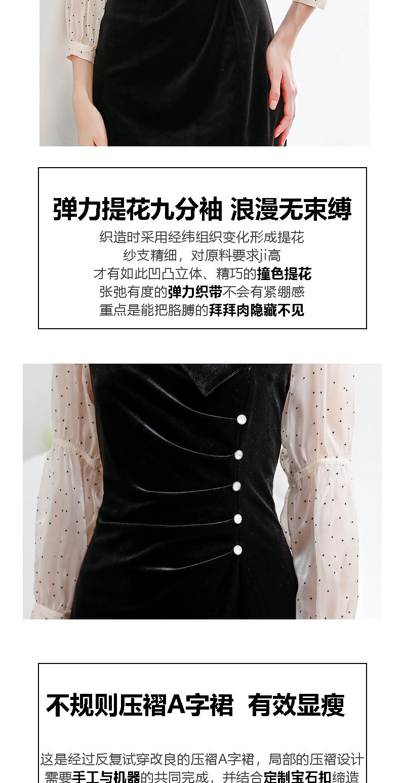未风黑色丝绒拼接连衣裙女秋冬2024年冬季新款假两件气质内搭裙子