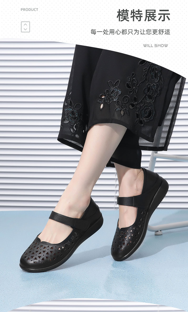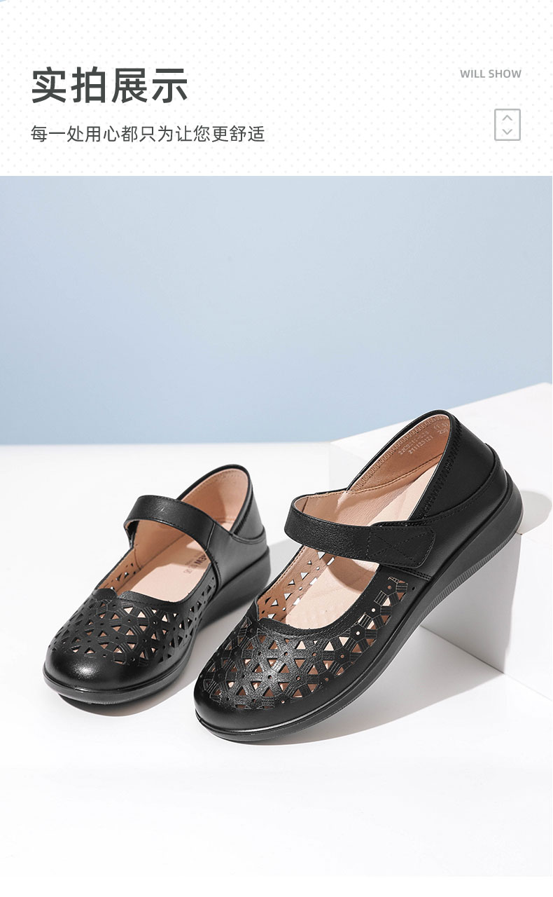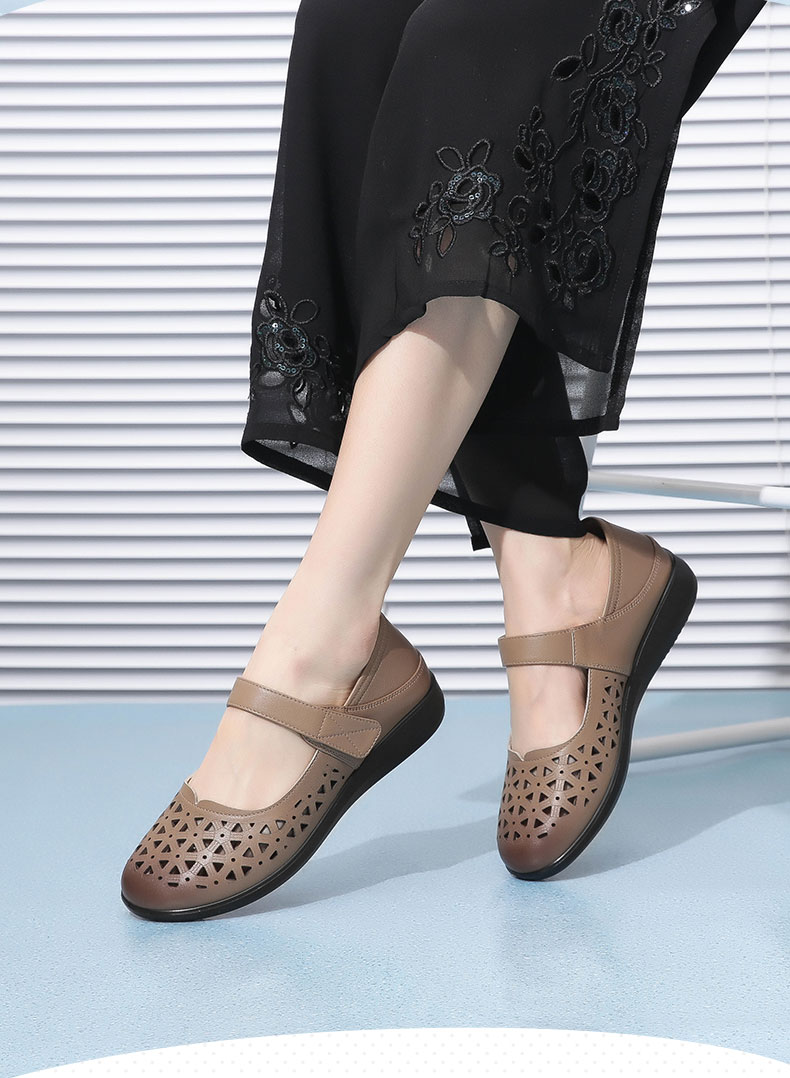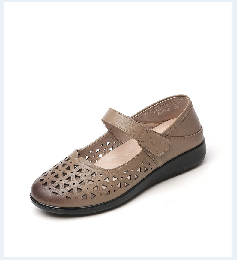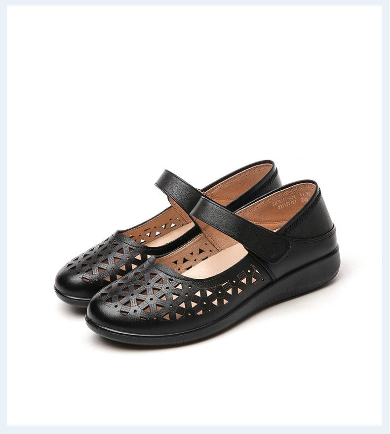 老人凉鞋真皮防滑舒适女妈妈夏季平底镂空中老年软底老太太皮鞋子22C9811-026