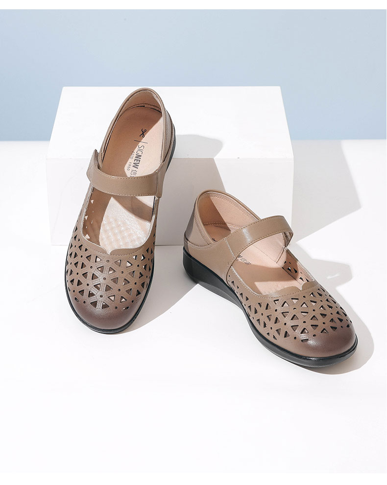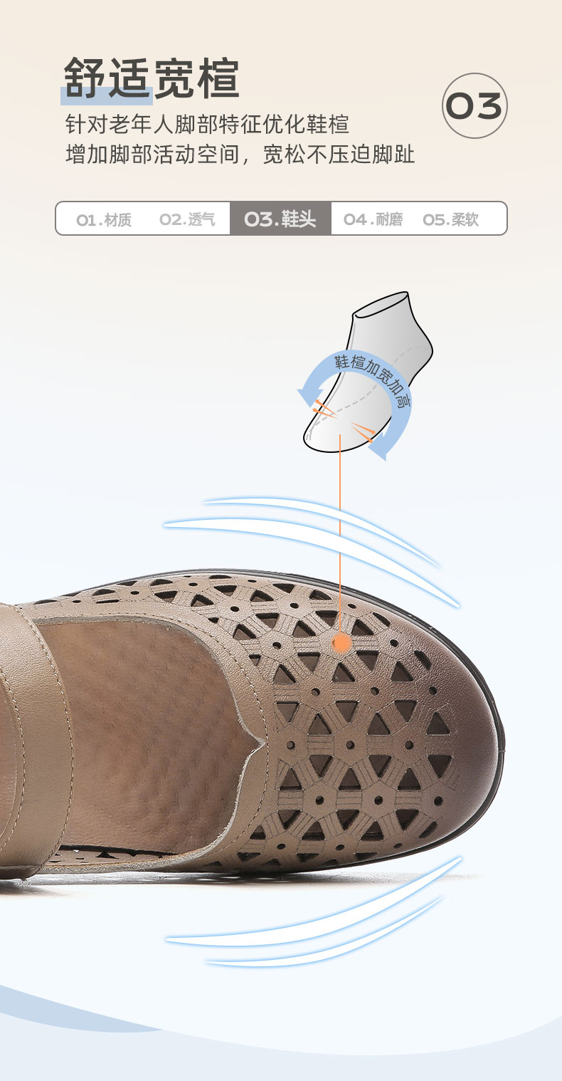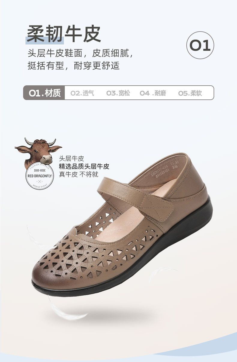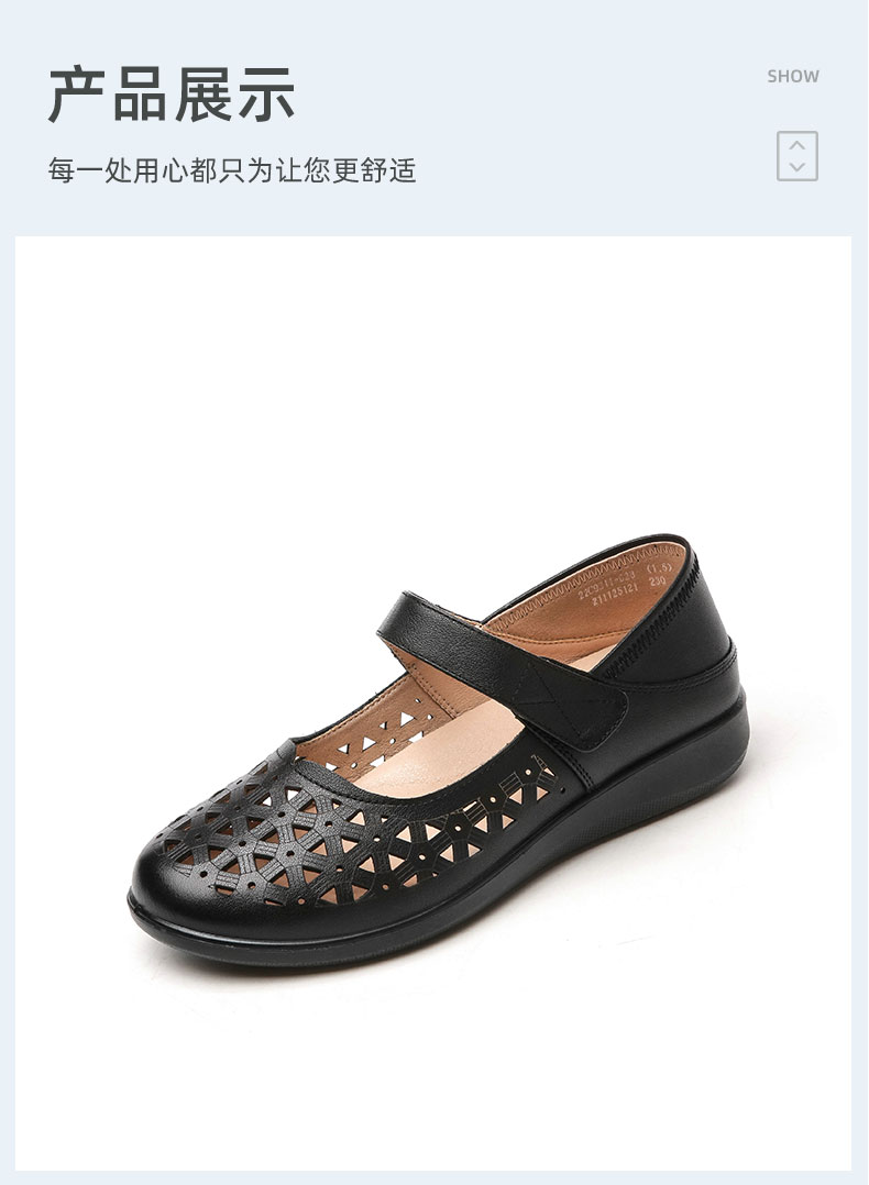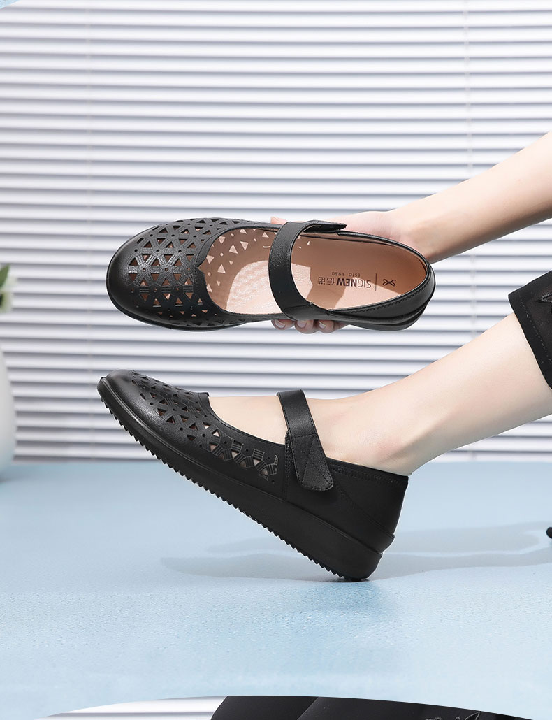 老人凉鞋真皮防滑舒适女妈妈夏季平底镂空中老年软底老太太皮鞋子22C9811-026