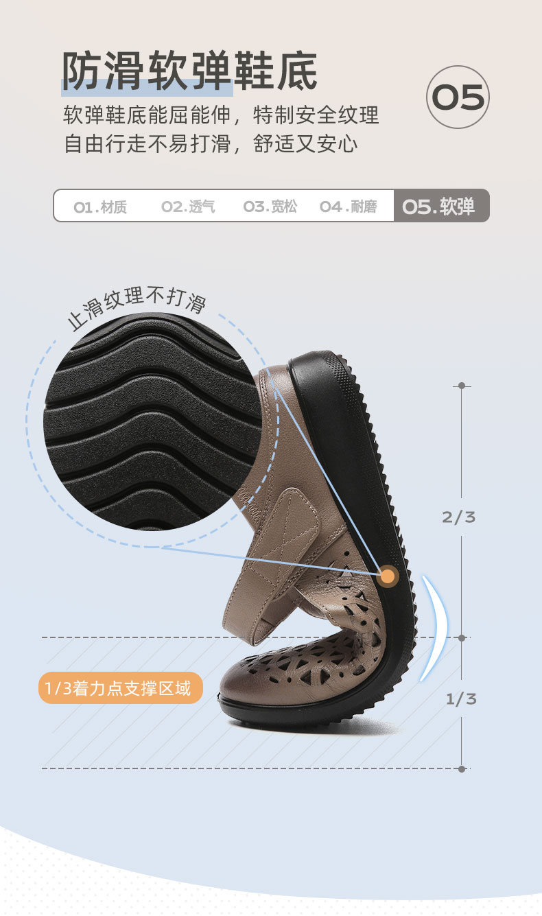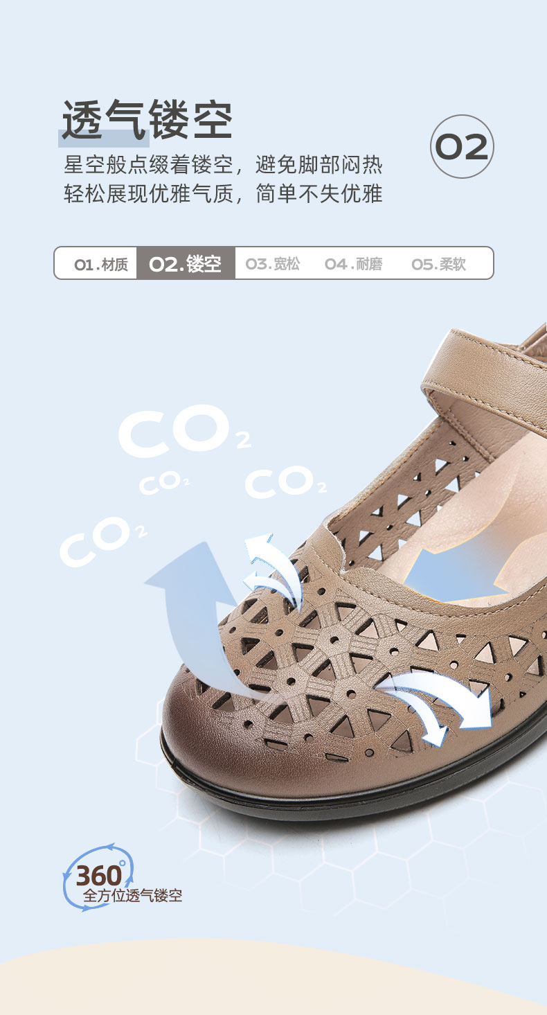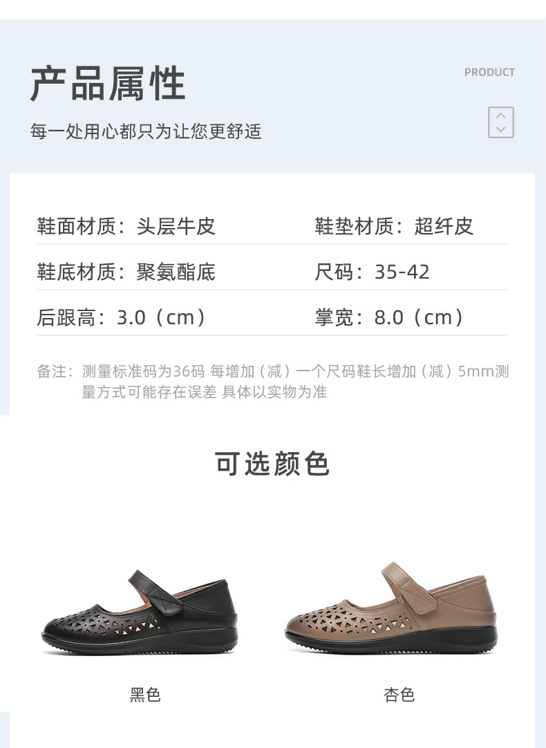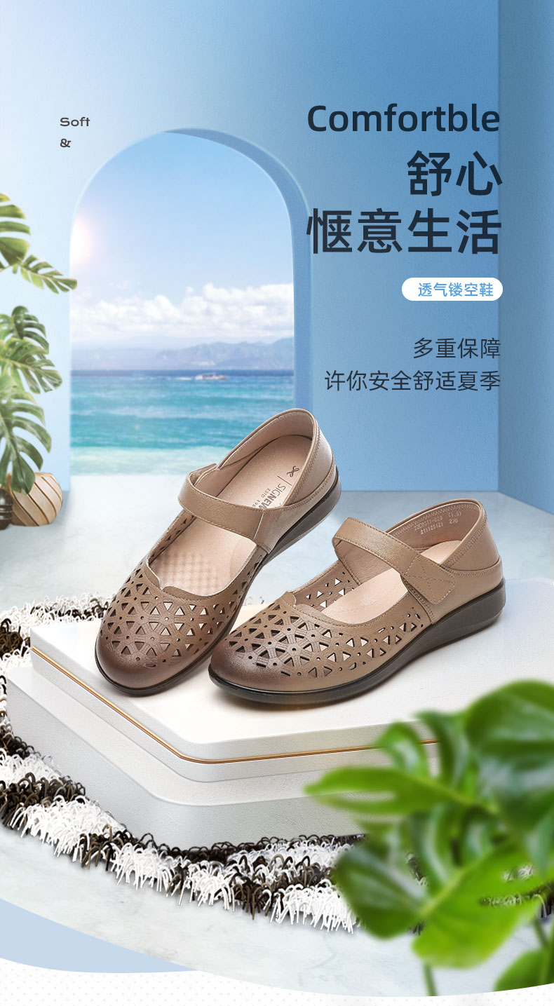 老人凉鞋真皮防滑舒适女妈妈夏季平底镂空中老年软底老太太皮鞋子22C9811-026