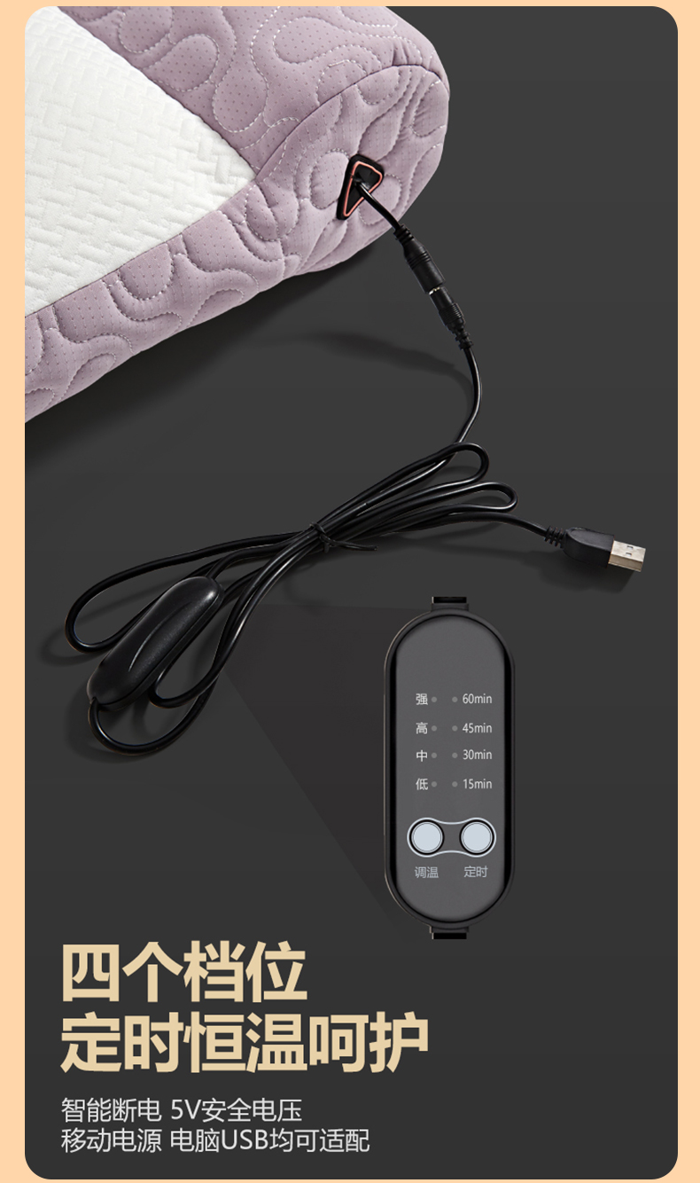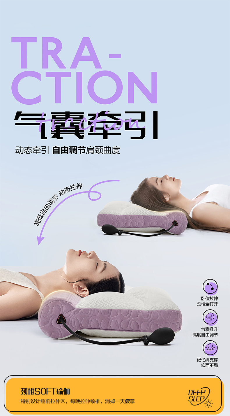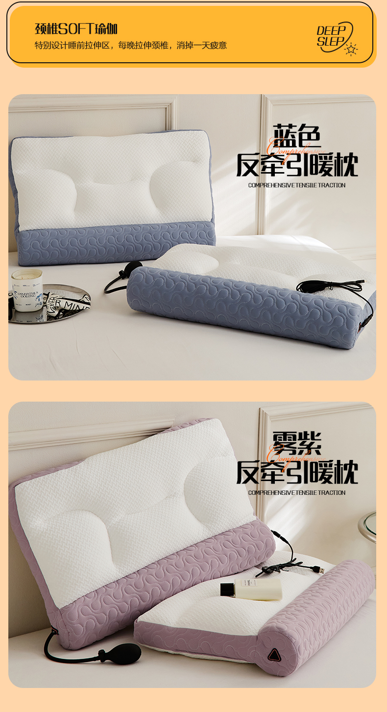 恒源祥Fazeya彩羊暖护颈枕牵引热敷款(雾紫)(数量1个,规格:60*40*11cm/9±1cm)【分仓直发,72小时发货,周末节假日不发货】