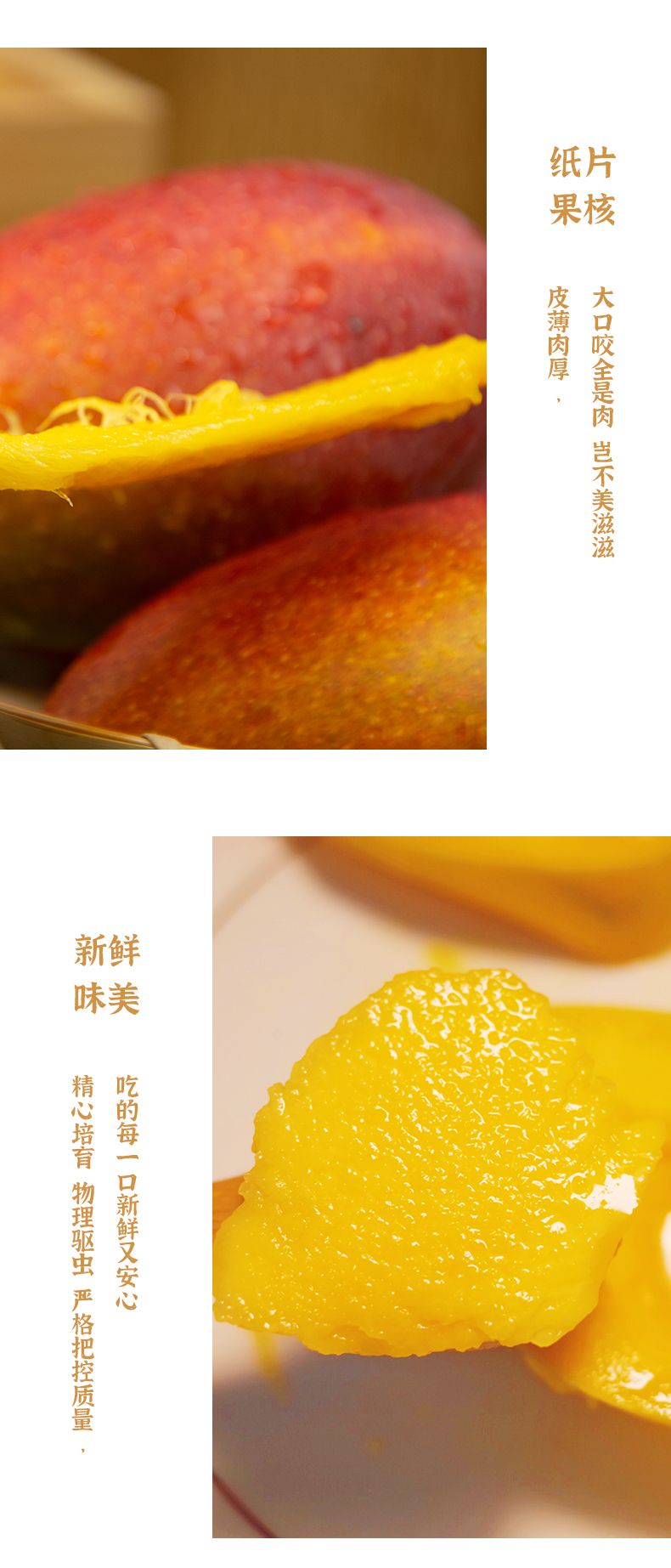 食用方式:鲜果鲜吃(芒果发货为7-8分熟的果,收到未成熟请放纸箱继续存放,熟后才可放入冰箱冷藏哦)