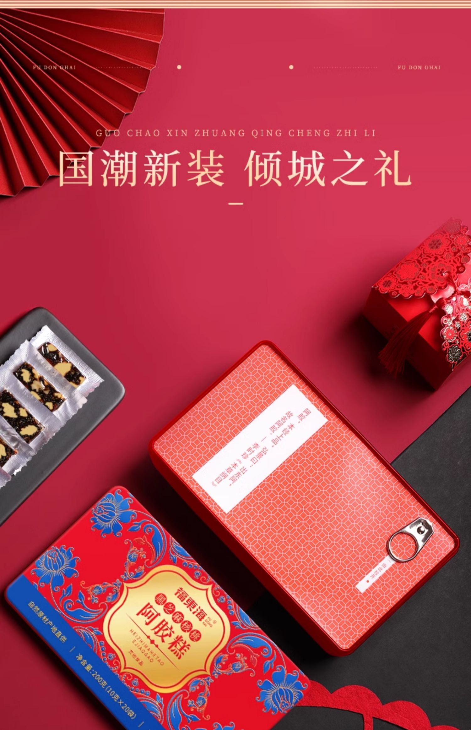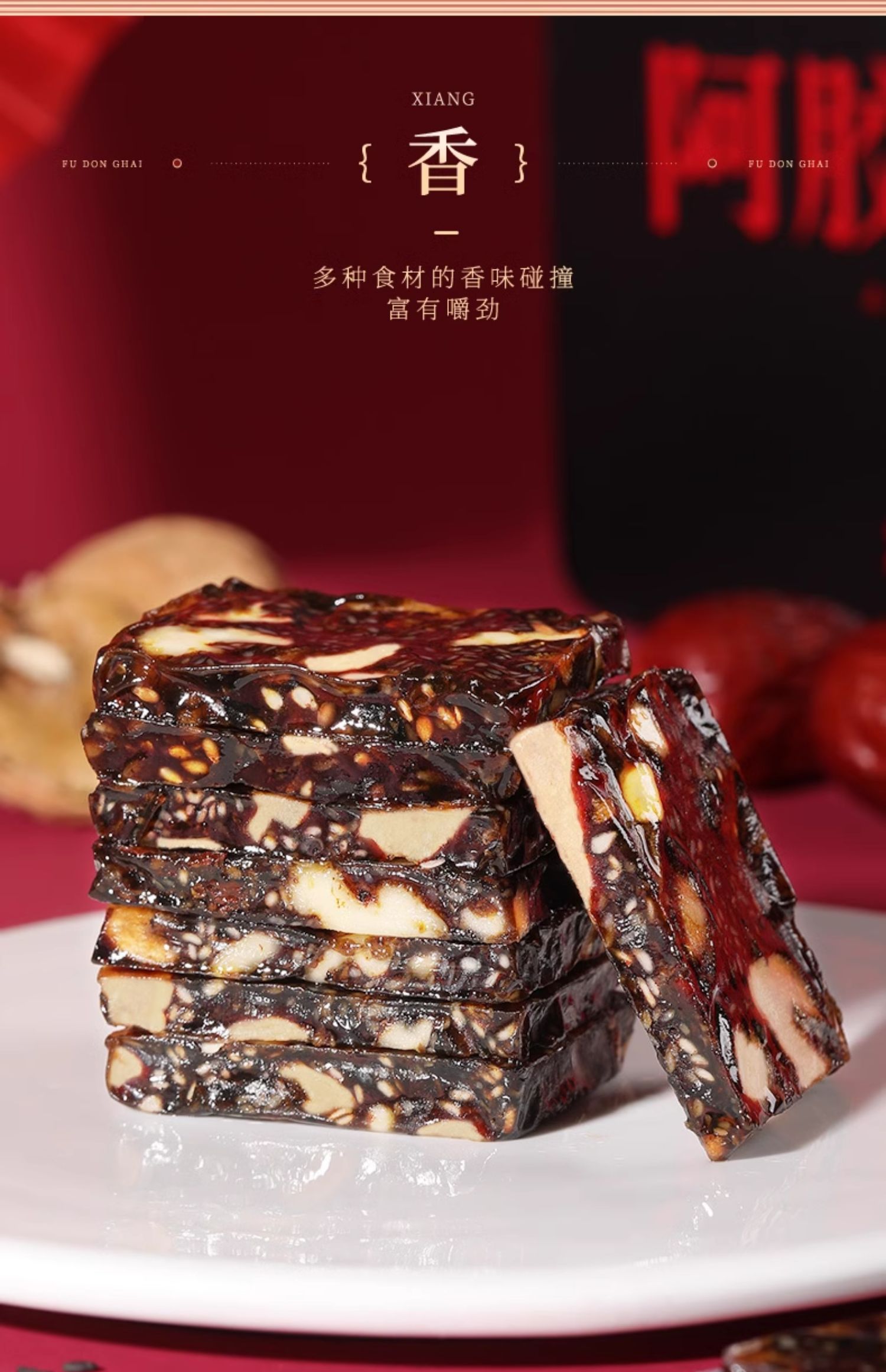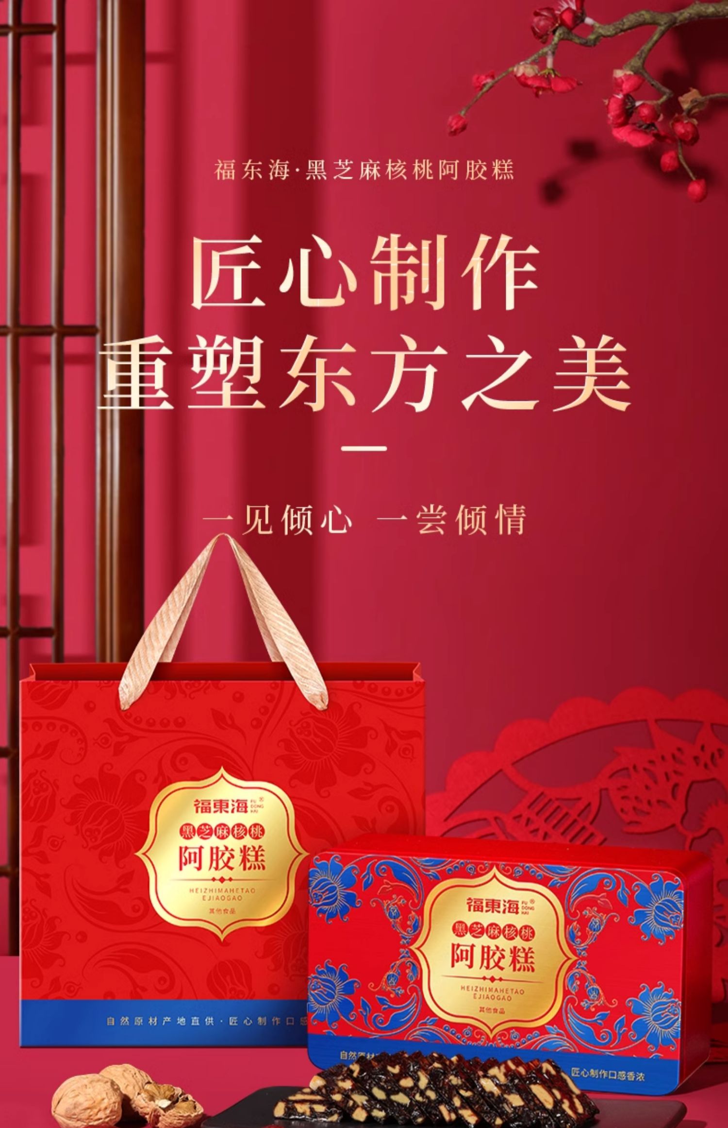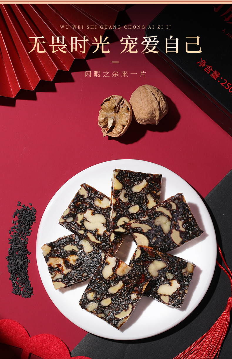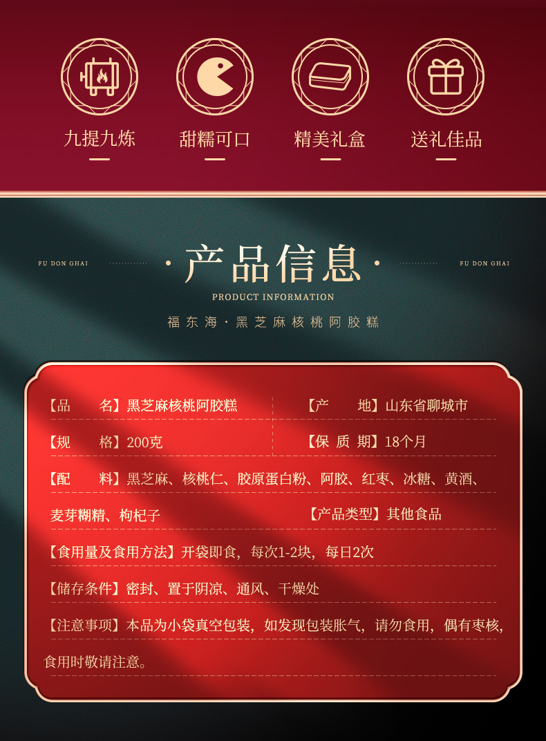 福东海 黑芝麻核桃阿胶糕200克 即食零食阿胶固元糕补品送长辈 开袋即食