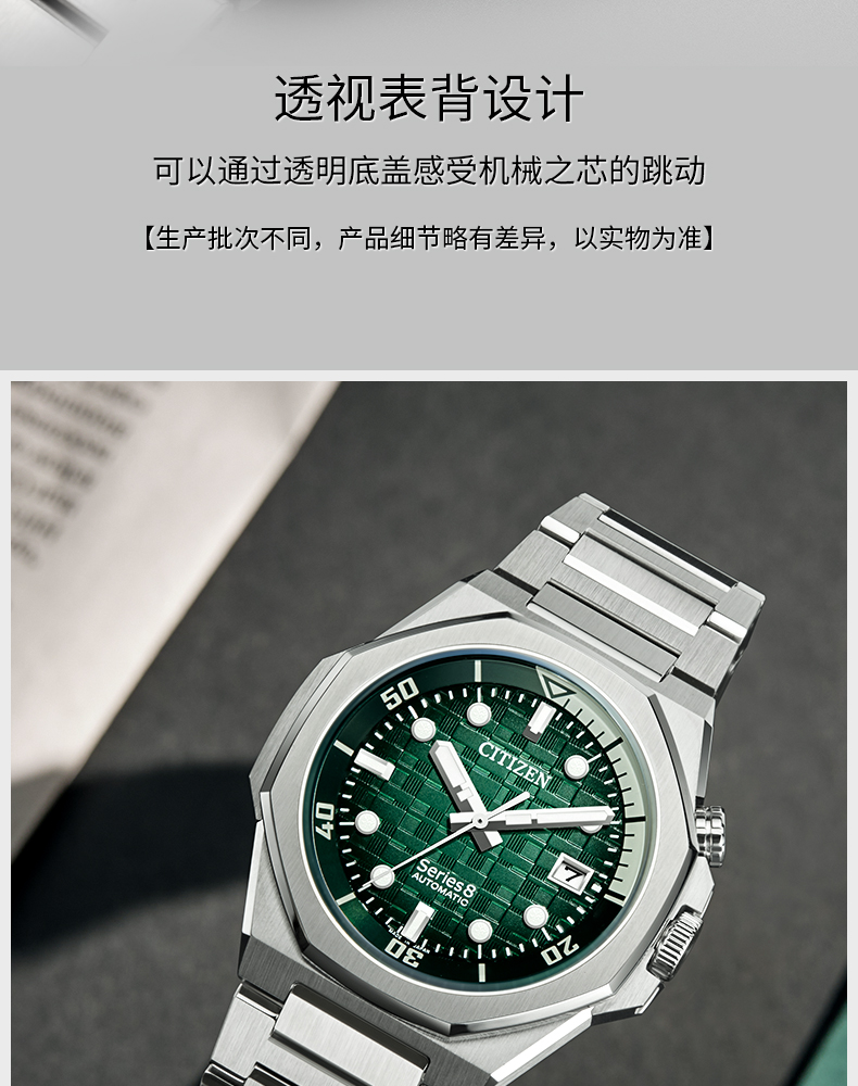 西铁城/CITIZEN机械防磁Series 8系列不锈钢男表NB6060-58X
