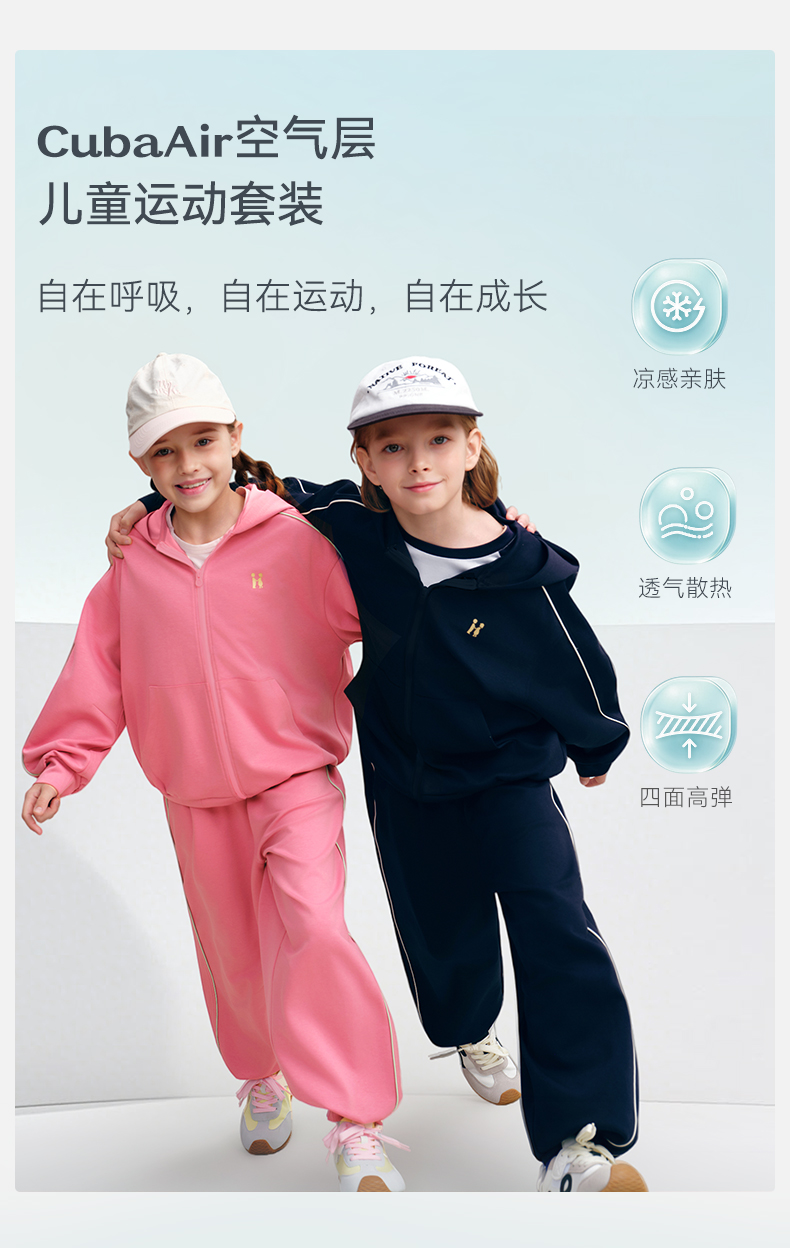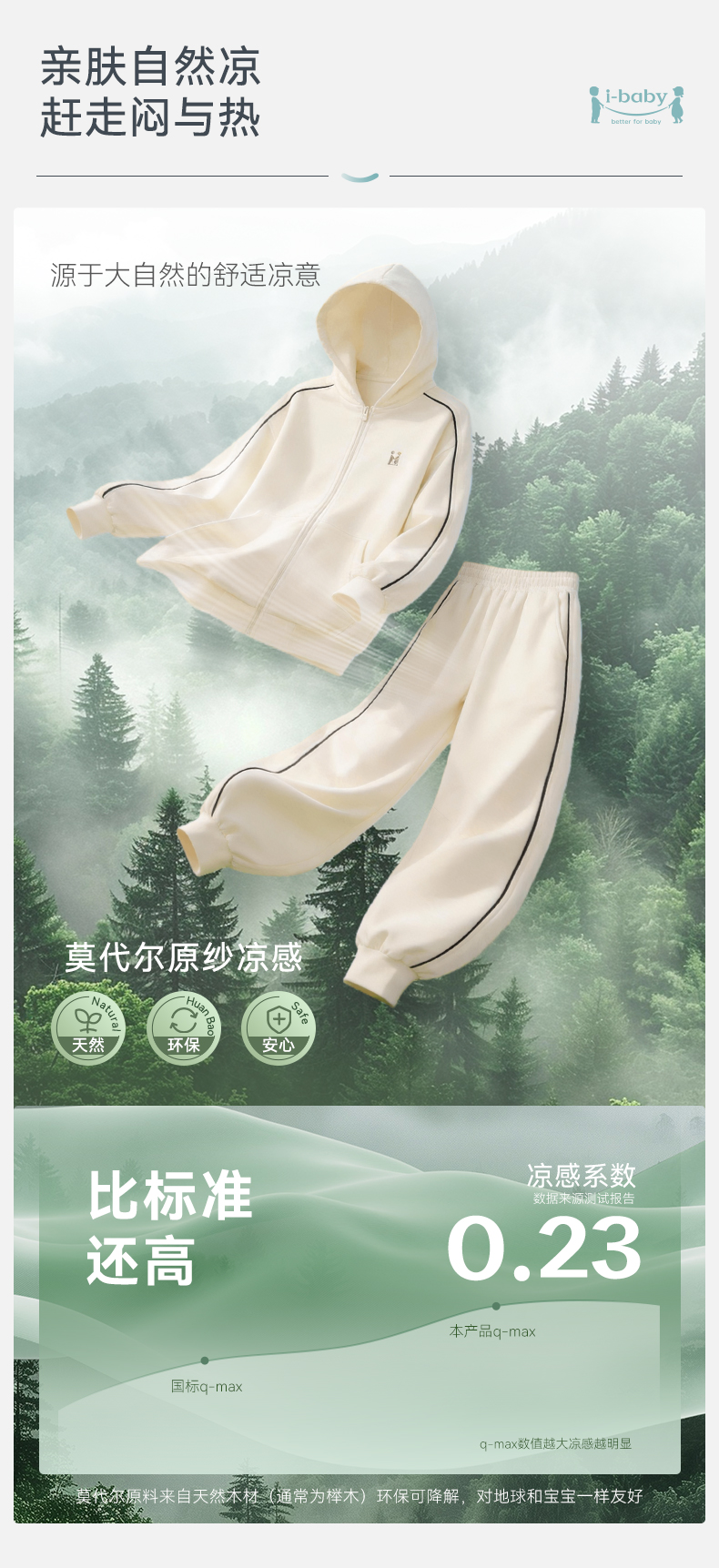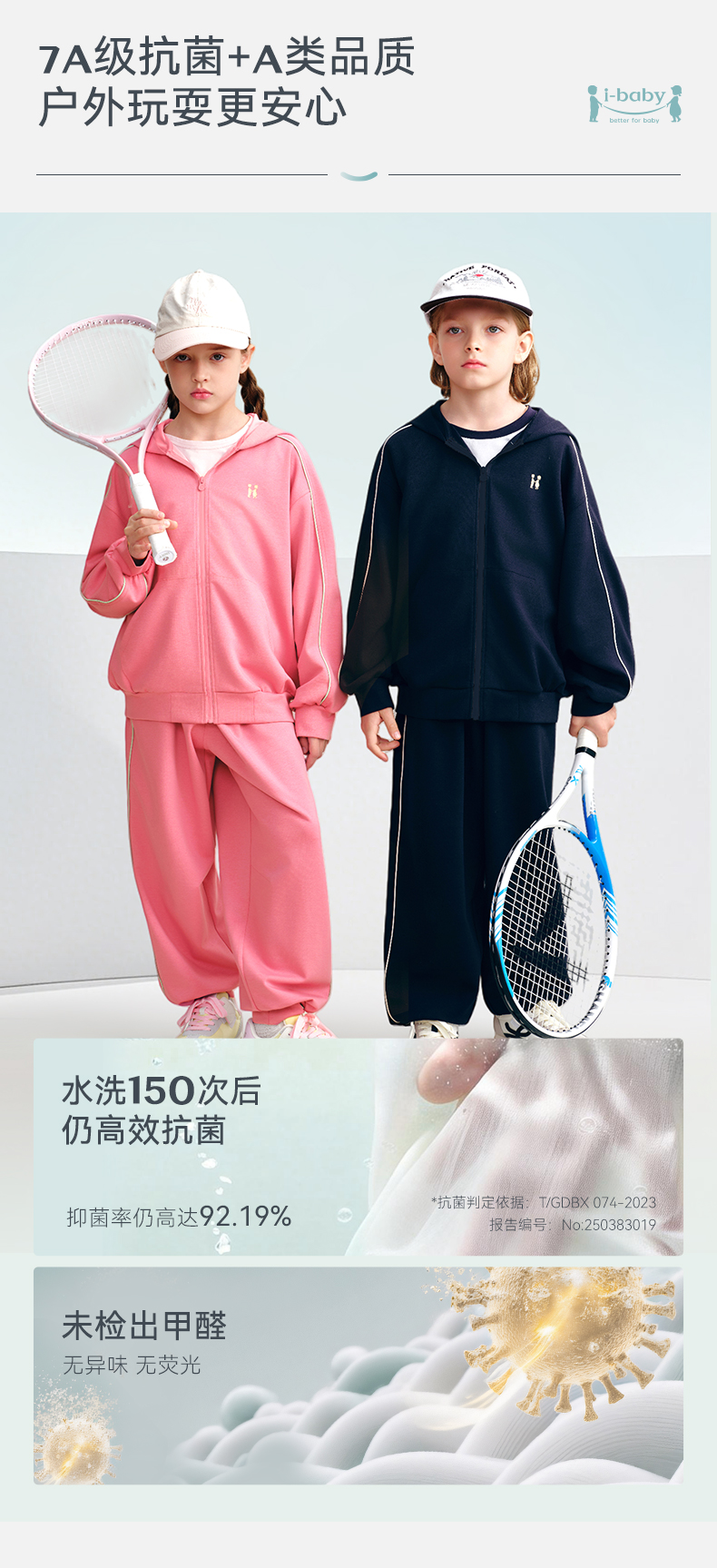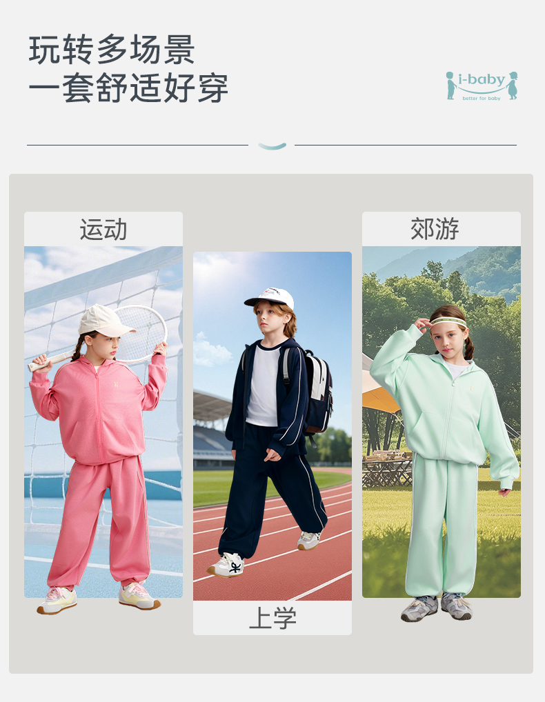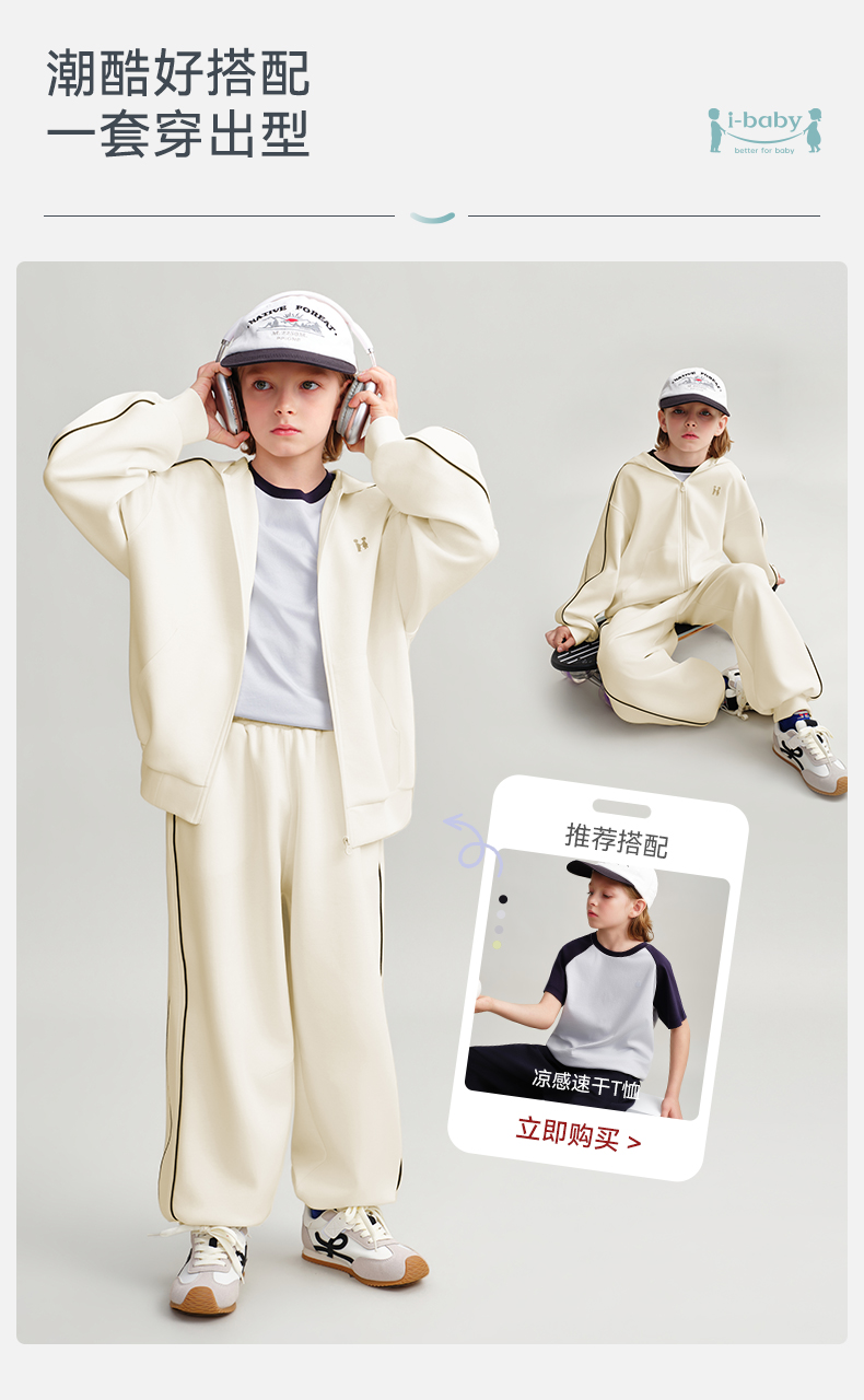 【2026春夏新品】ibaby×outlast太空科技恒温CubaAir凉感空气层连帽开襟/圆领拼色运动套装 版型宽松建议拍小1码