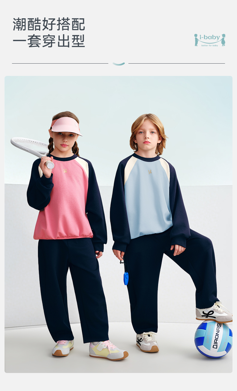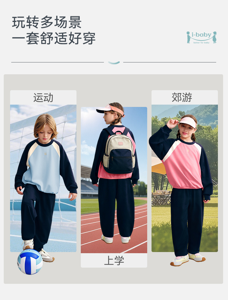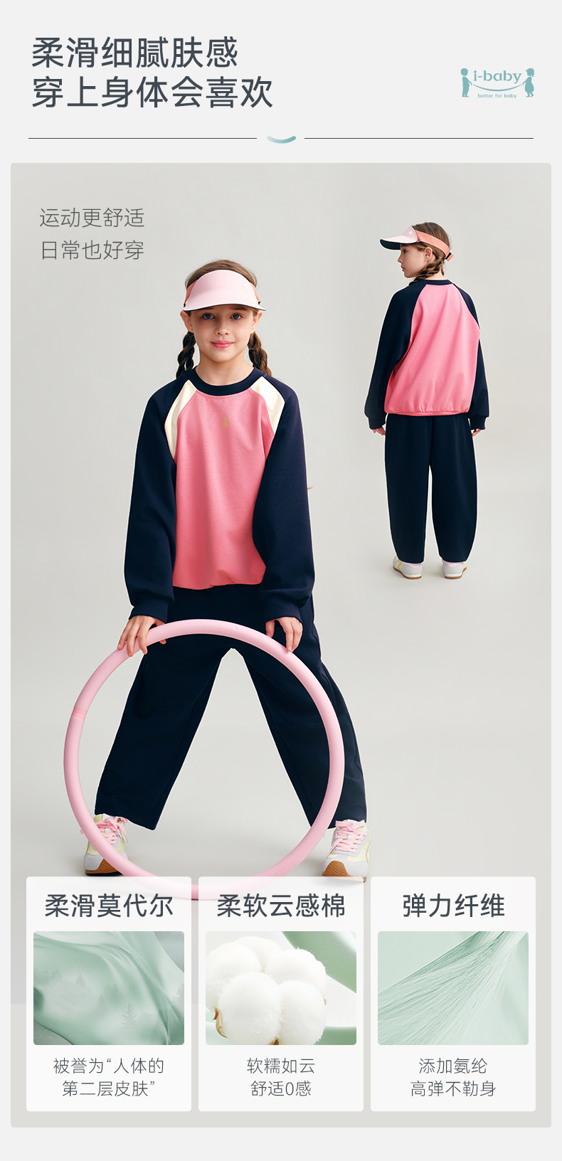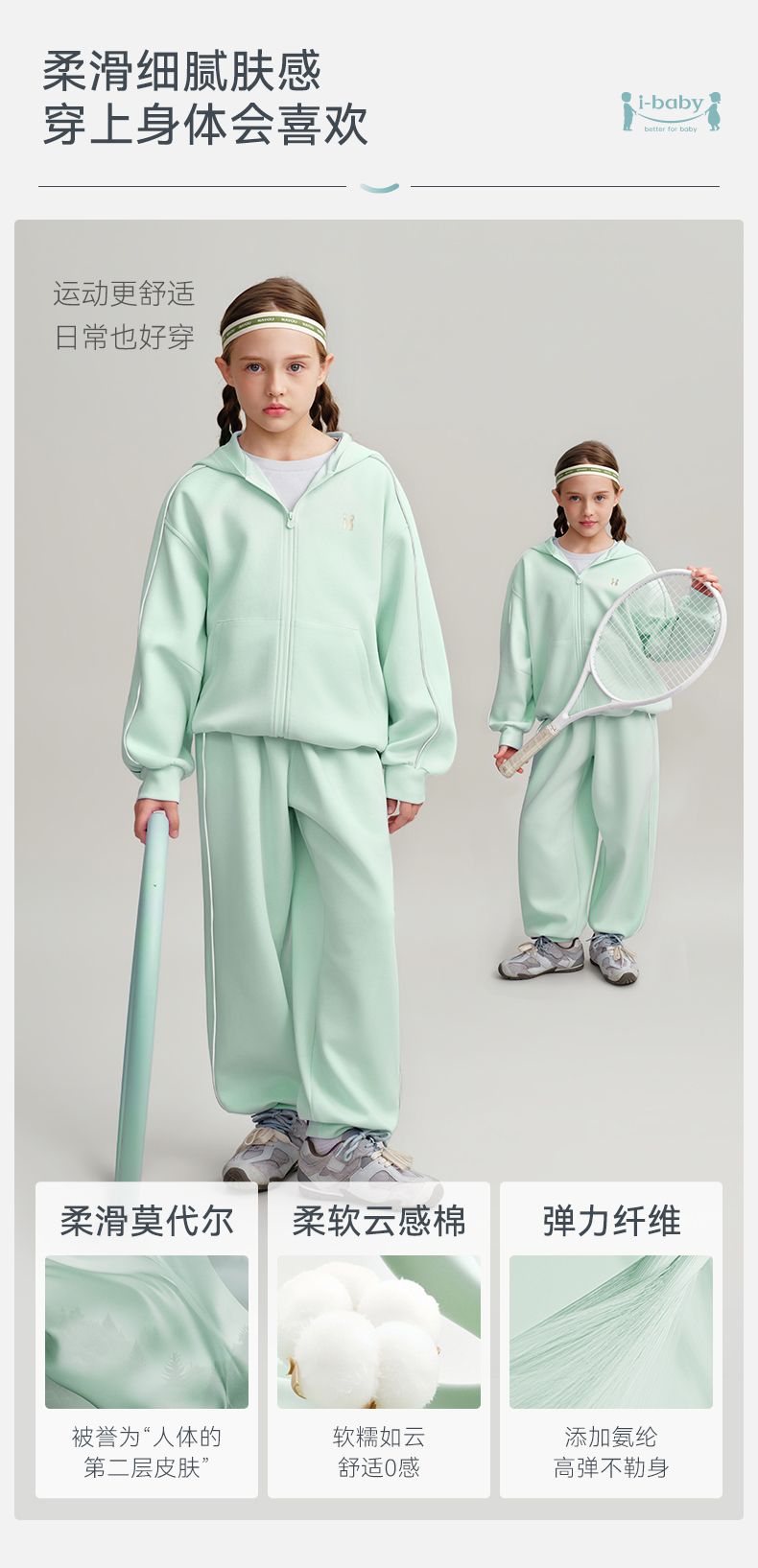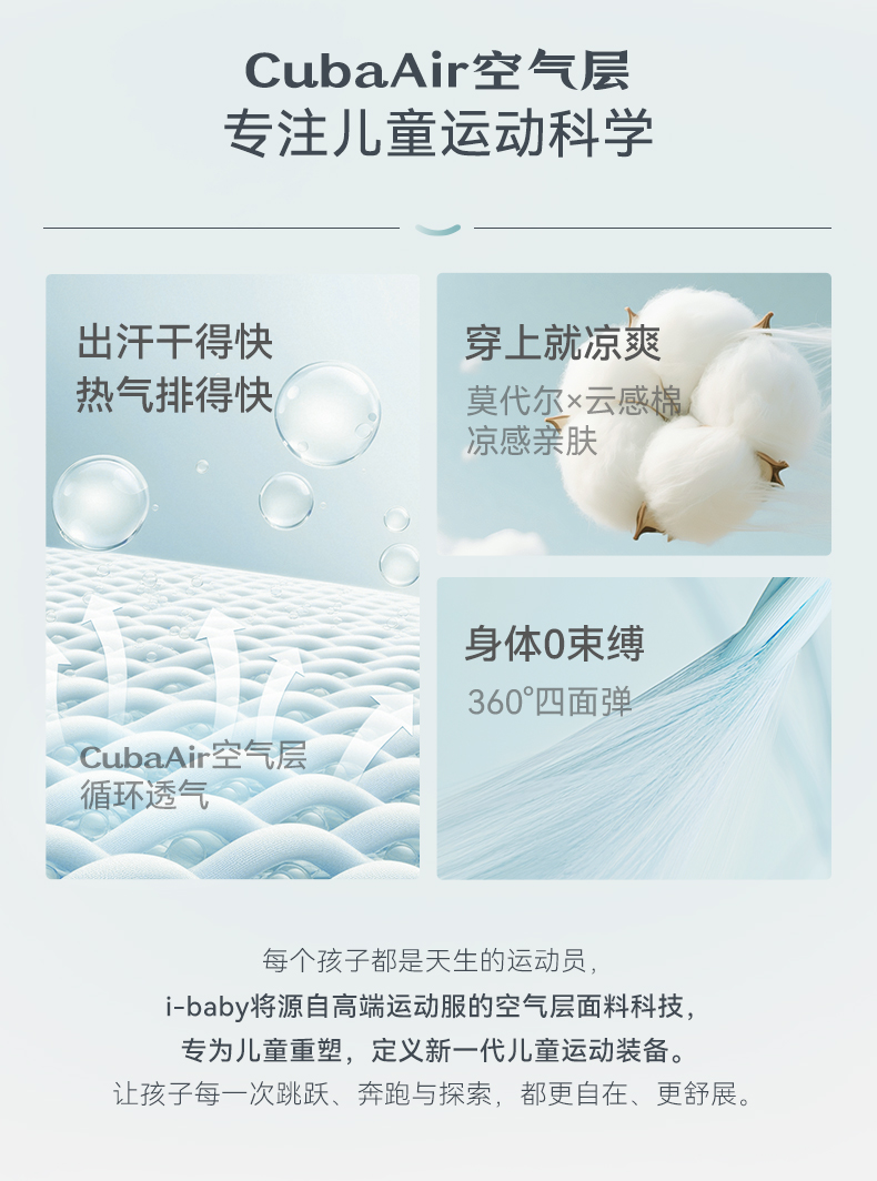 【2026春夏新品】ibaby×outlast太空科技恒温CubaAir凉感空气层连帽开襟/圆领拼色运动套装 版型宽松建议拍小1码
