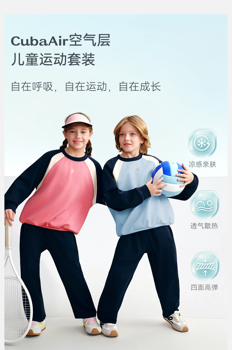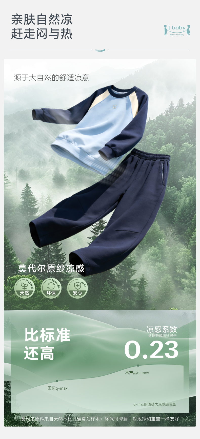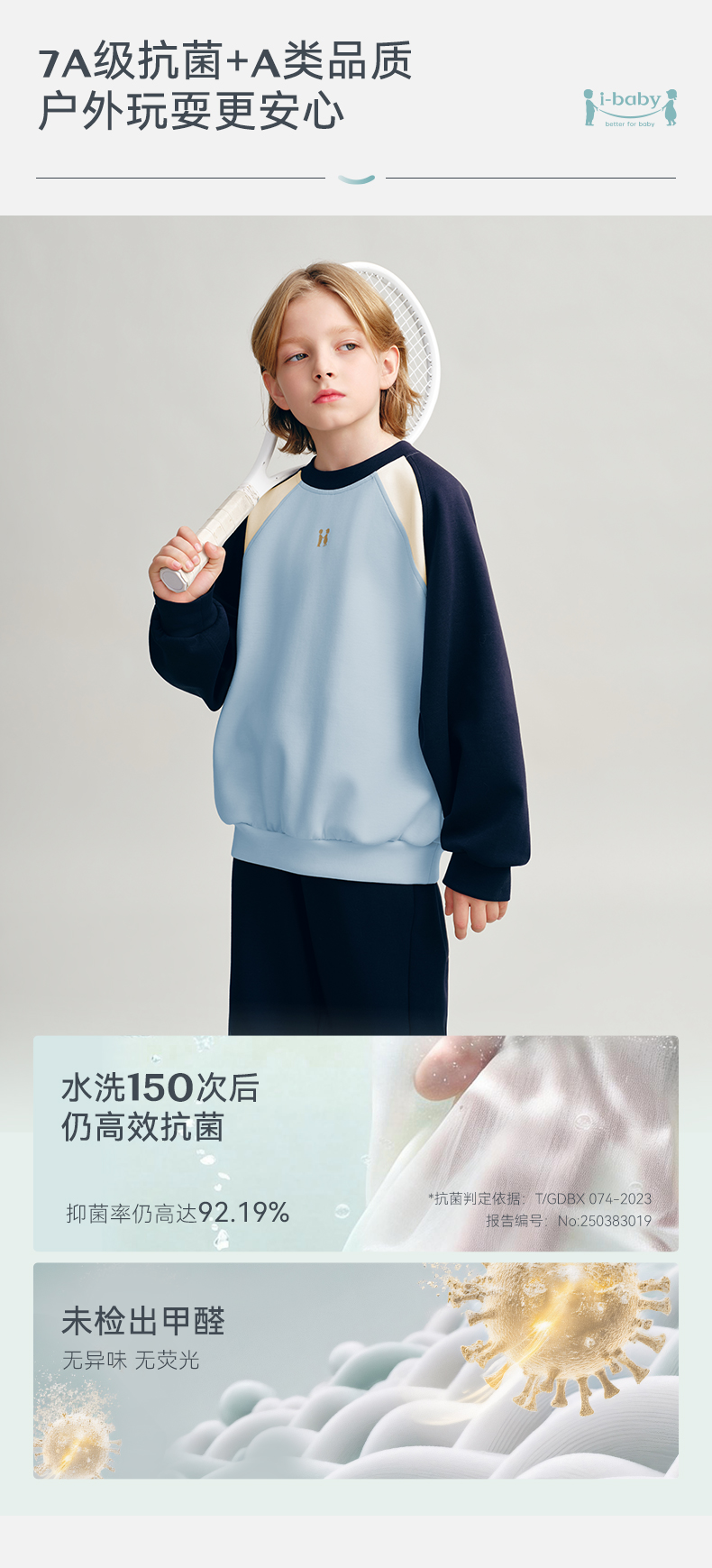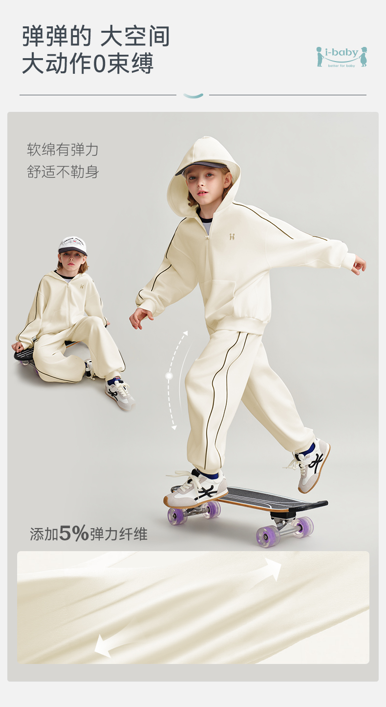 【2026春夏新品】ibaby×outlast太空科技恒温CubaAir凉感空气层连帽开襟/圆领拼色运动套装 版型宽松建议拍小1码