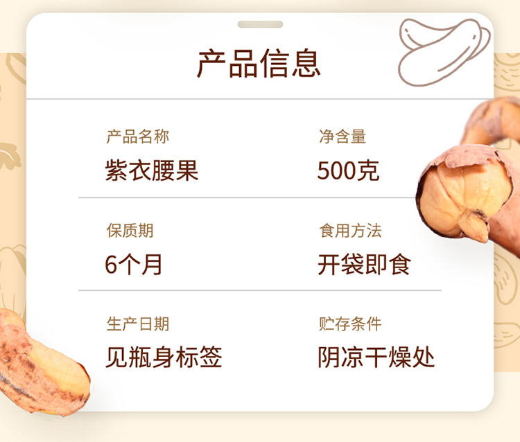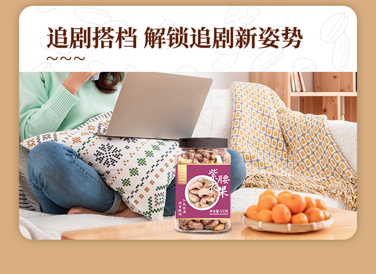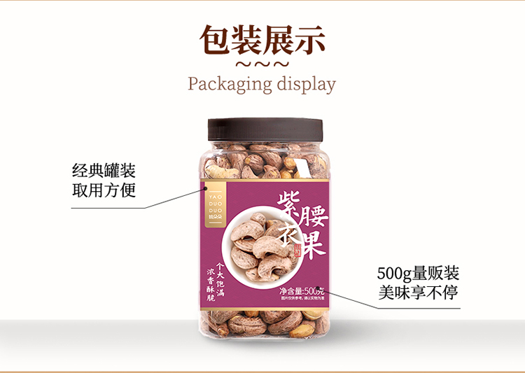 【姚朵朵】大颗粒A180薄盐味紫衣腰果500g*2罐 越南进口坚果炒货