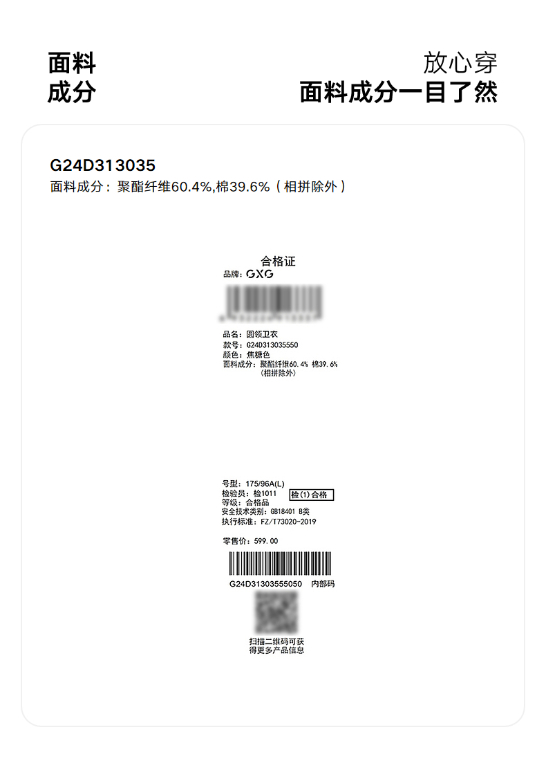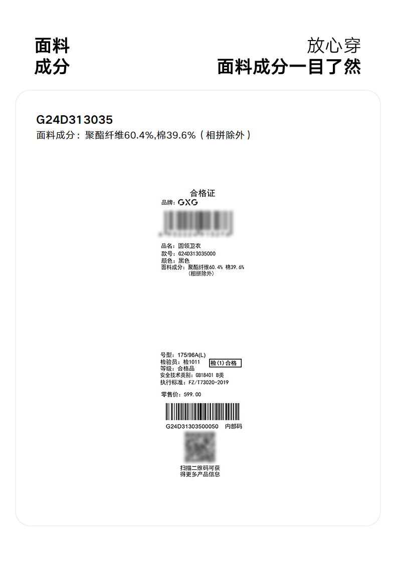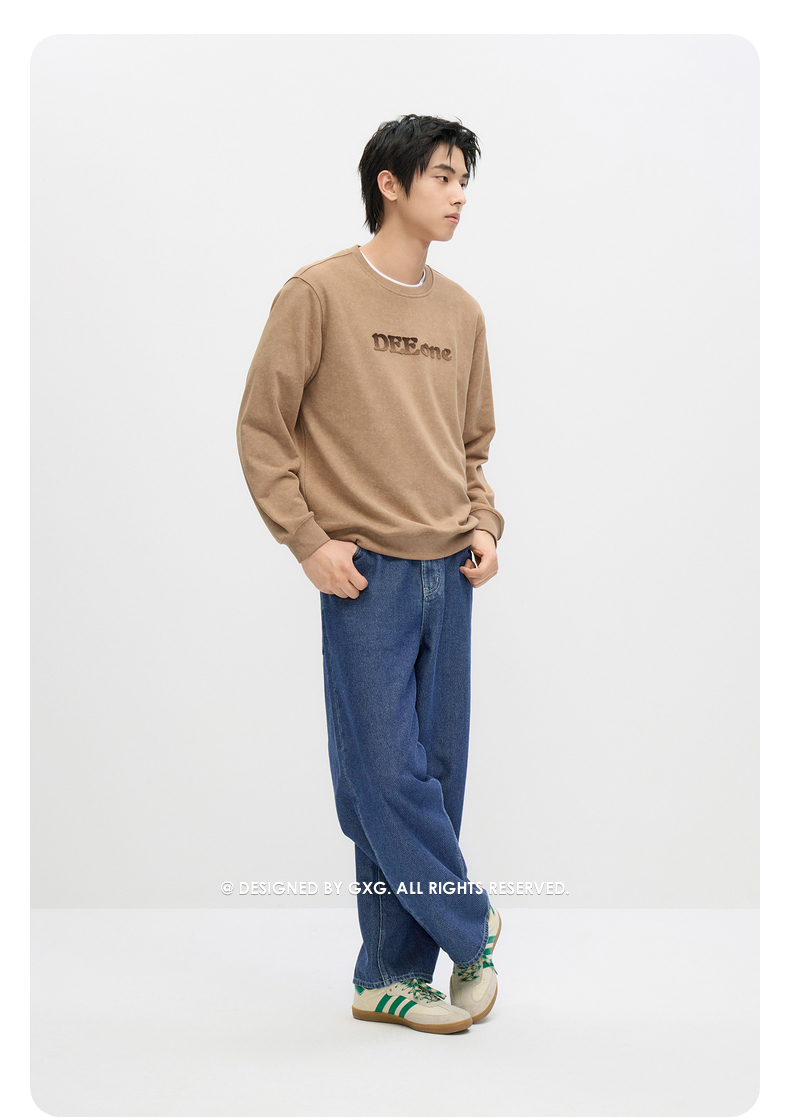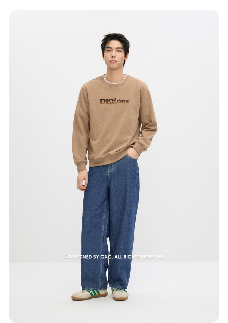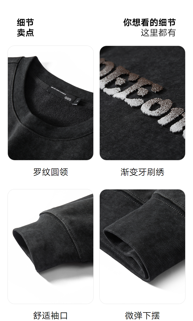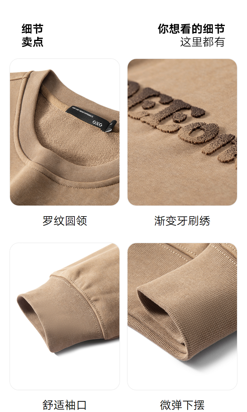 GXG男装 秋季热卖GXG字母渐变牙刷绣宽松舒适圆领卫衣男