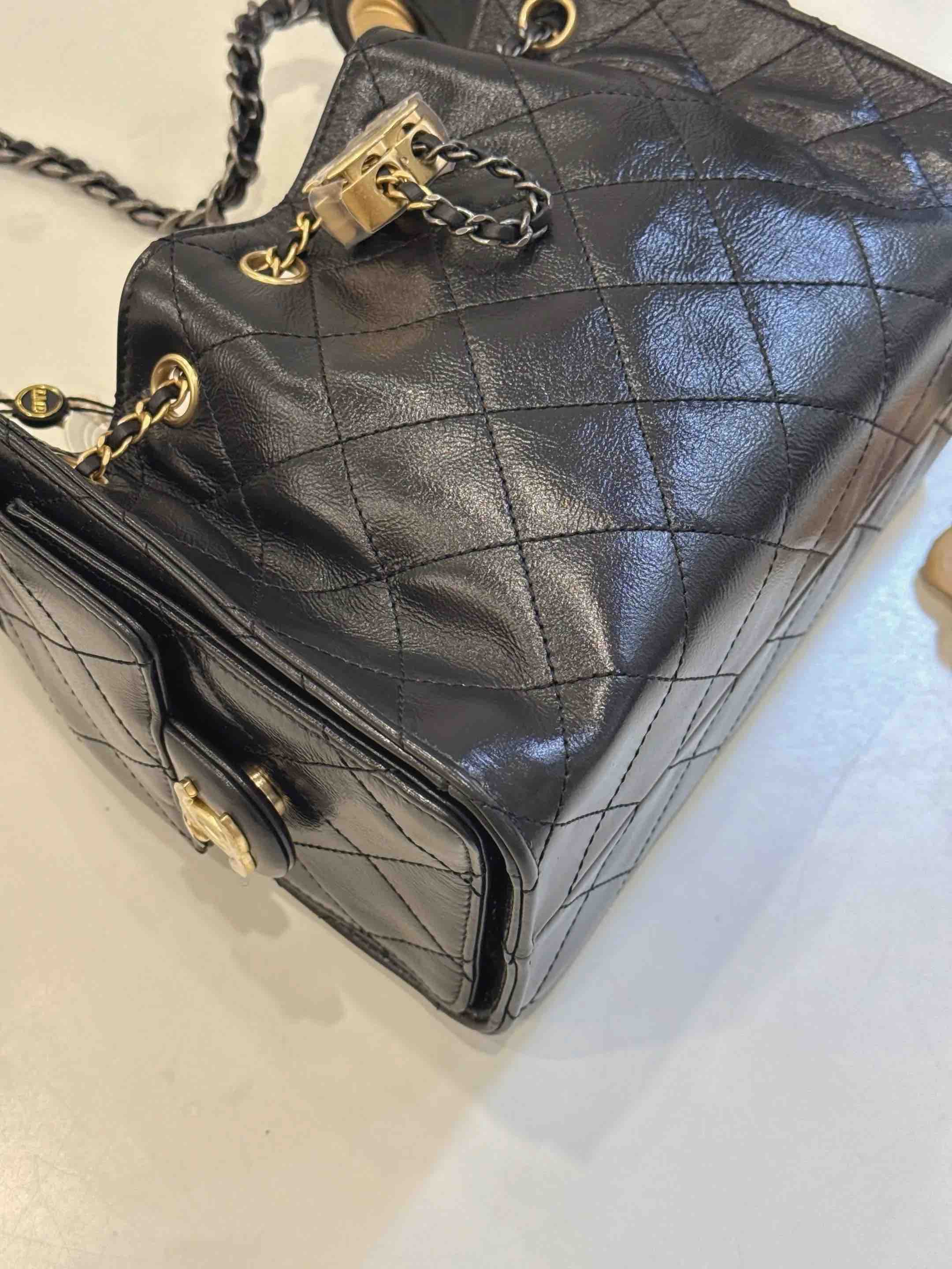 【商品详情】正品二手 Chanel 黑金 油蜡牛 mini 25bag 🤩98新 20*22 配件:票 防尘袋。休闲随性。
