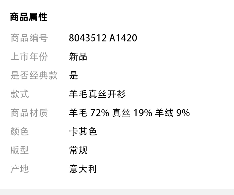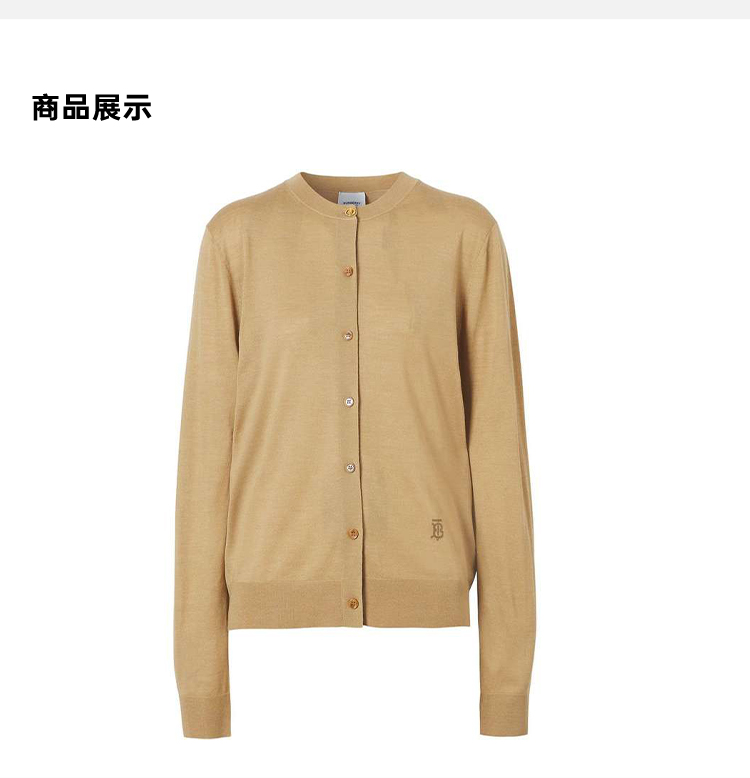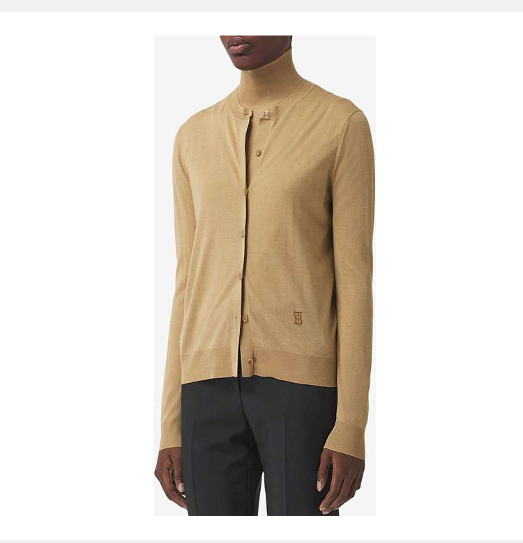 BURBERRY 博柏利 专属标识丝毛羊绒混纺开衫 女针织开衫 卡其色 8043512 A1420