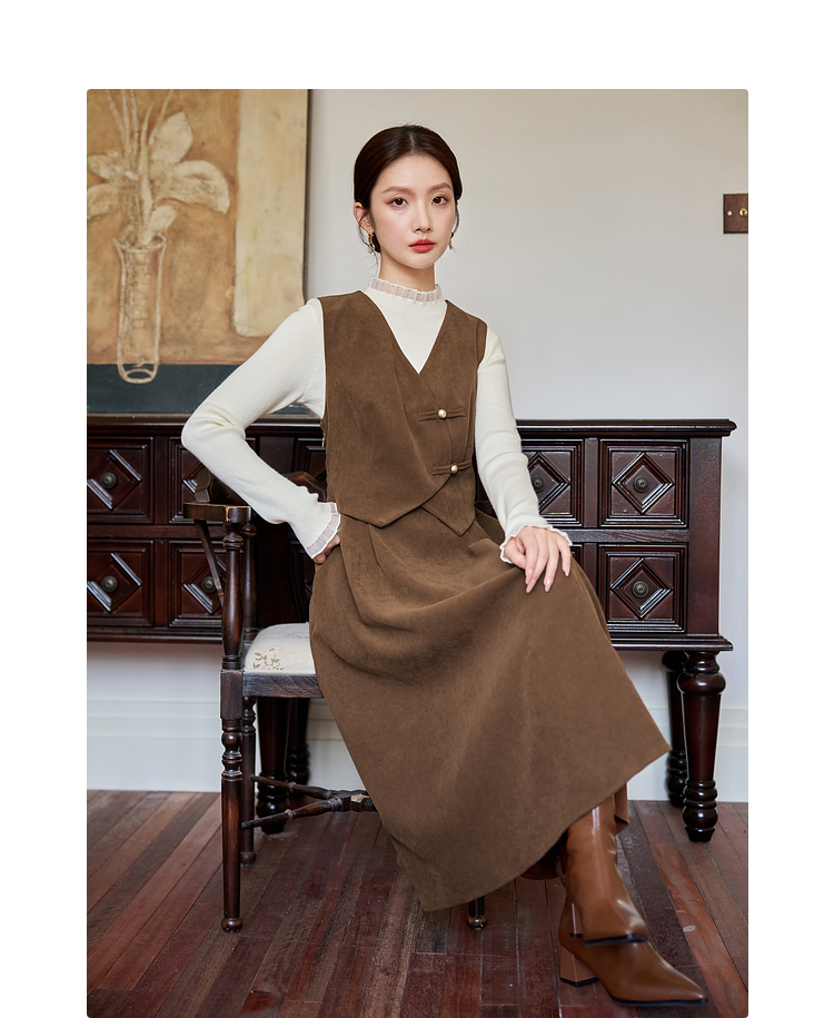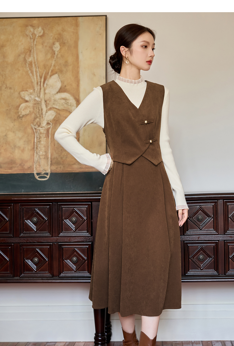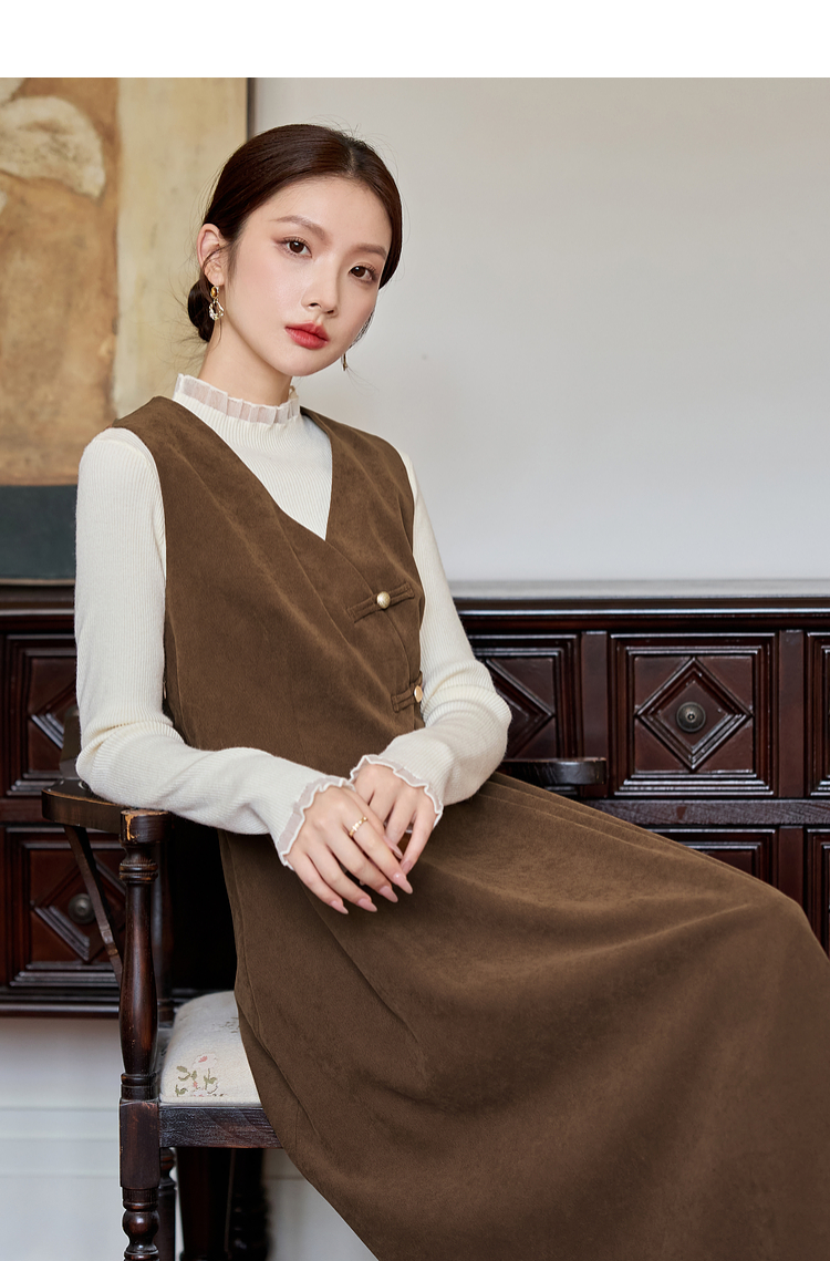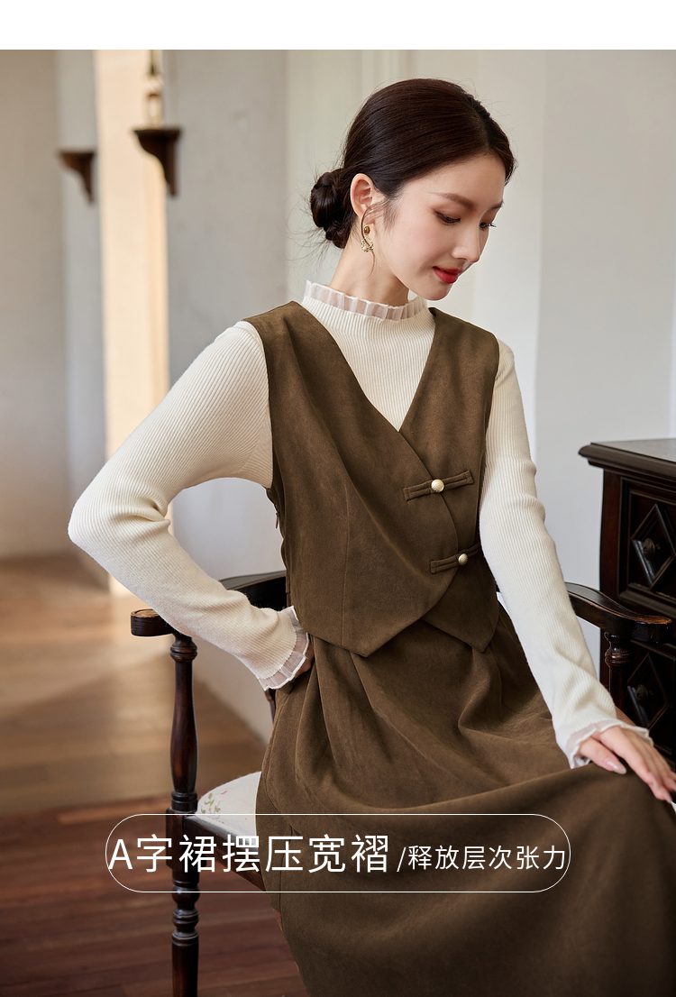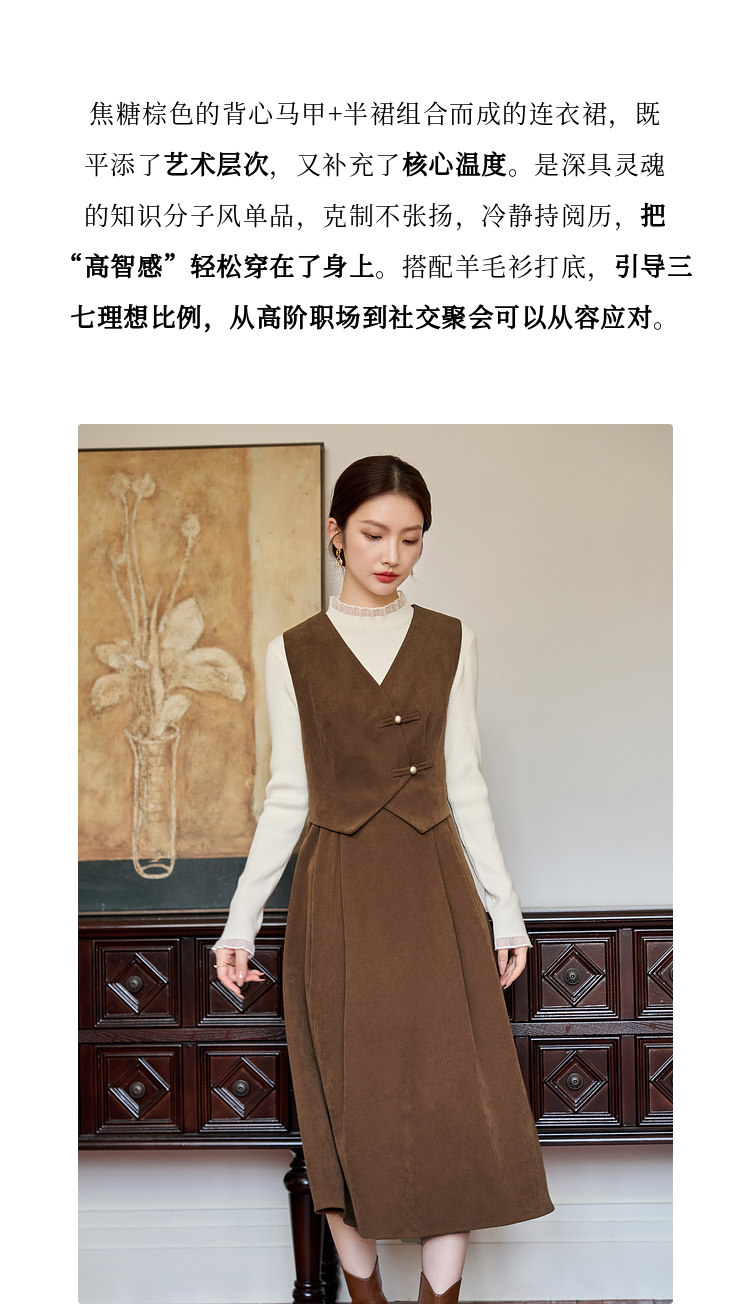 【专属特价】熙世界美拉德风磨绒马甲连衣裙秋冬新款法式复古超好看背心裙子