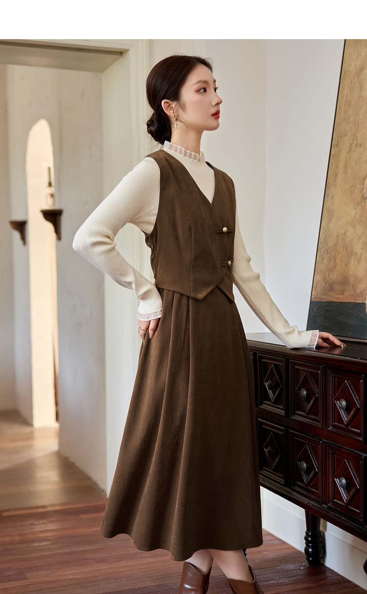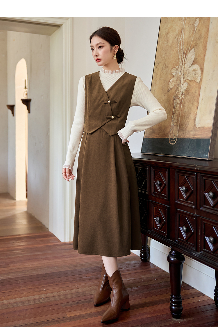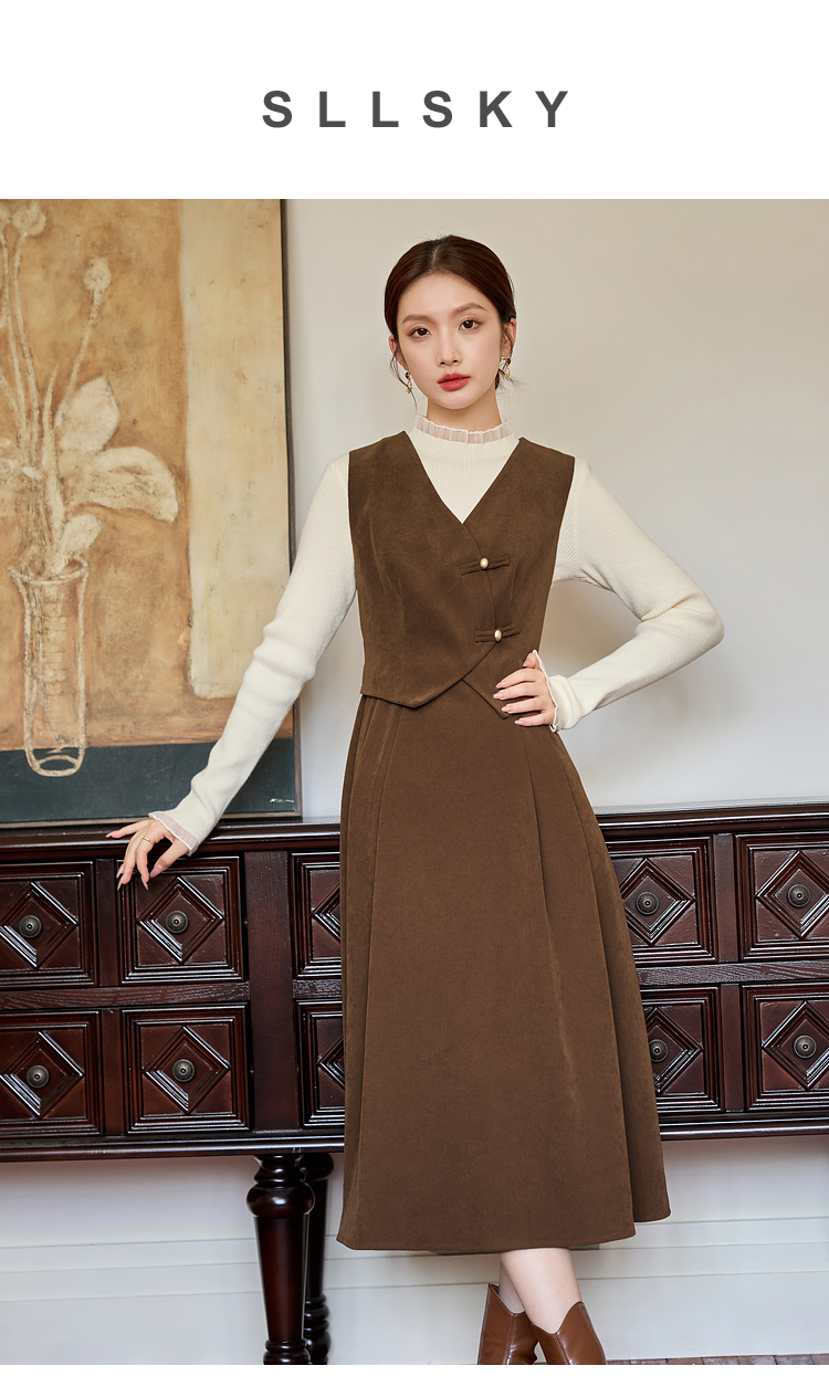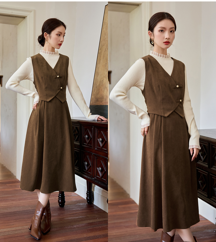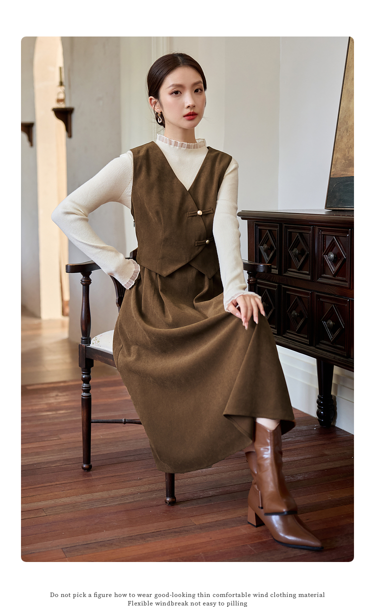 【专属特价】熙世界美拉德风磨绒马甲连衣裙秋冬新款法式复古超好看背心裙子