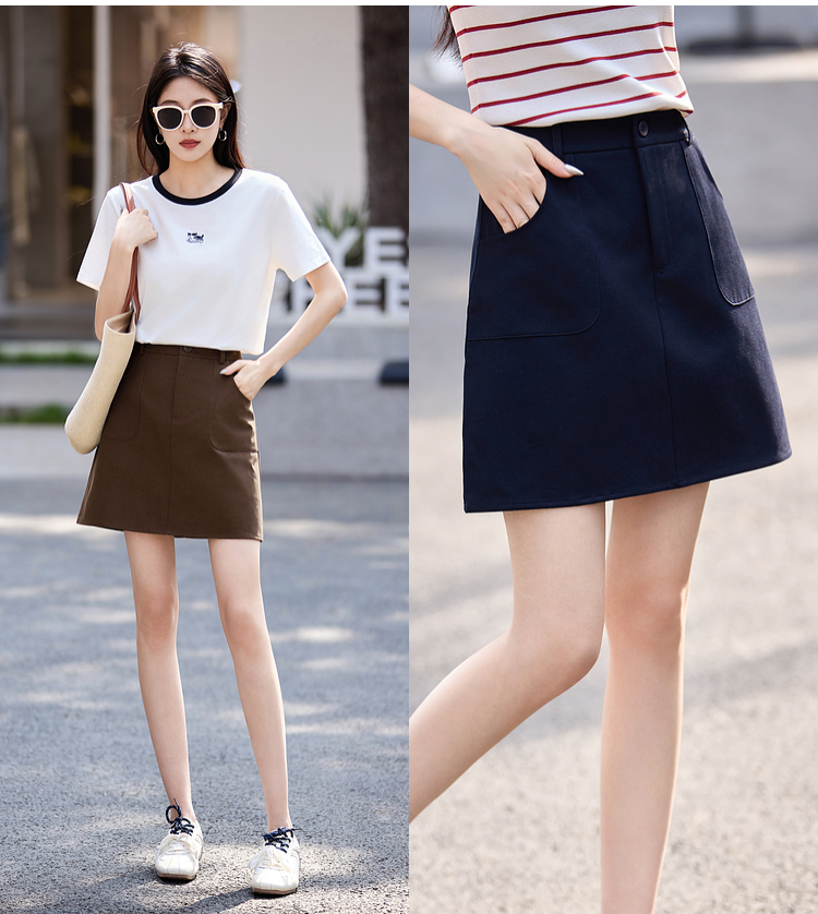 【专属特价】熙世界天丝棉半身裙女夏2025新款复古工装口袋小个子a字包臀短裙