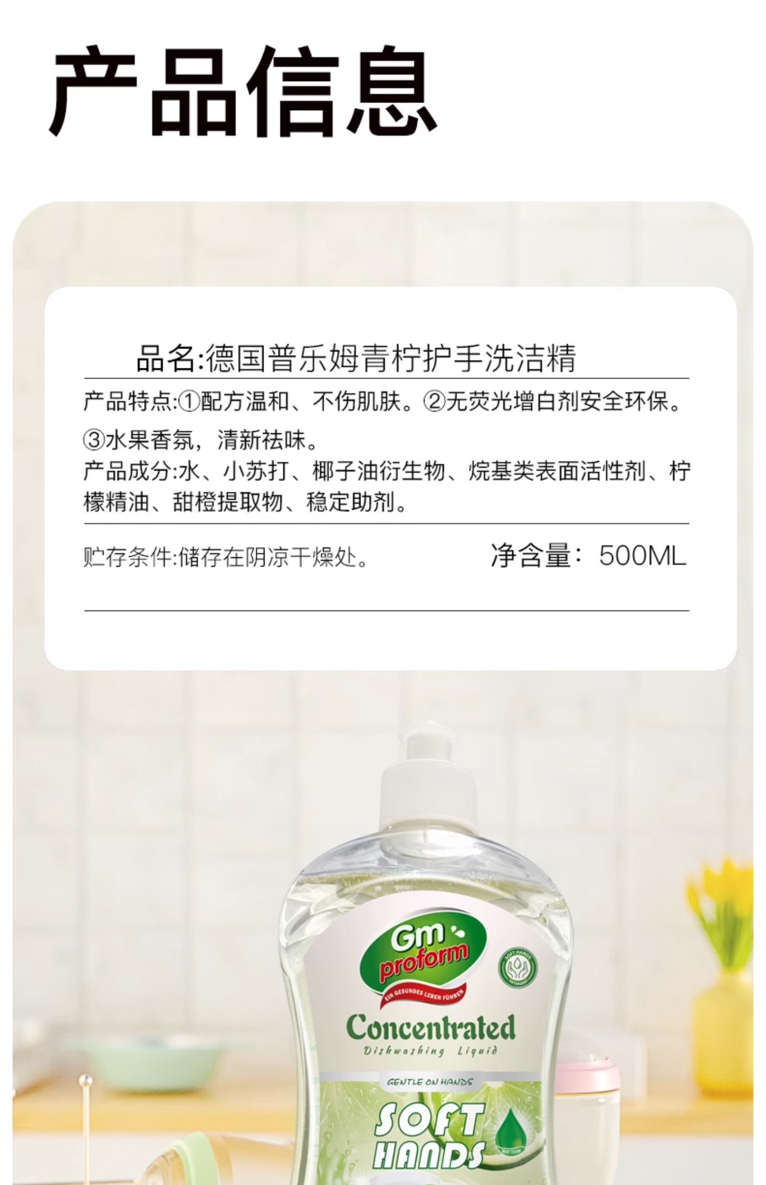 普乐姆 青柠护手洗洁精 500ml【全新品】
