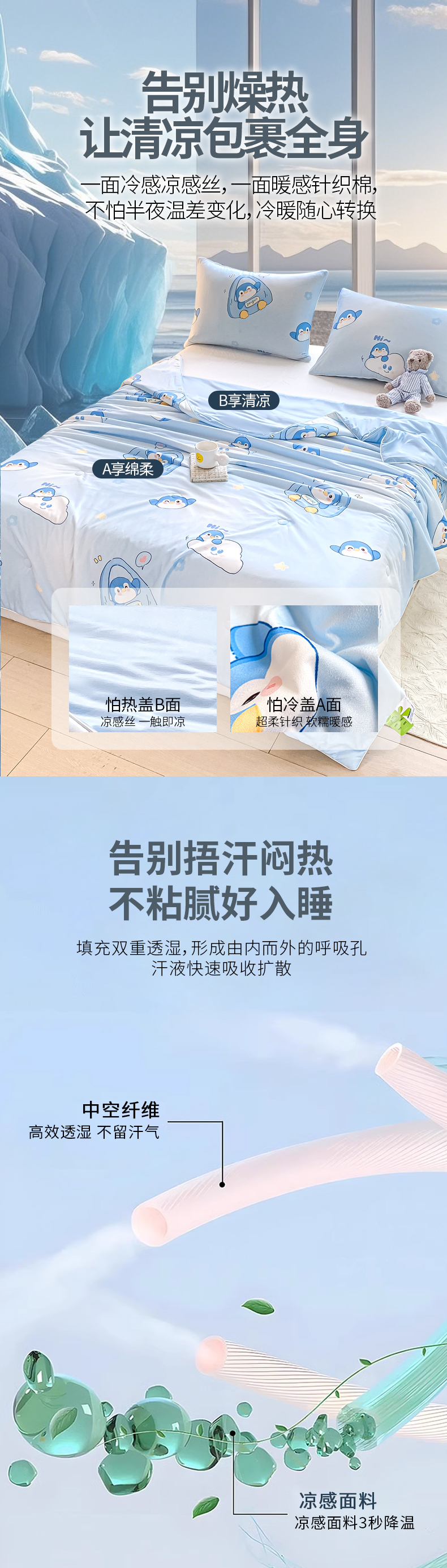 ✅A面温感×B面凉感,一被搞定昼夜温差;B面凉感丝3秒瞬凉,A面超柔针织暖而不燥~