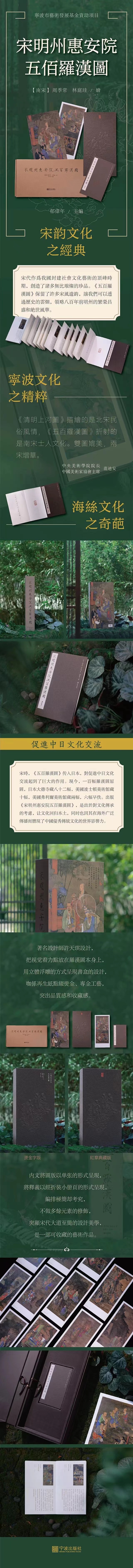 《宋 明州惠安院五百罗汉图》,精装外函,散页100张单面印刷,内页尺23*50.2cm,画芯尺寸20*42cm。附经折装导读册,郁伟年主编,宁波出版社2023年7月一版一印,定价2880,售价1598