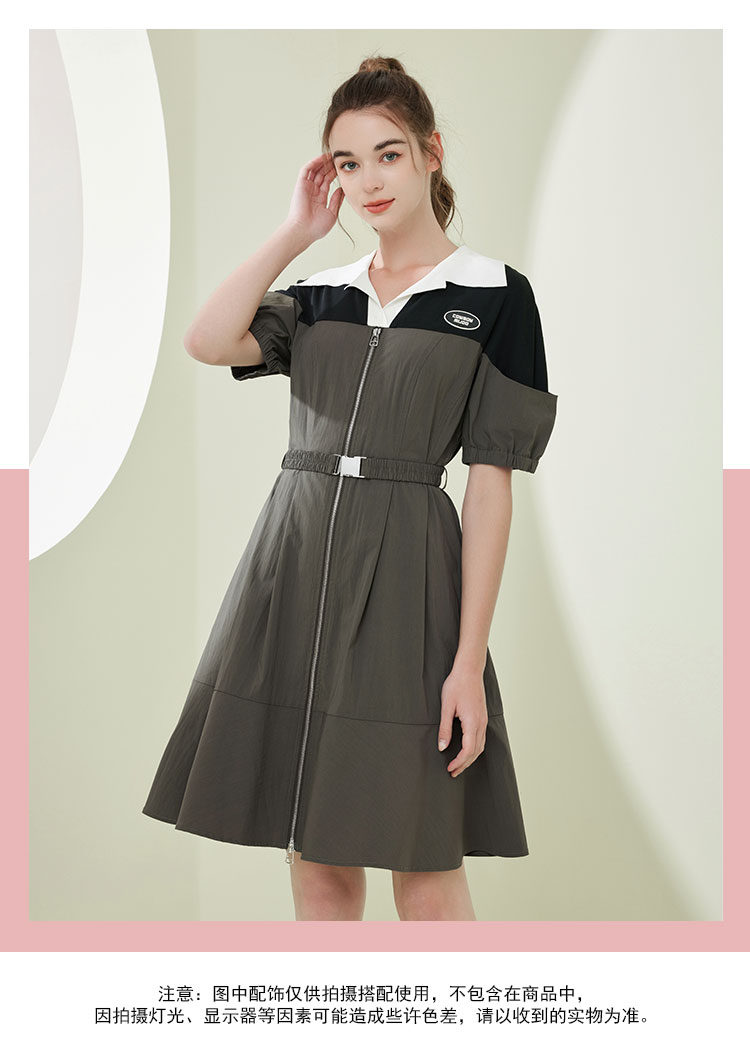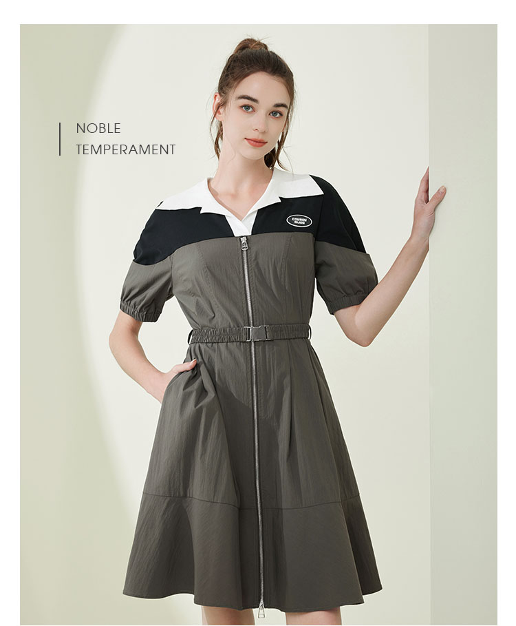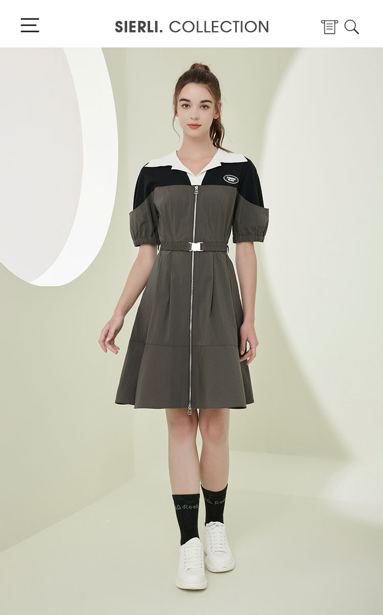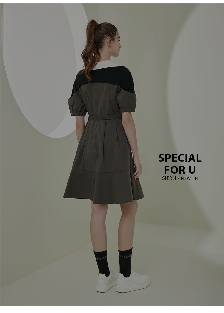 NF8W1斯尔丽瑟俪2023夏季新款时尚休闲针织领收腰显瘦A摆连衣裙减龄裙