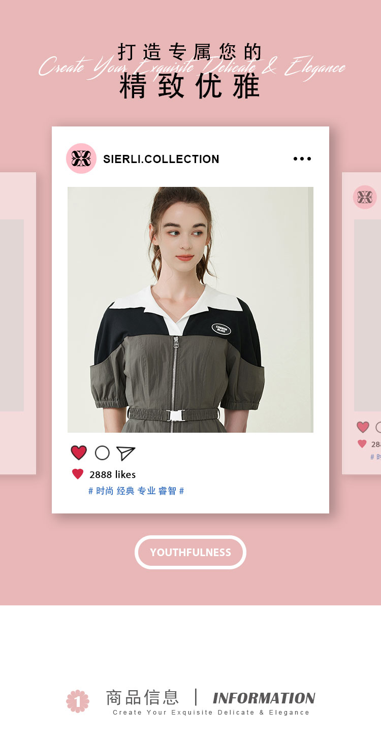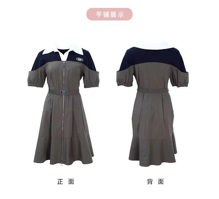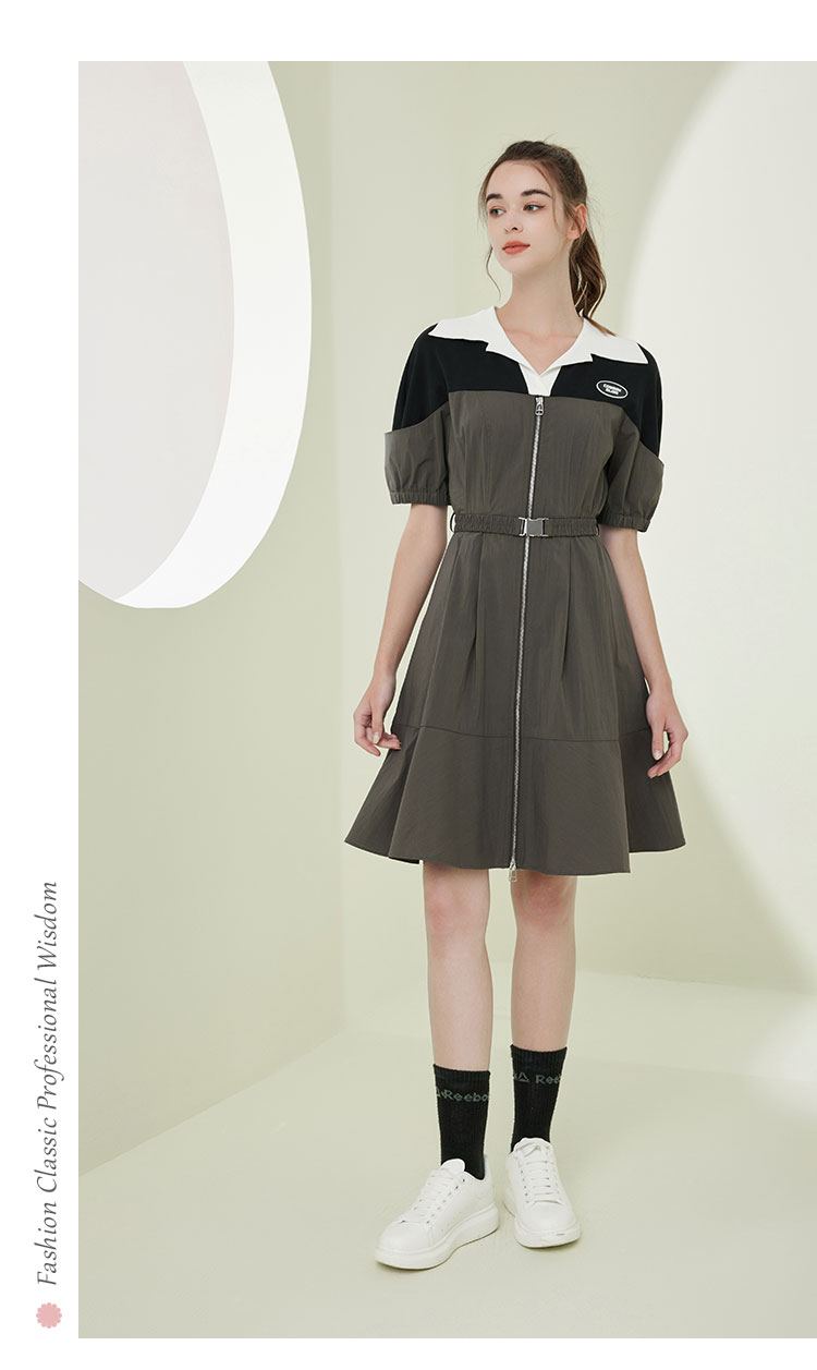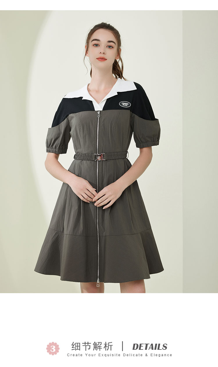 NF8W1斯尔丽瑟俪2023夏季新款时尚休闲针织领收腰显瘦A摆连衣裙减龄裙