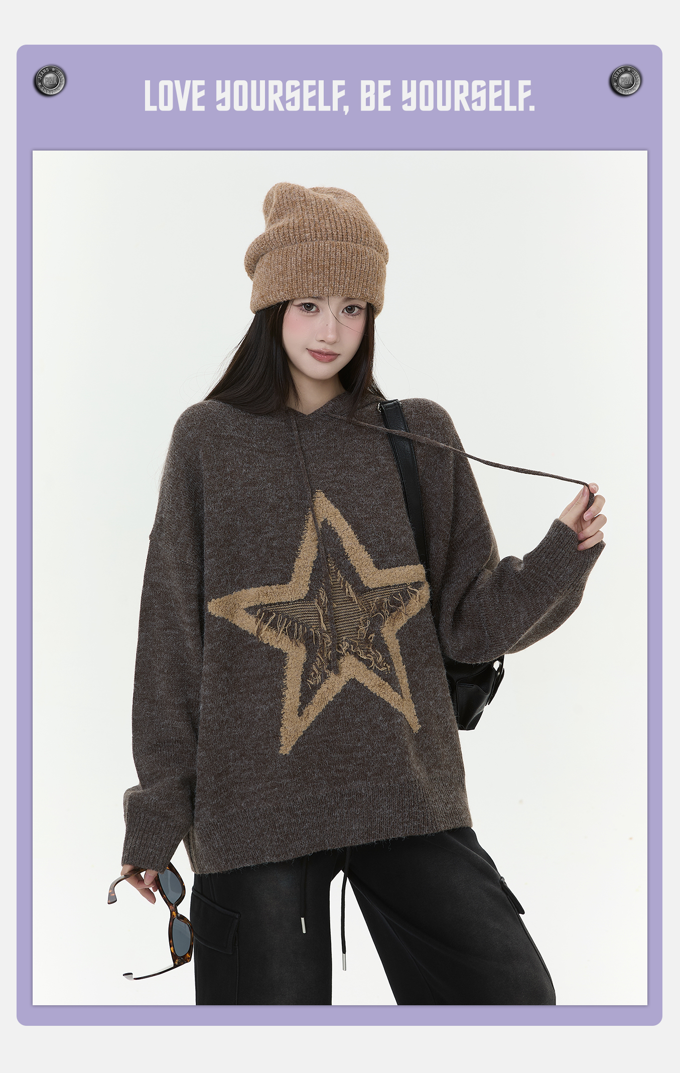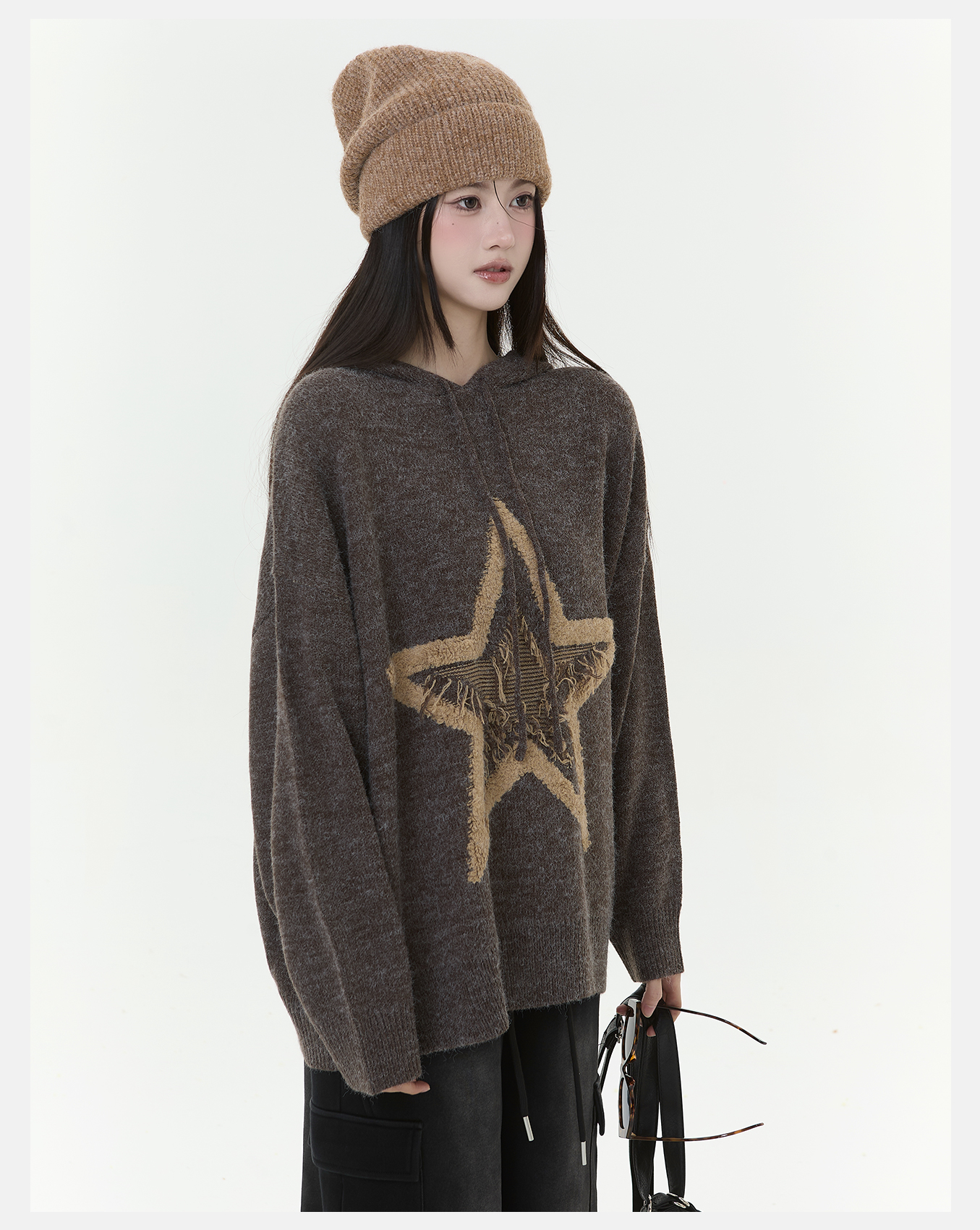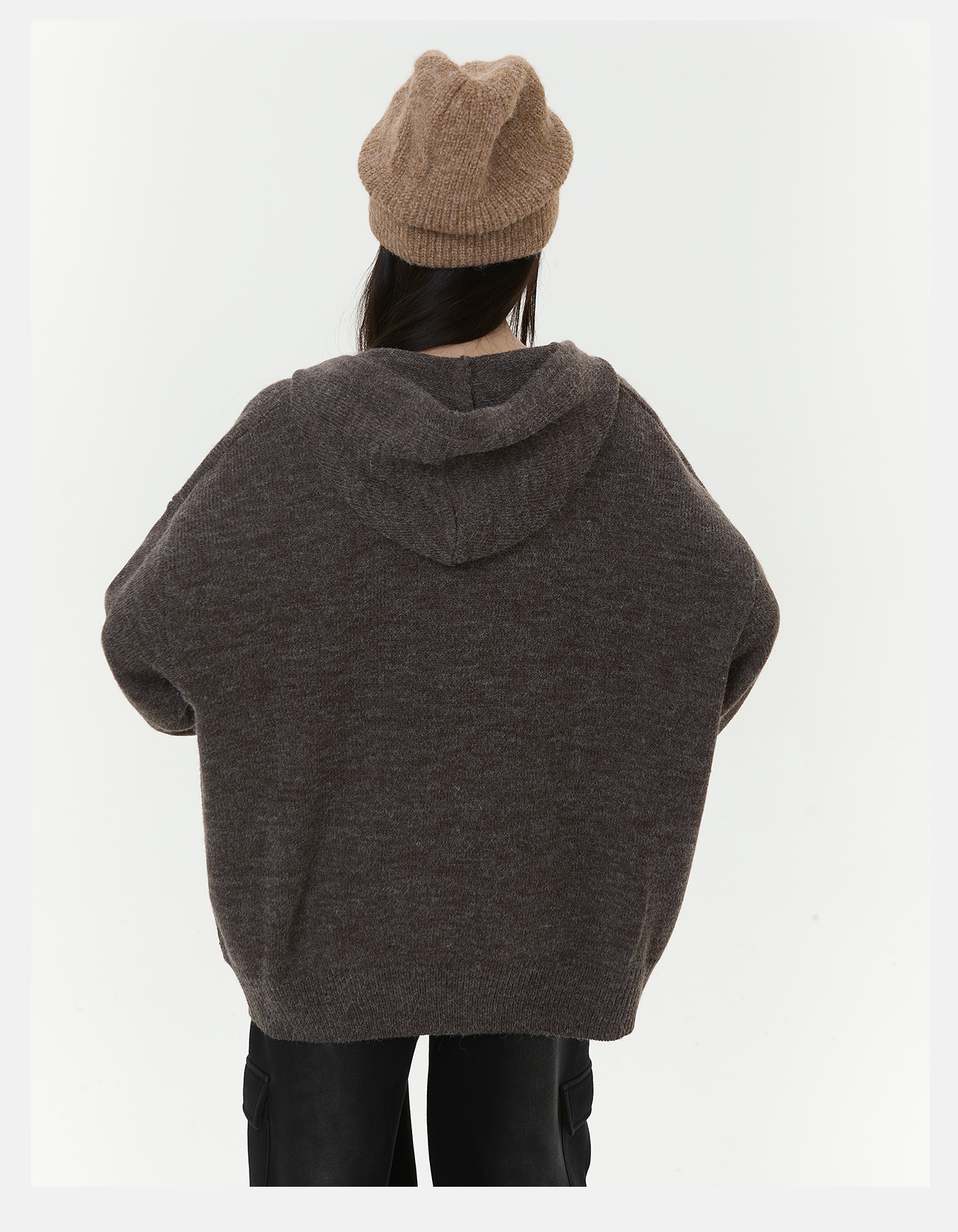 P&X设计师女装2025冬季连帽中长款毛衣保暖套头825418188 咖色