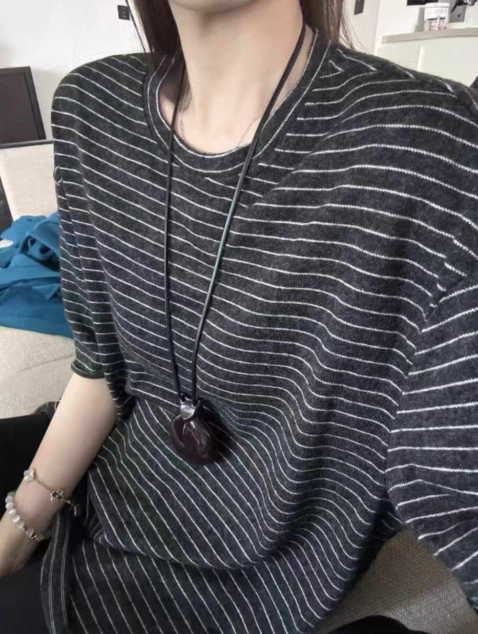 老米优品🎈3-5天!230g人棉面料!《纸片人 oversize 复古条纹宽松五分袖tee》人棉面料超舒服!软糯松弛巨显瘦~T260320A