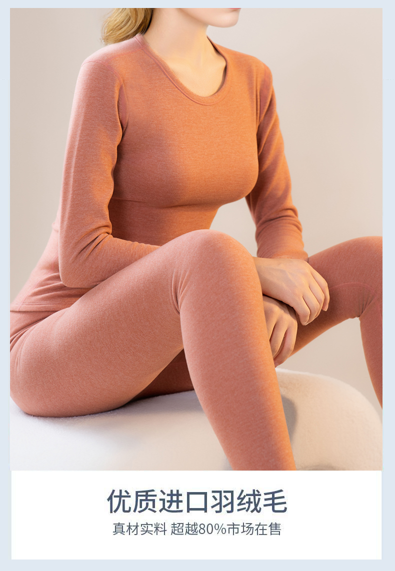 限时抢【49元1套】新款保暖内衣女薄绒绵羊毛蚕丝加厚无痕冬季发热秋衣秋裤套装BNN80025BNM80026