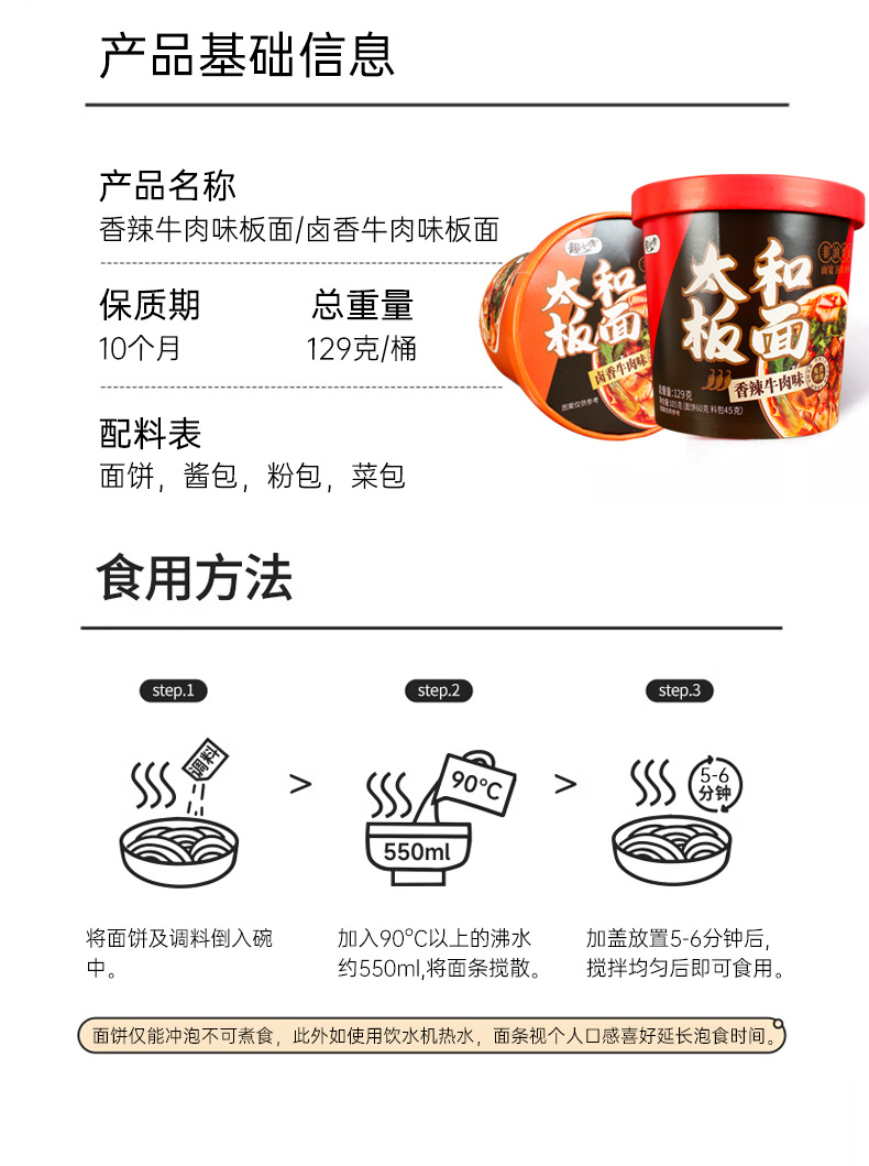 【口感劲道爽滑】太和板面桶装方便面整箱卤香牛肉味太和板面泡面学生宿舍夜宵早餐。ry