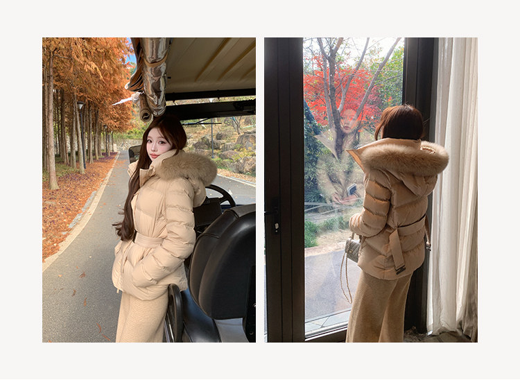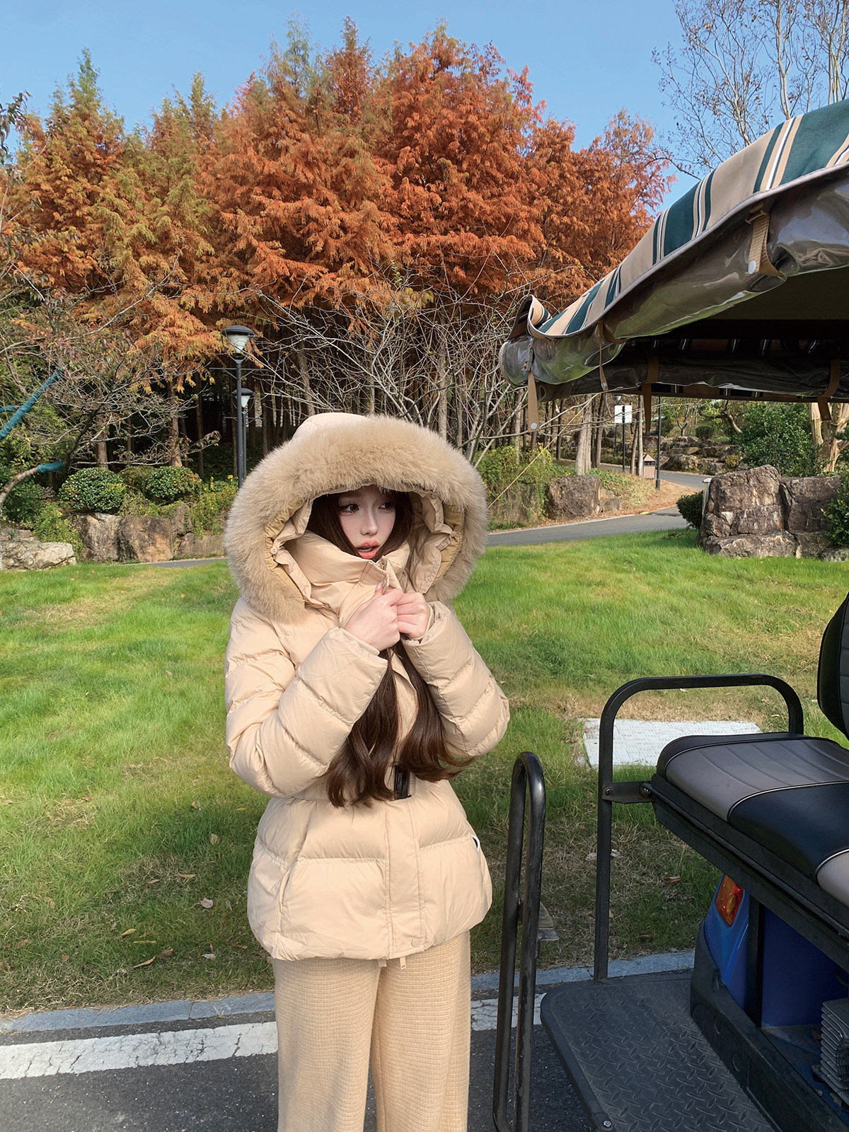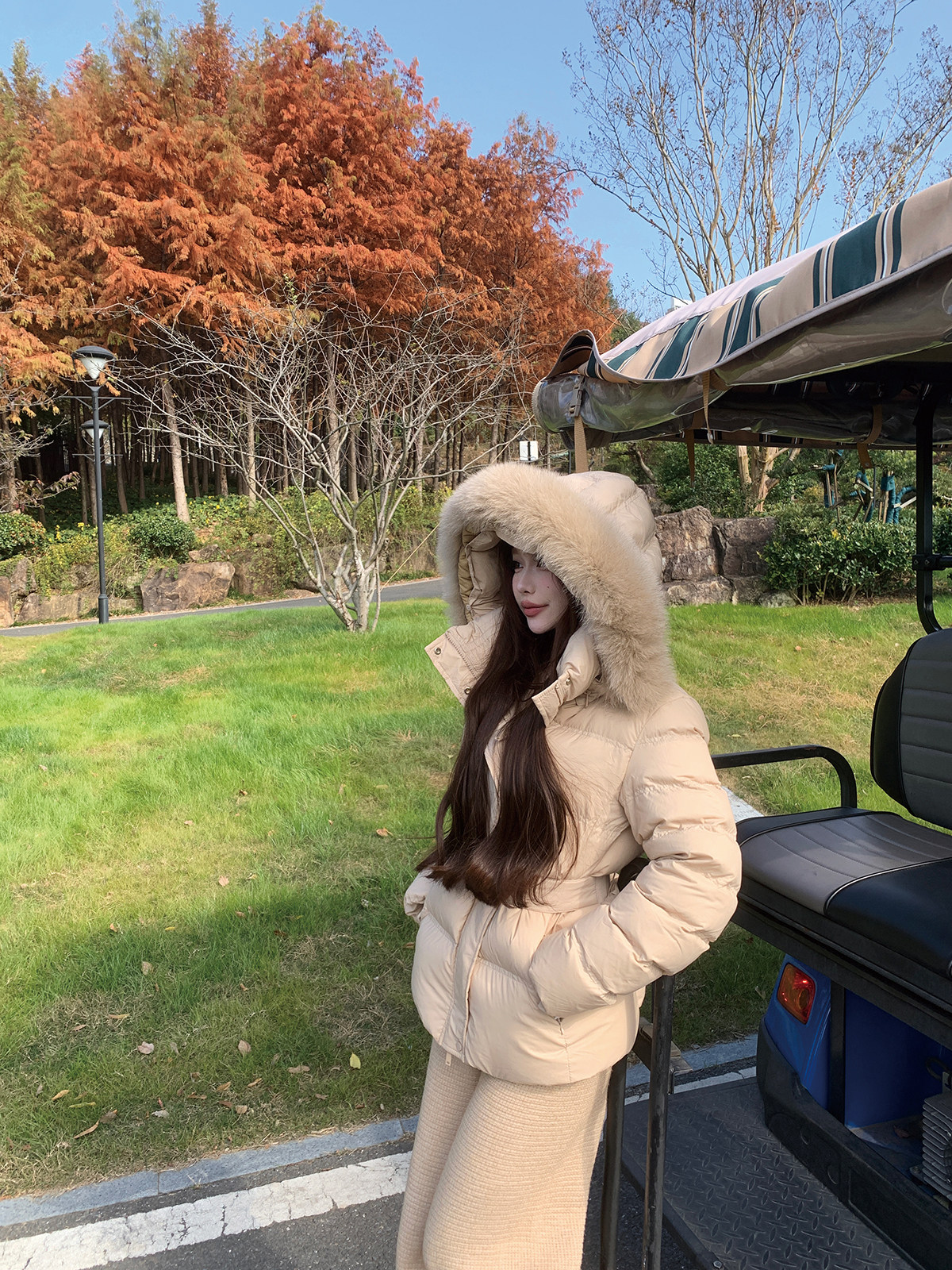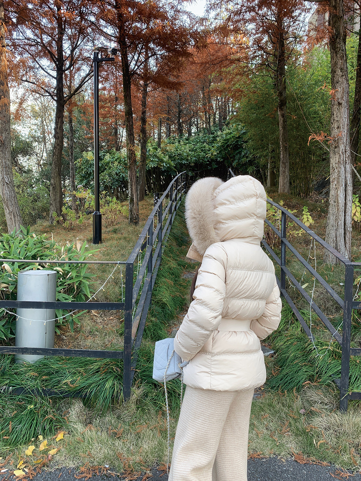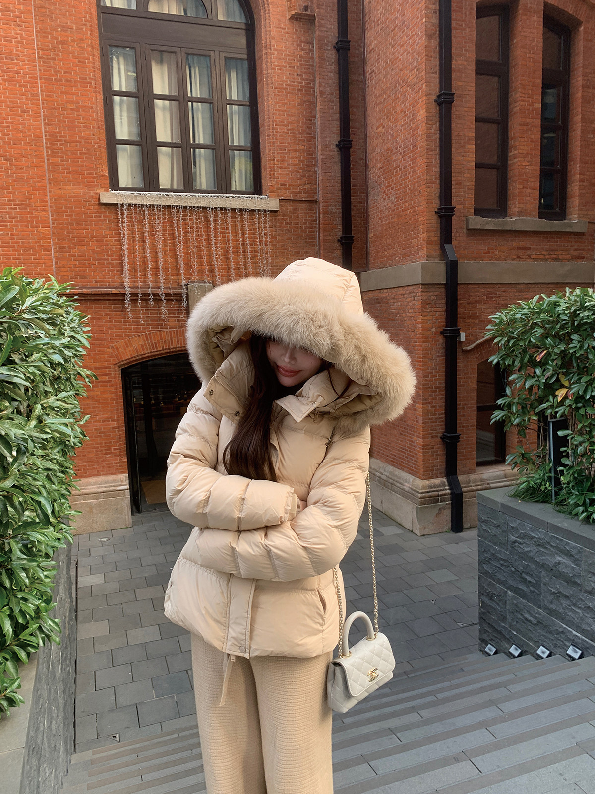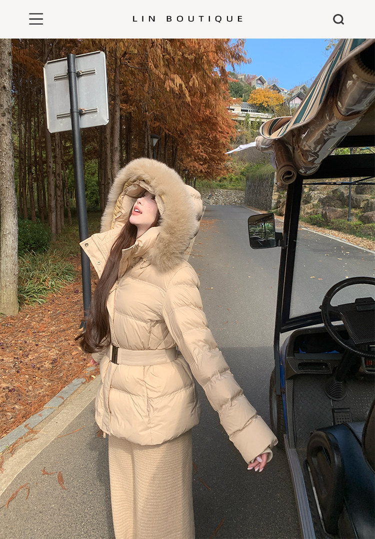 LIN BOUTIQUE 冬日显瘦天花板真狐狸毛领温柔短款哑光羽绒服新款