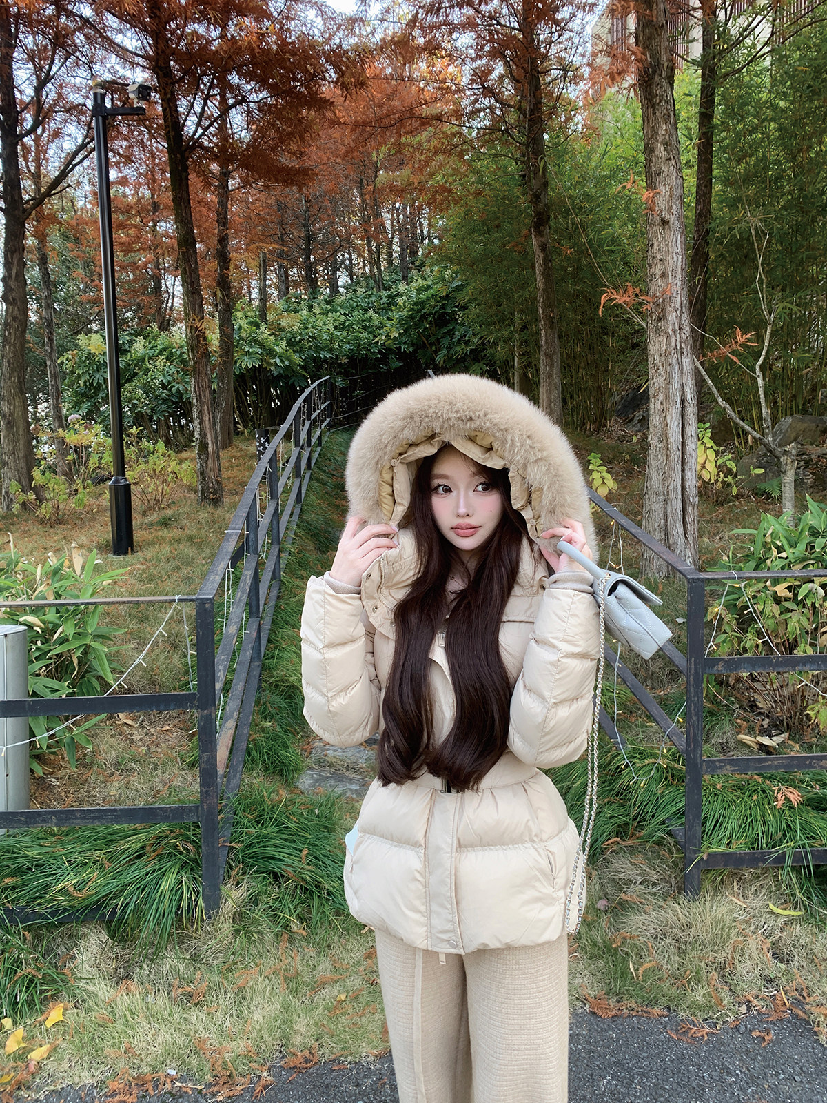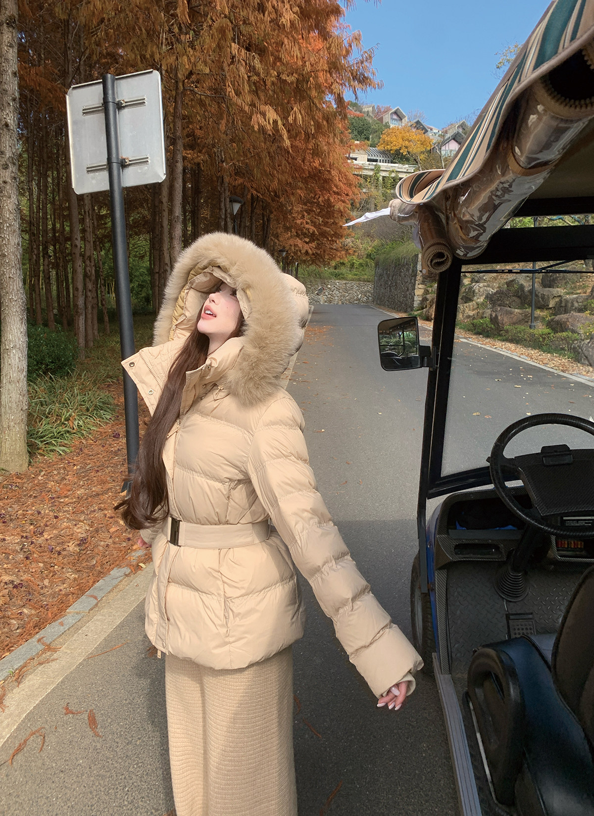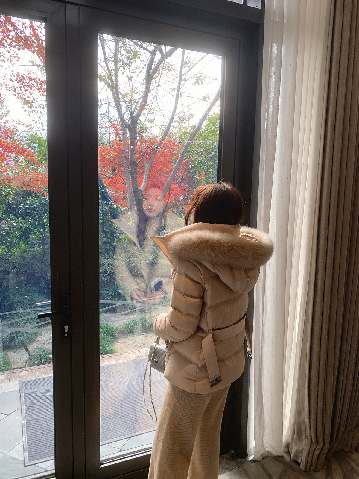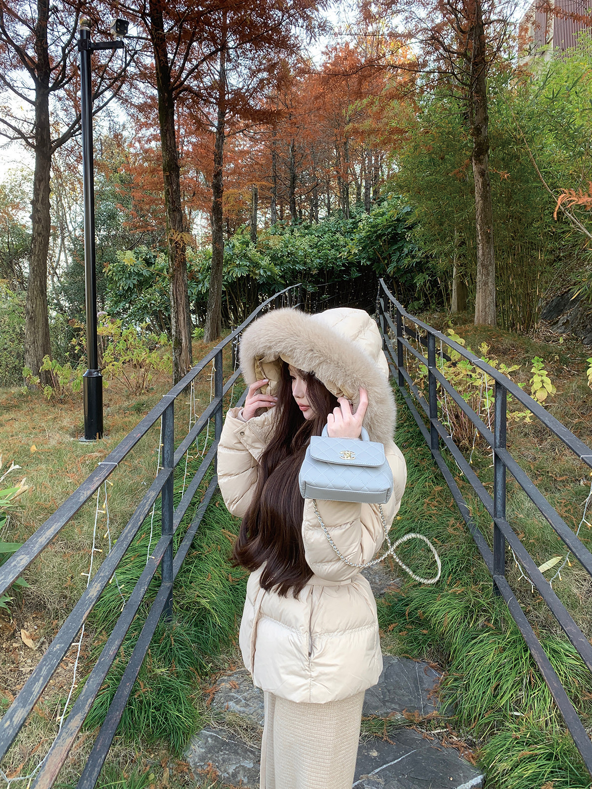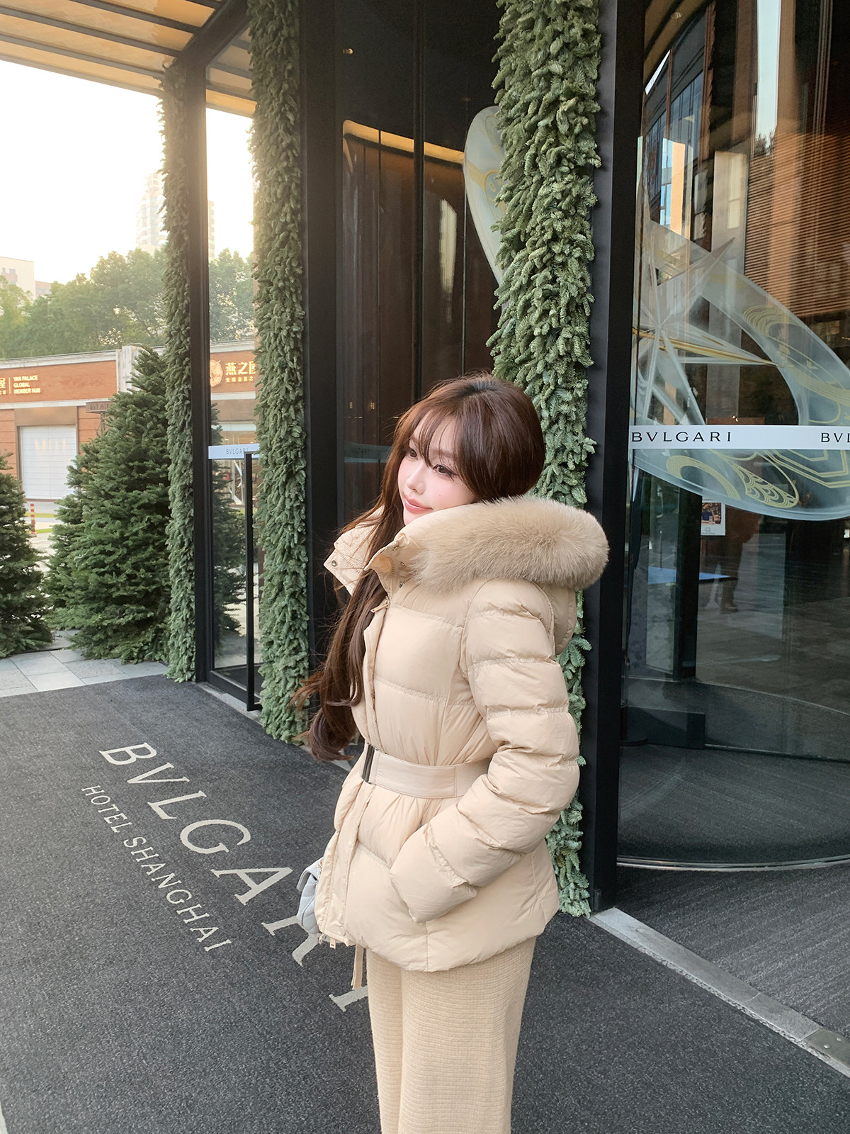 LIN BOUTIQUE 冬日显瘦天花板真狐狸毛领温柔短款哑光羽绒服新款