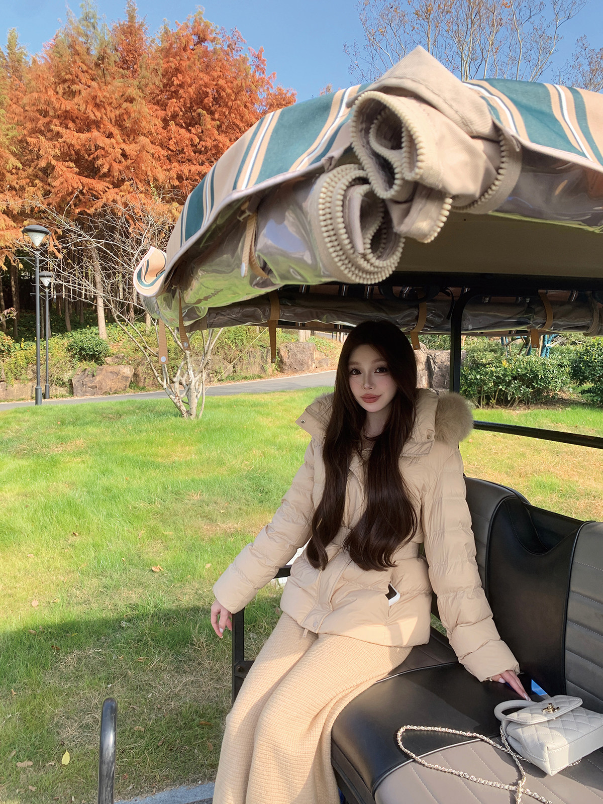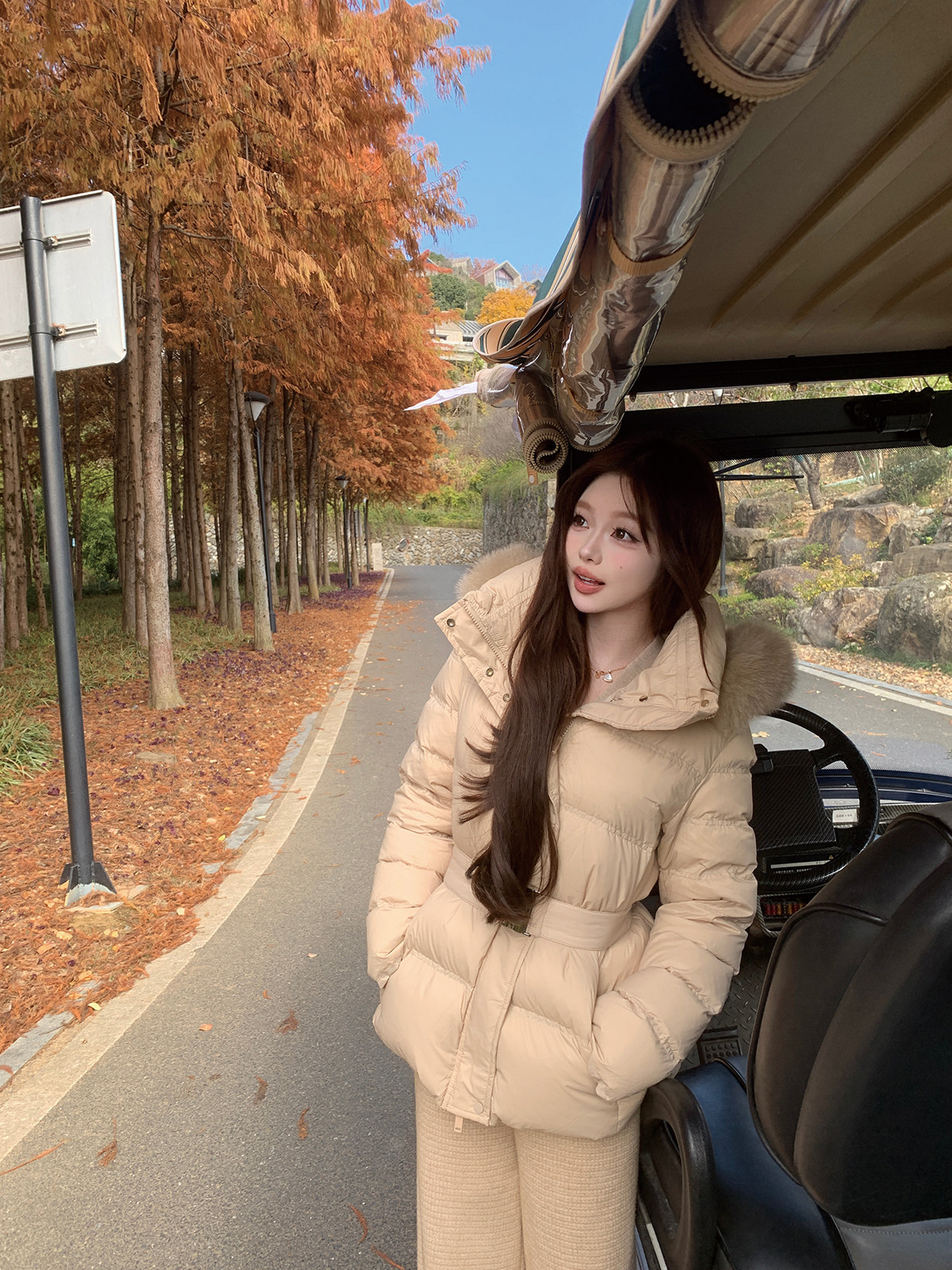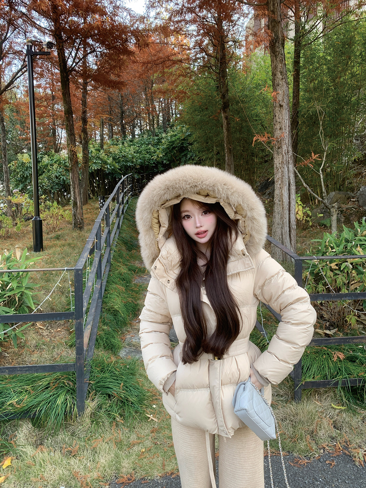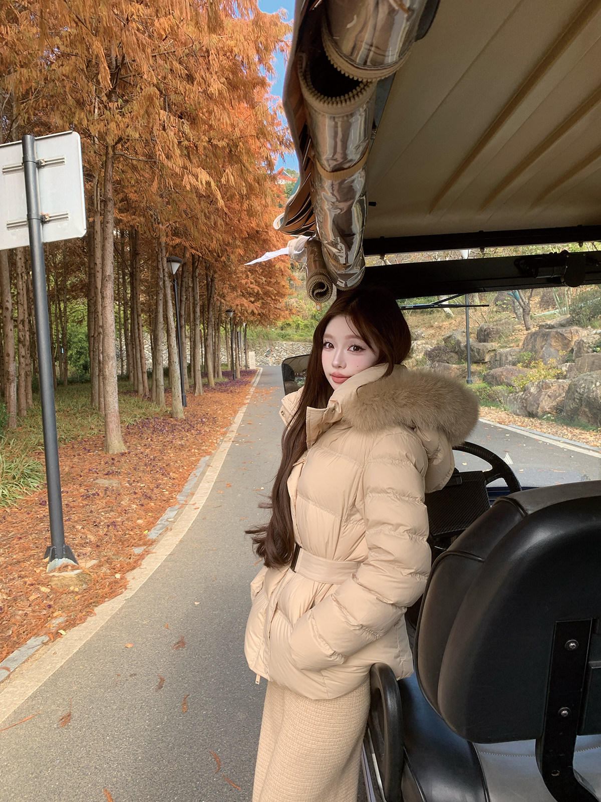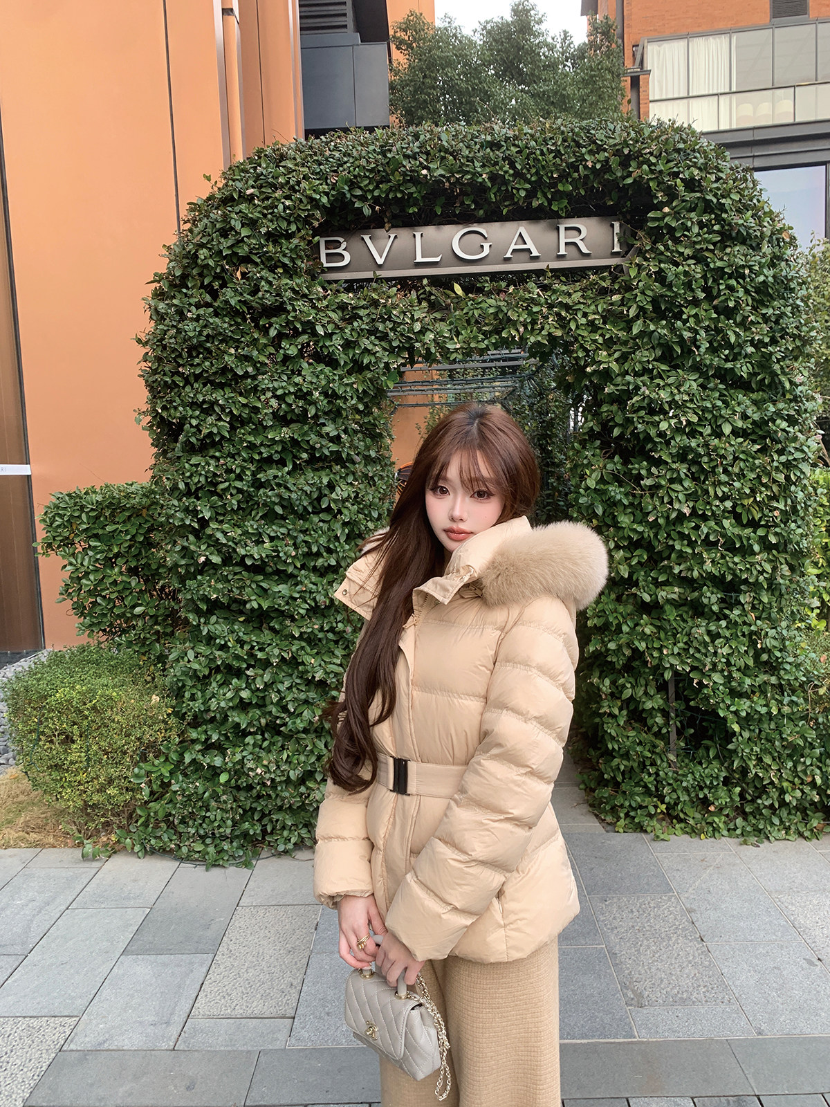 LIN BOUTIQUE 冬日显瘦天花板真狐狸毛领温柔短款哑光羽绒服新款