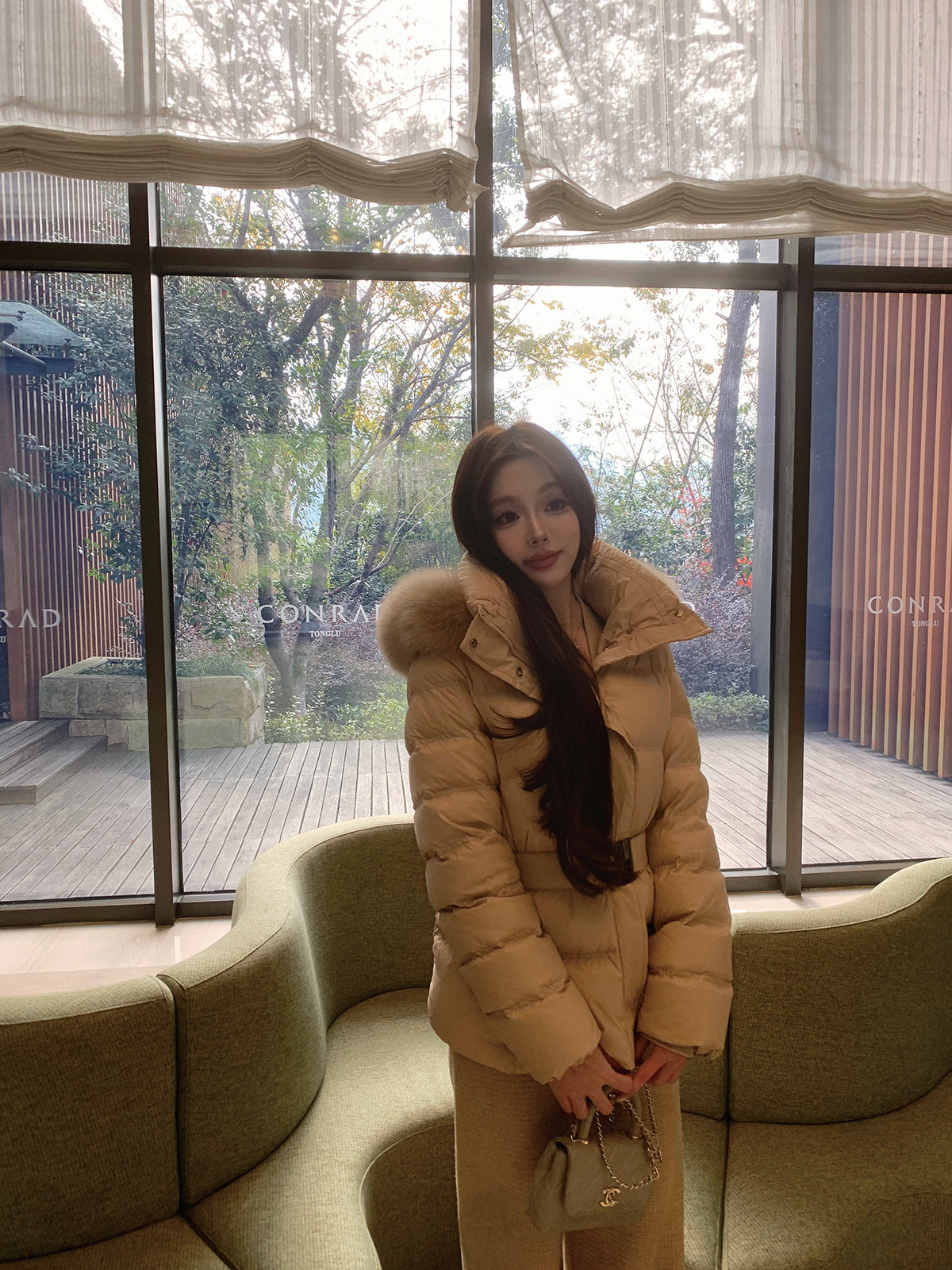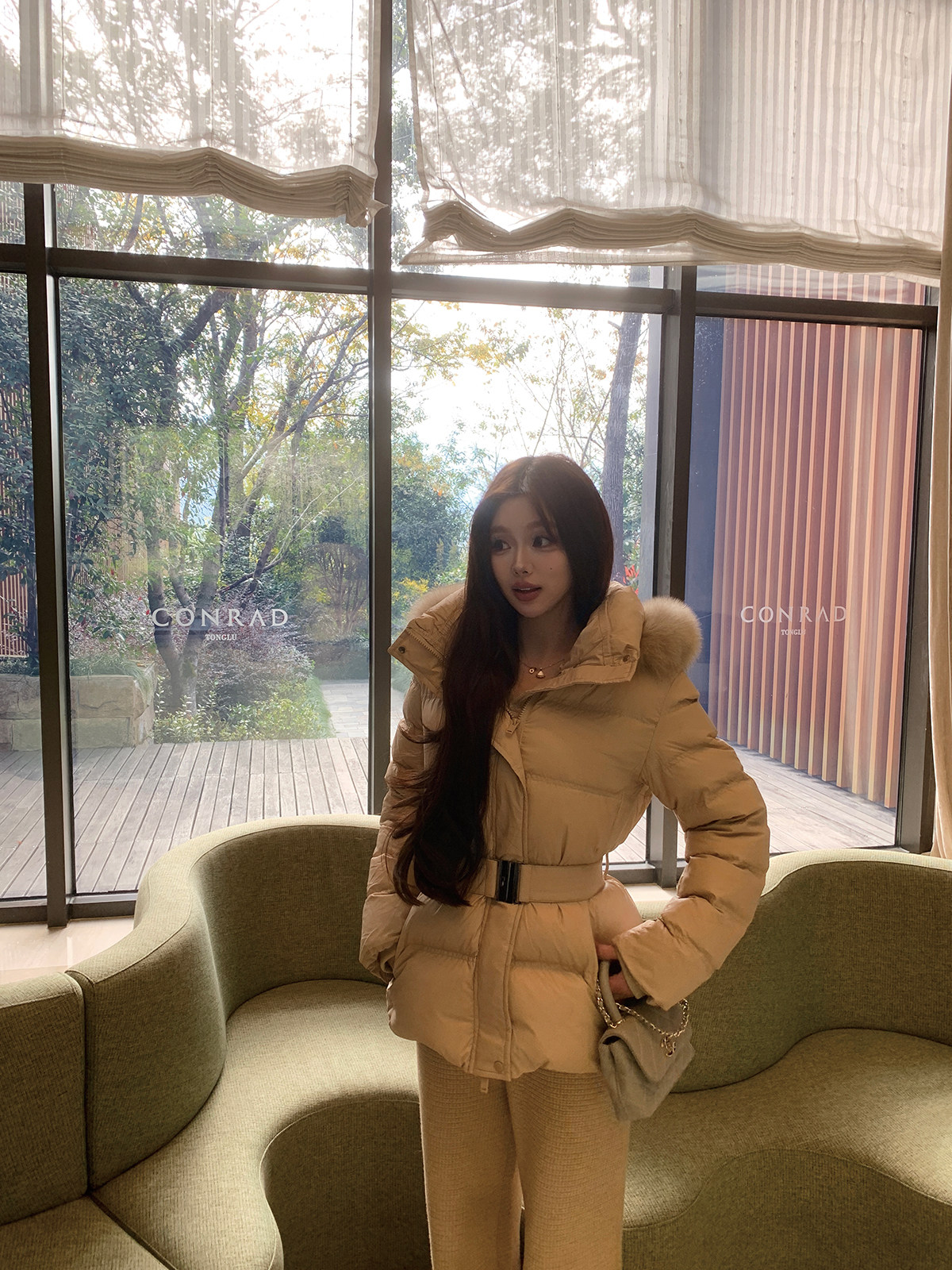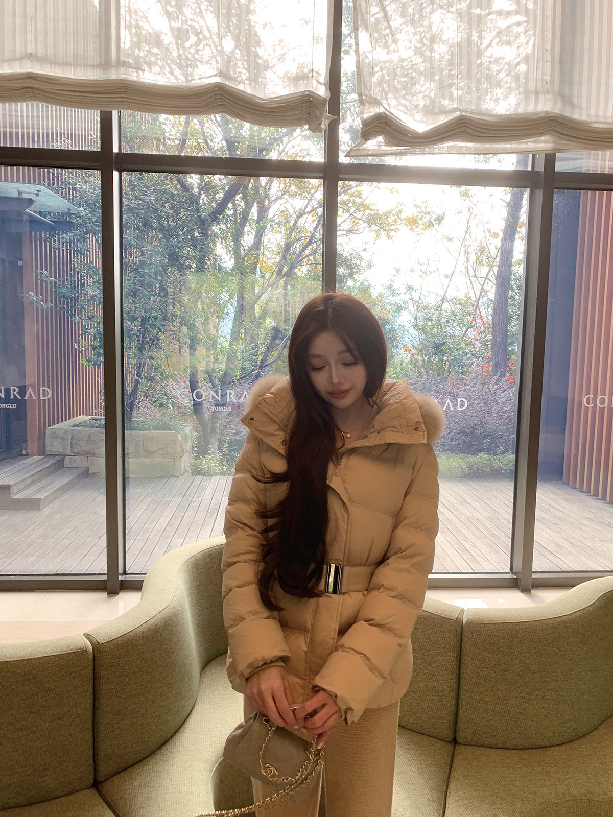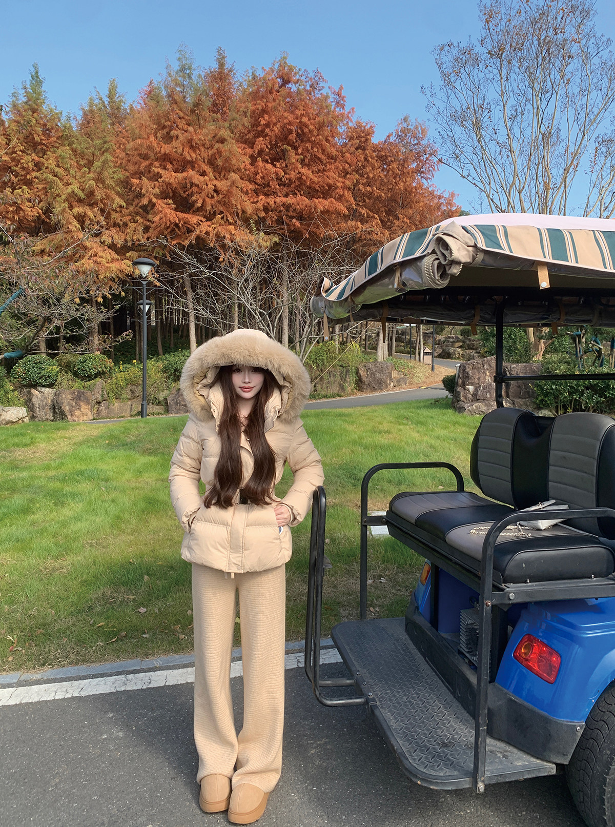 LIN BOUTIQUE 冬日显瘦天花板真狐狸毛领温柔短款哑光羽绒服新款