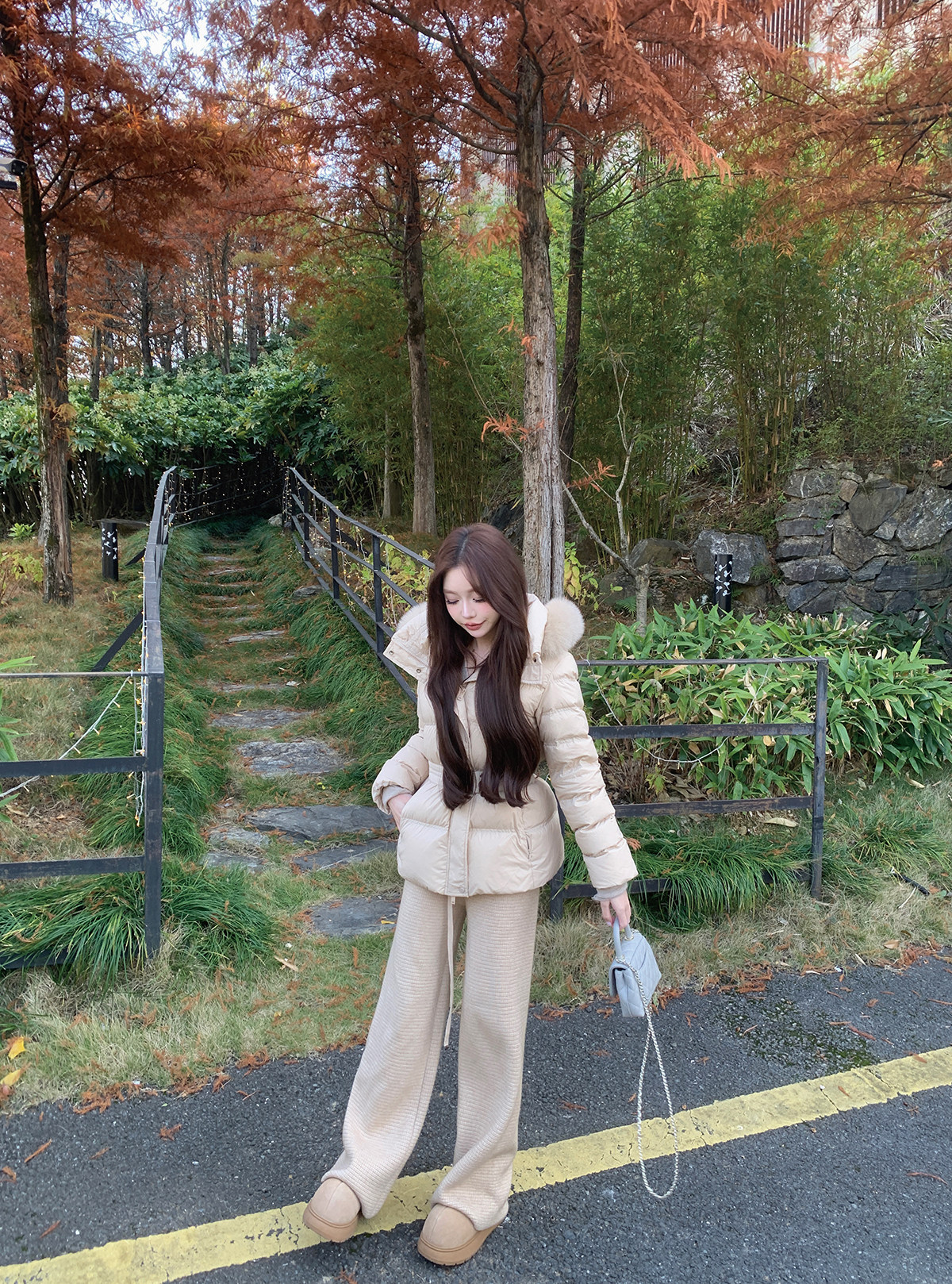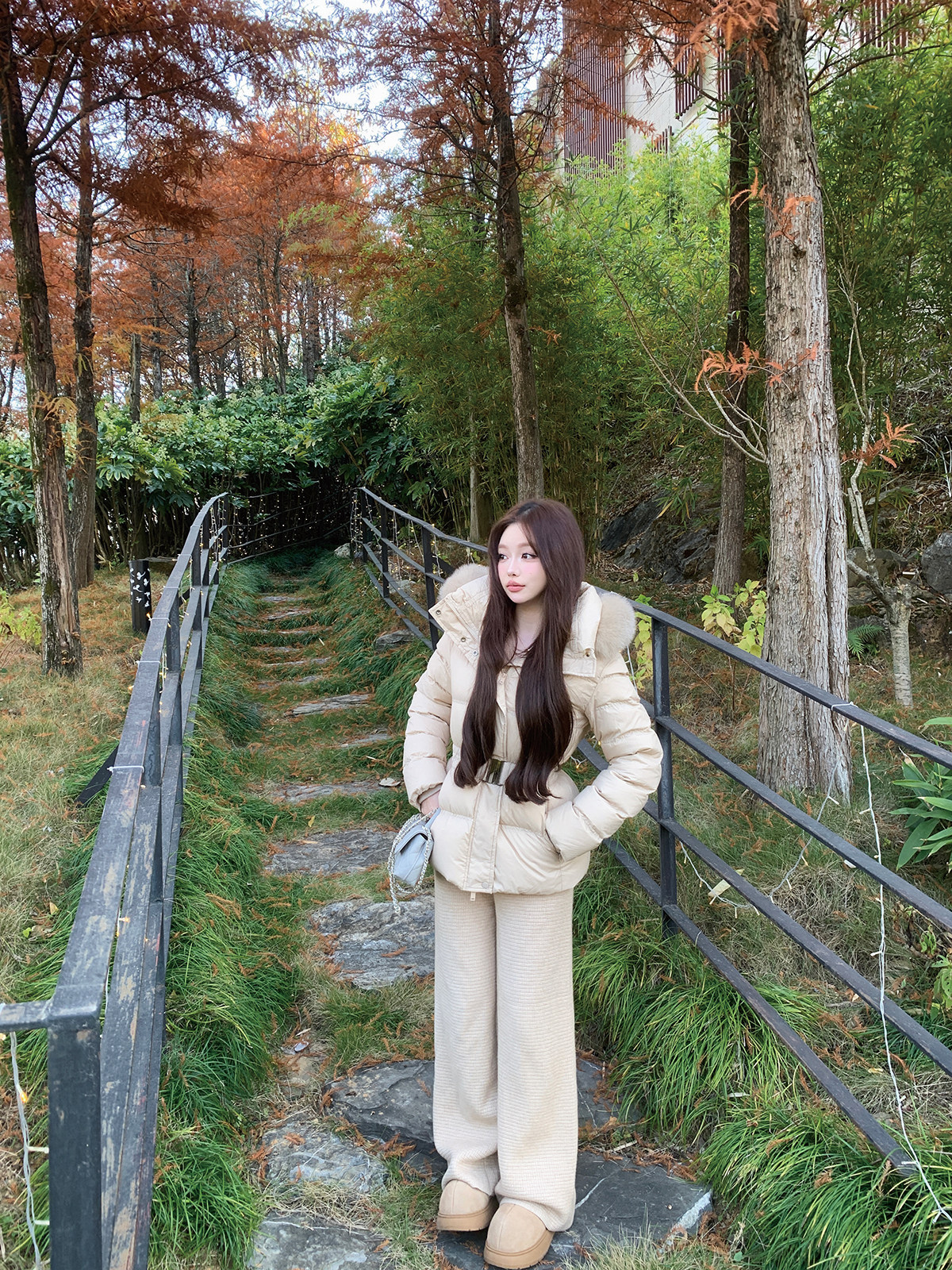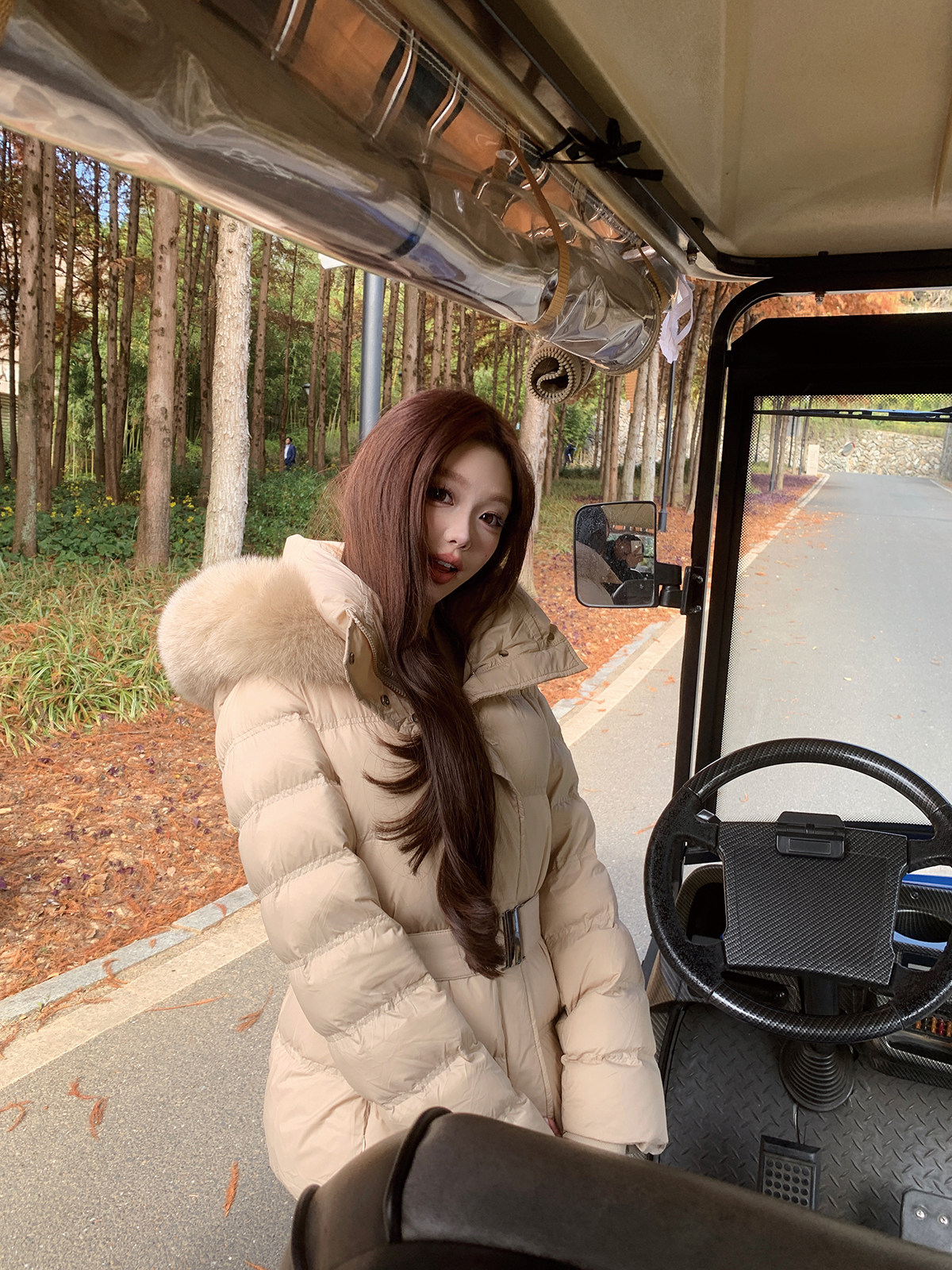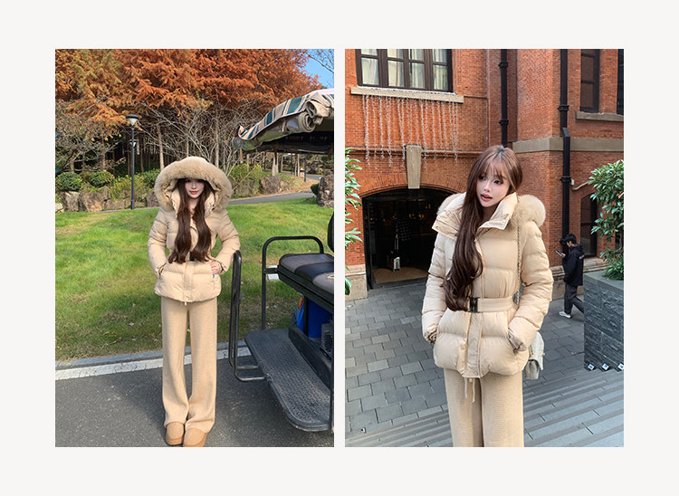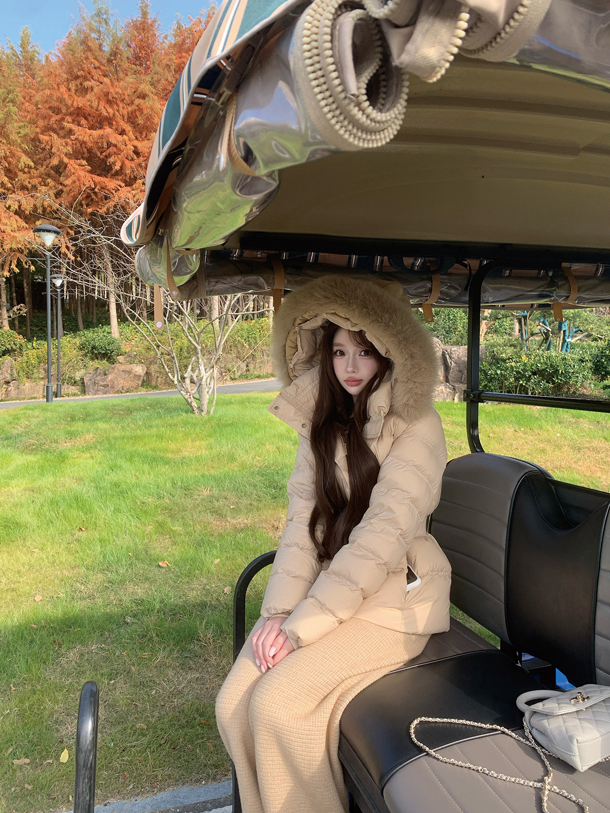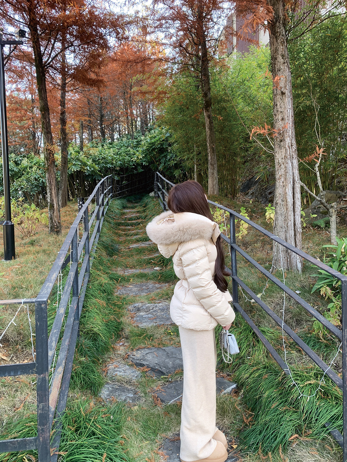 LIN BOUTIQUE 冬日显瘦天花板真狐狸毛领温柔短款哑光羽绒服新款