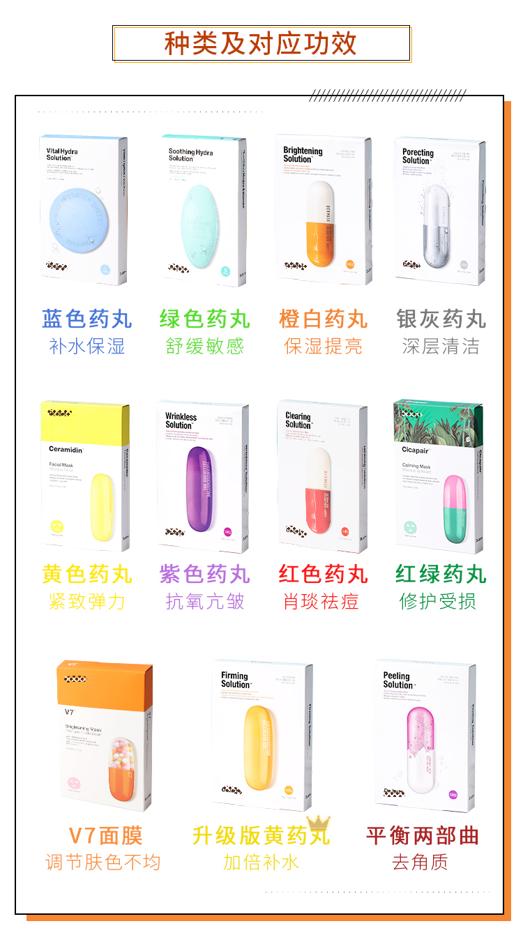 韩国Dr.Jart蒂佳婷药丸面膜 保湿舒缓紧致弹力红绿蓝橙