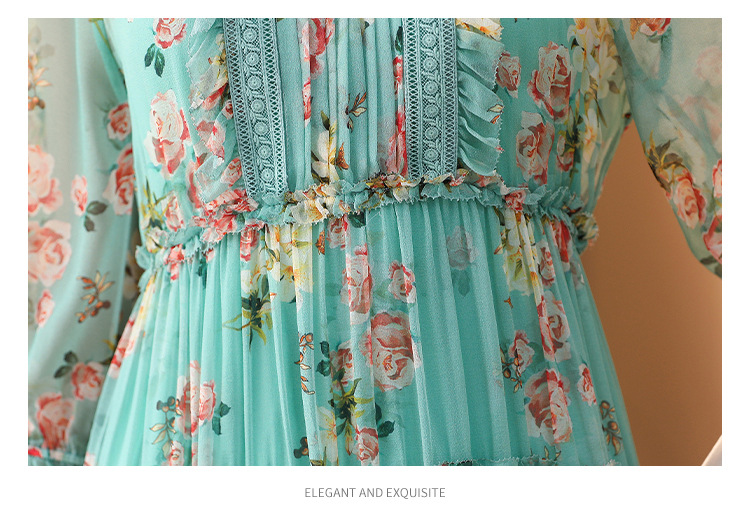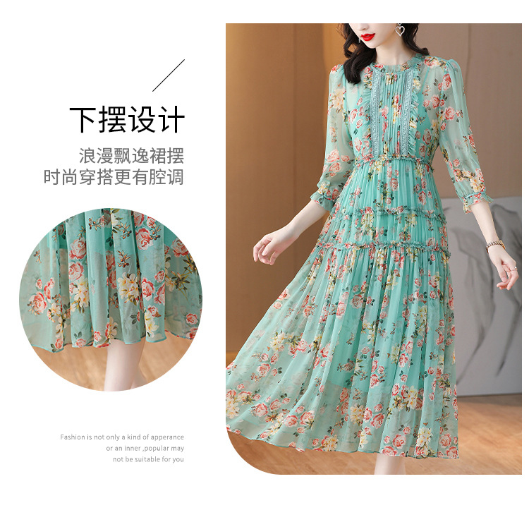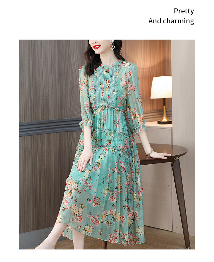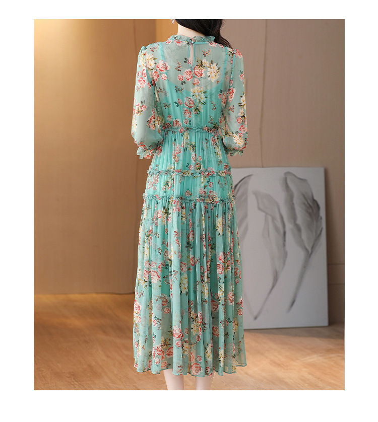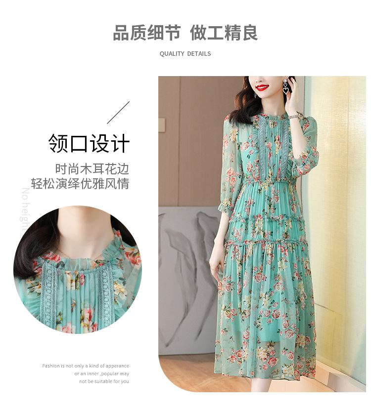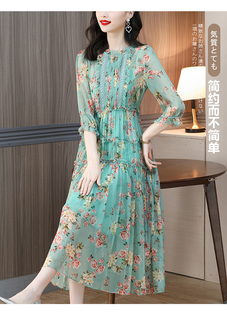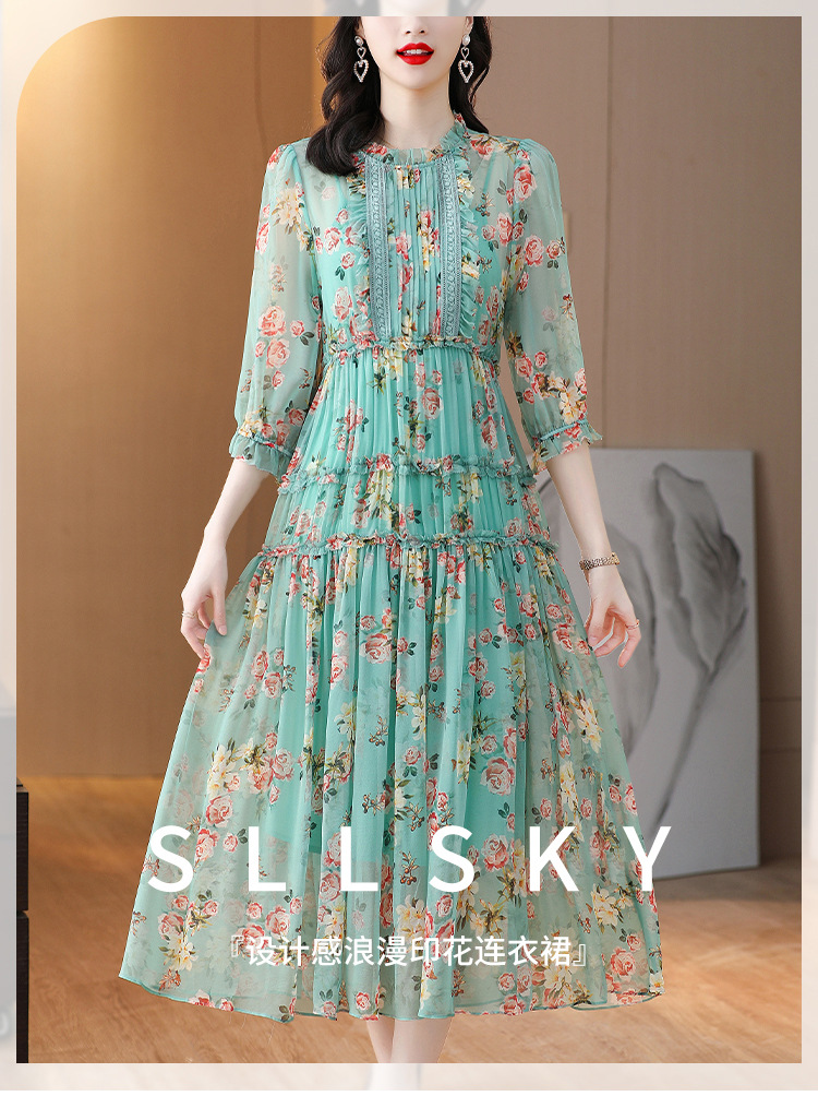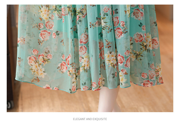 收腰显瘦,气质减龄过膝长裙法式碎花连衣裙AHM-nrg3069