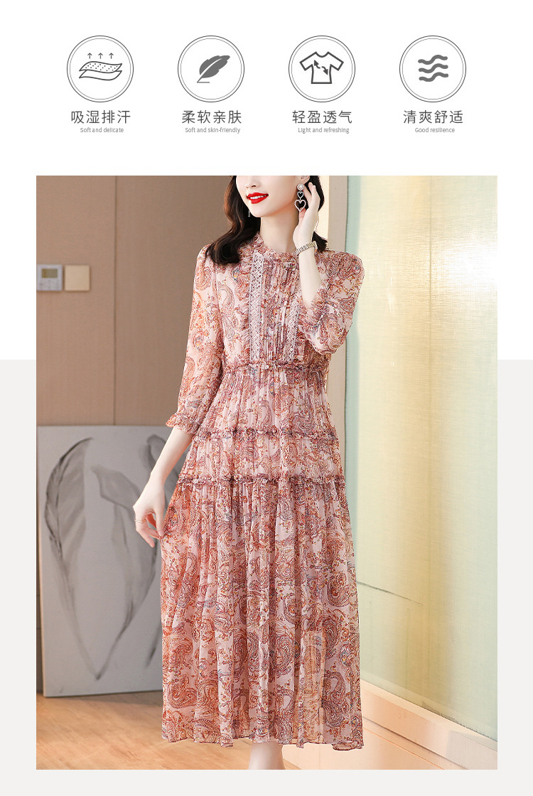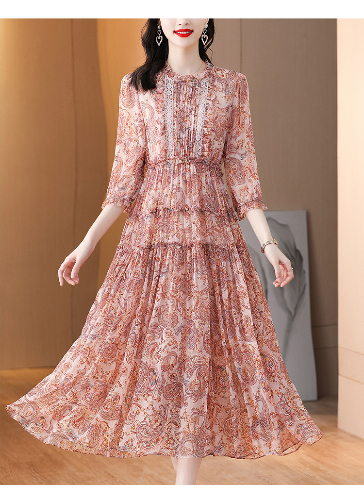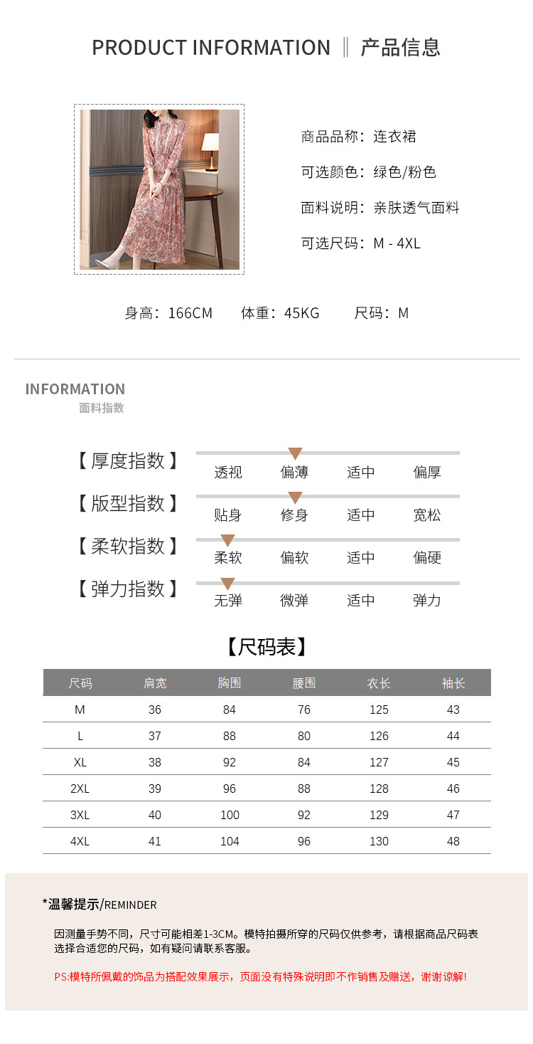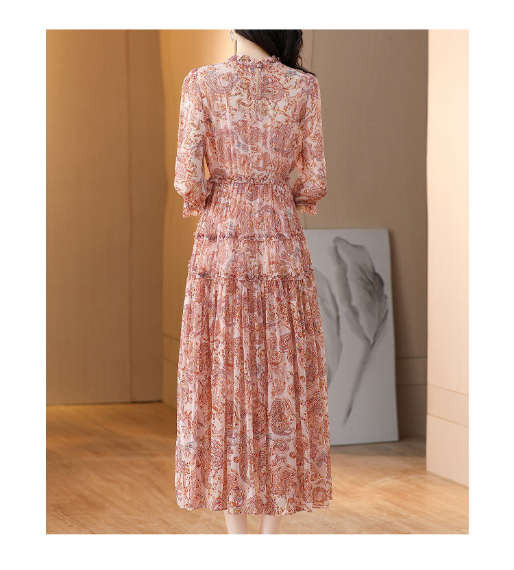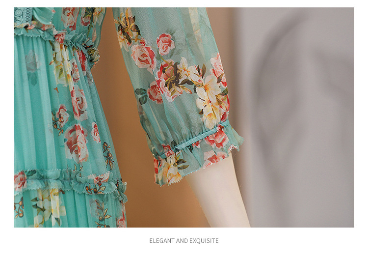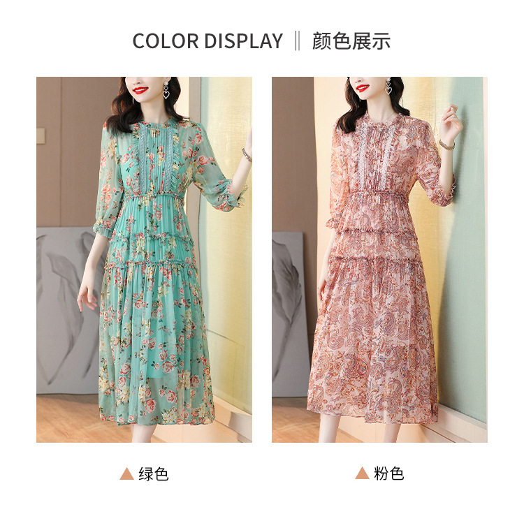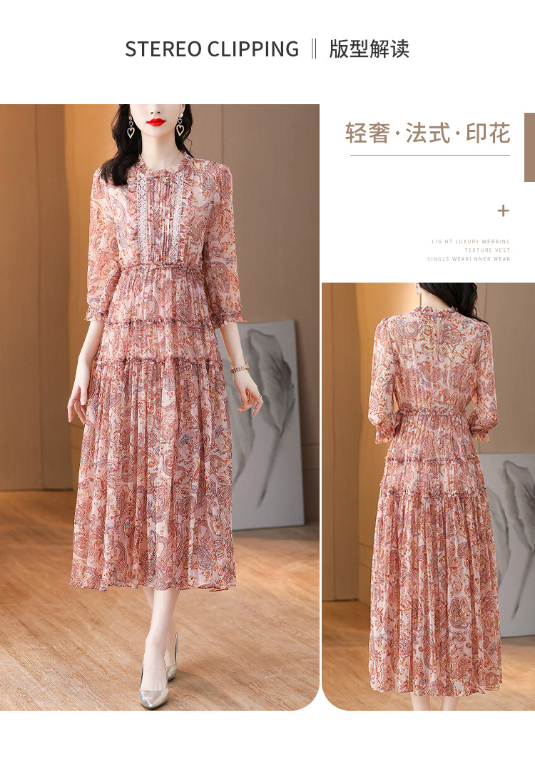 收腰显瘦,气质减龄过膝长裙法式碎花连衣裙AHM-nrg3069