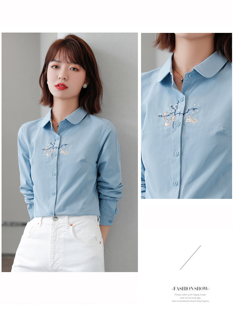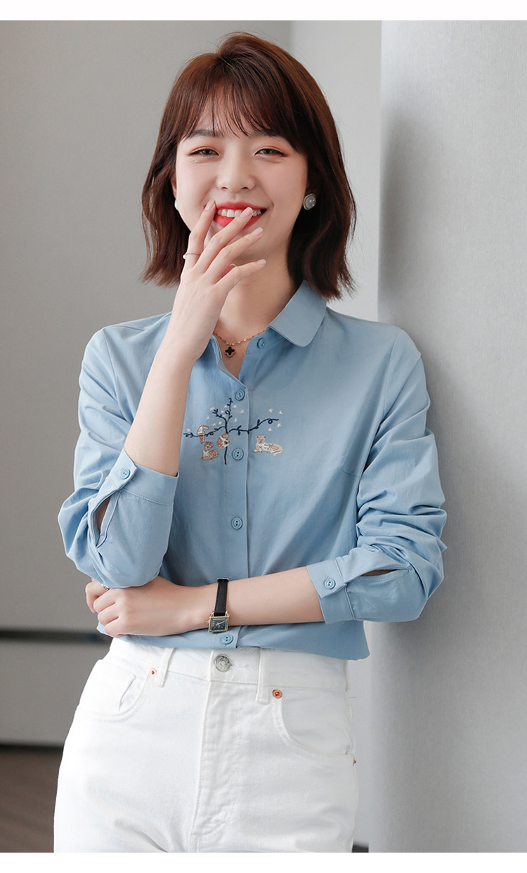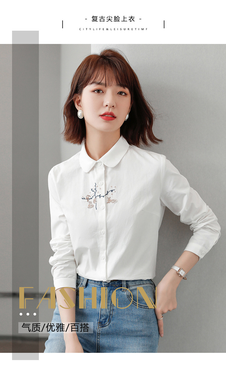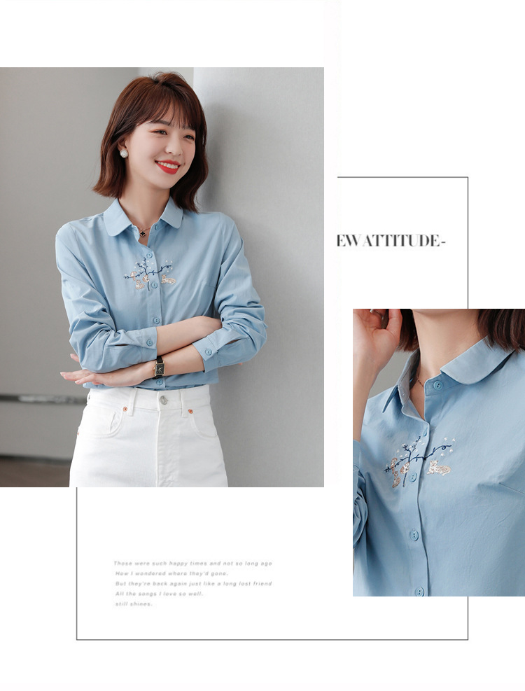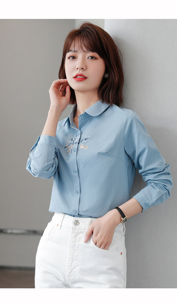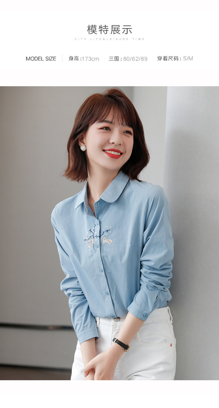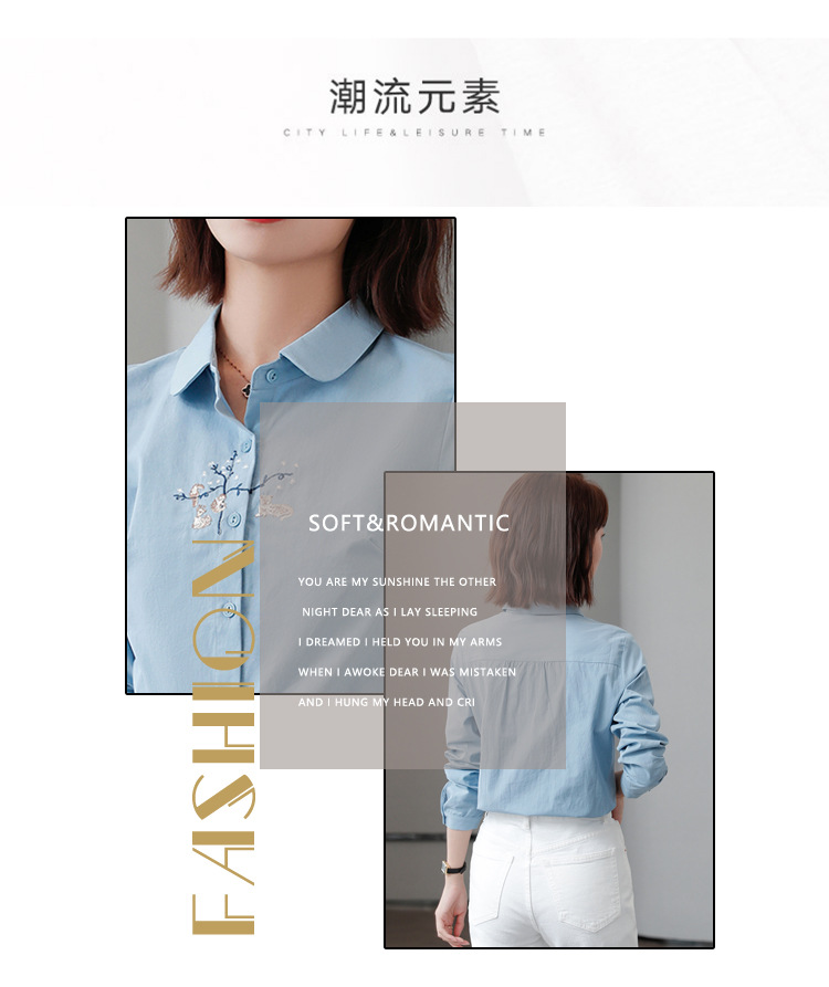 2022秋季新款清新文艺绣花长袖衬衣淑女简约OL职业上衣女衬衫 DL808
