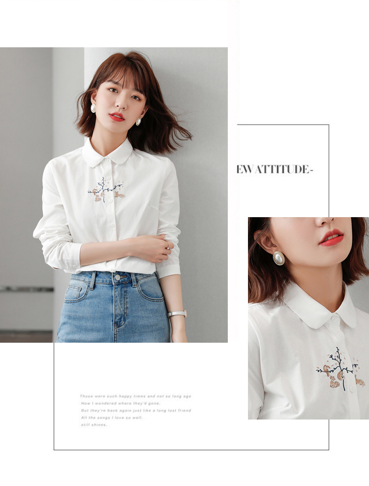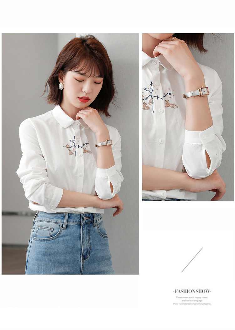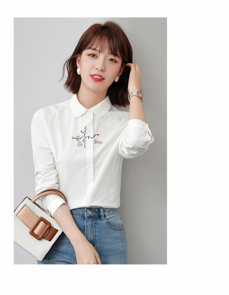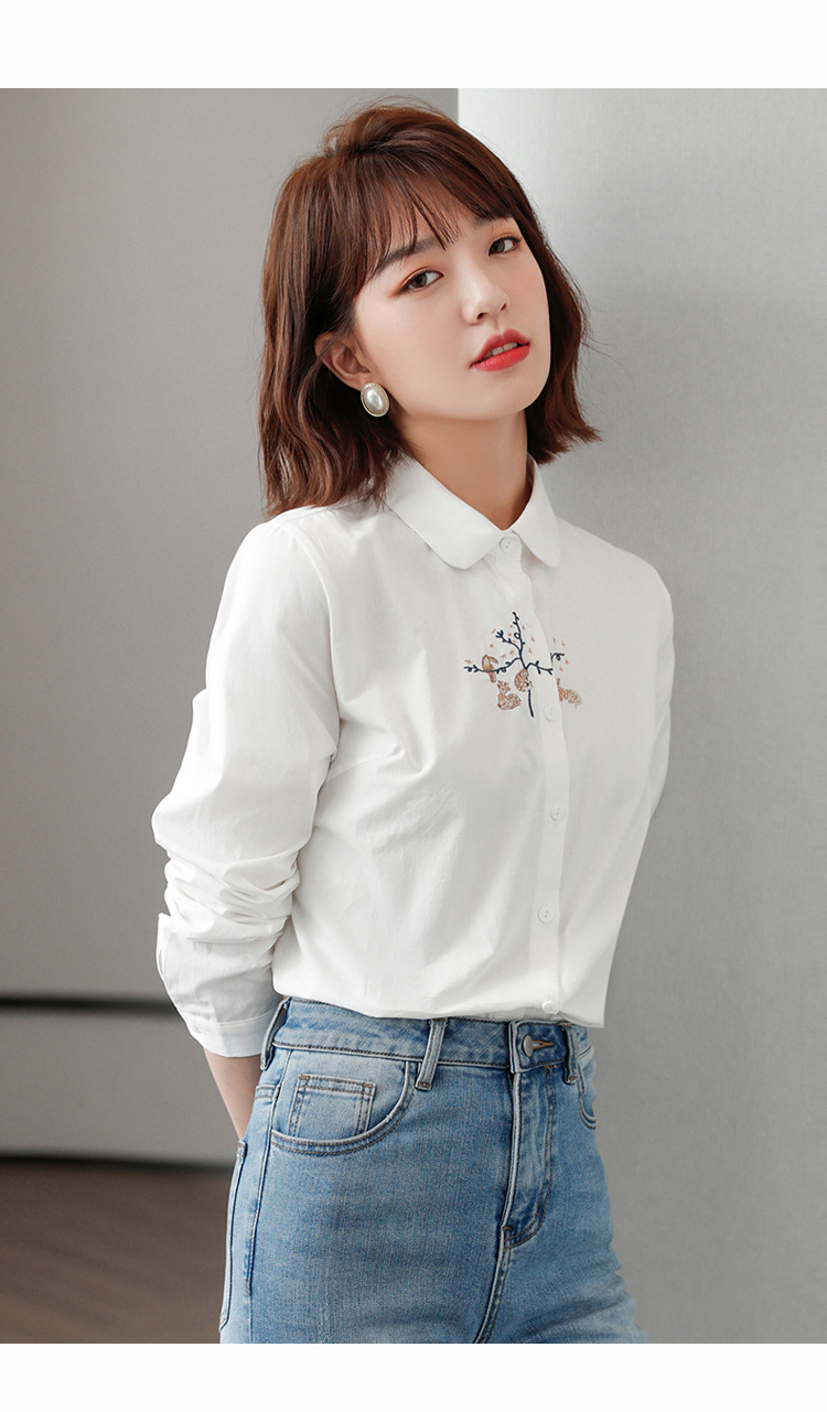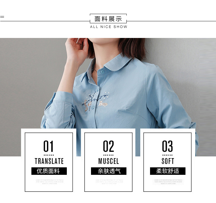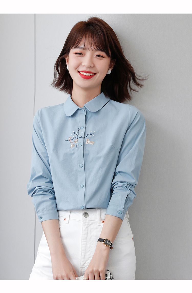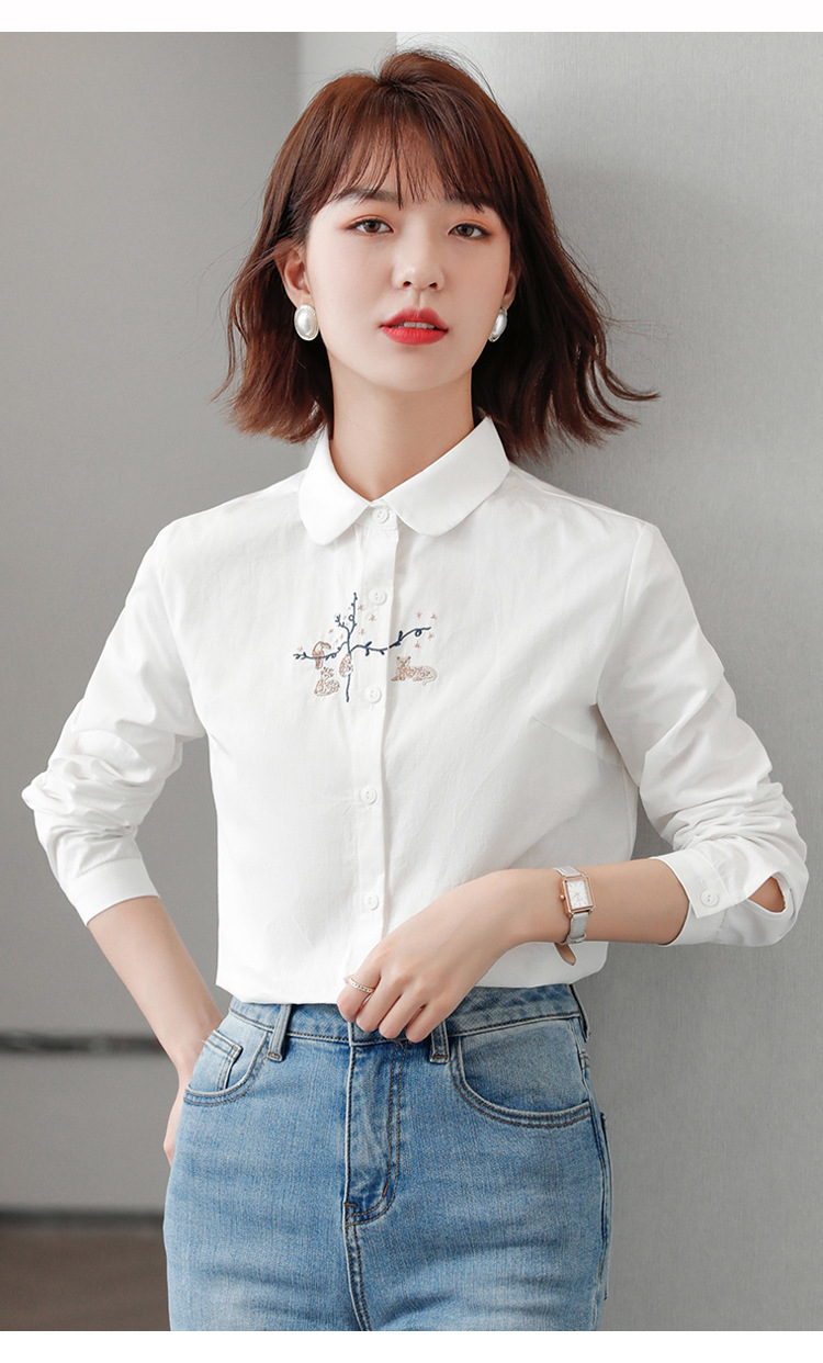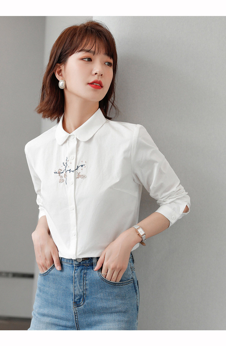 2022秋季新款清新文艺绣花长袖衬衣淑女简约OL职业上衣女衬衫 DL808