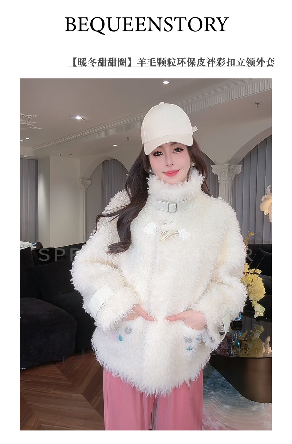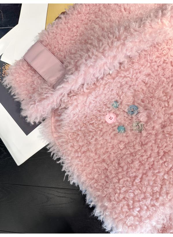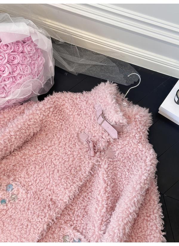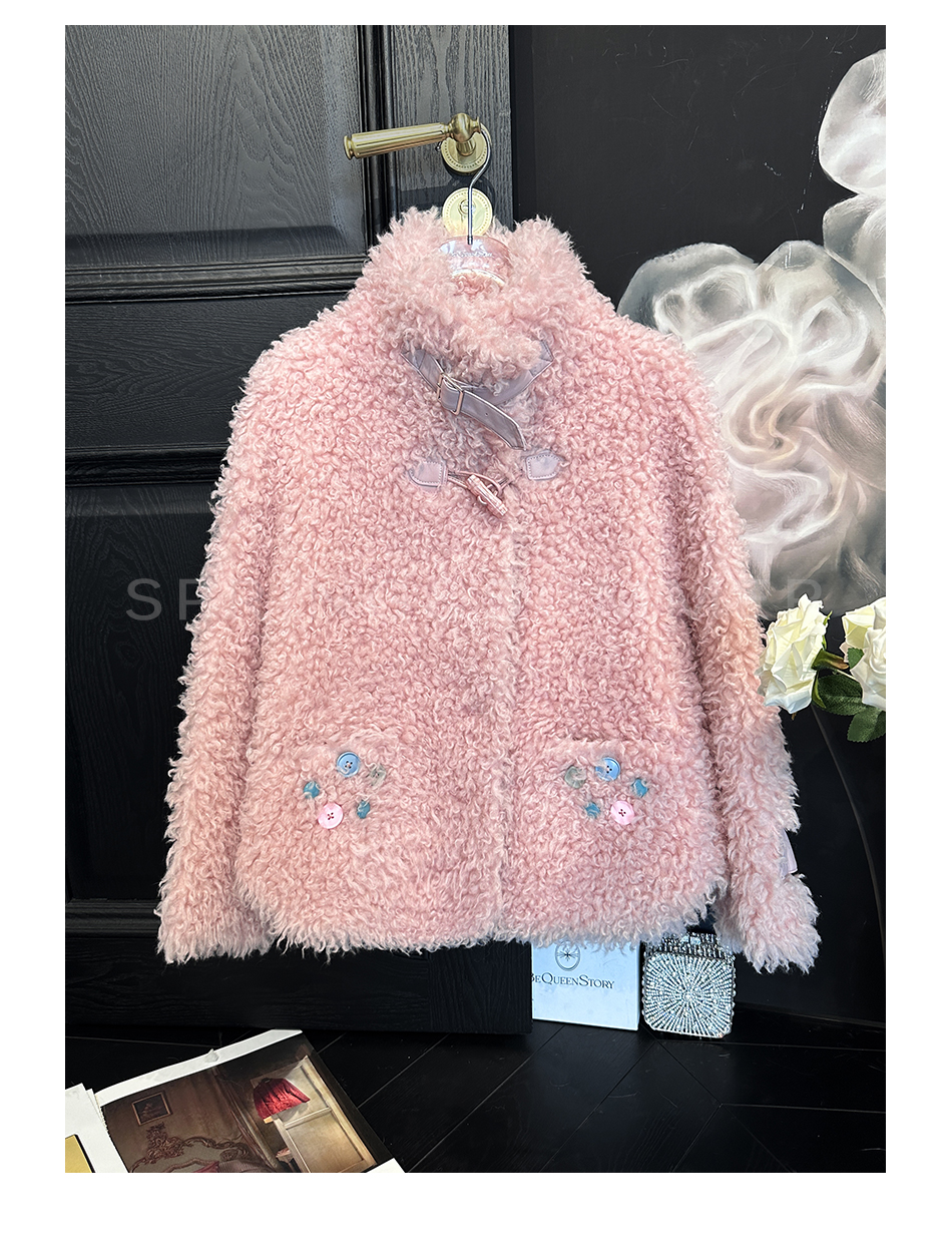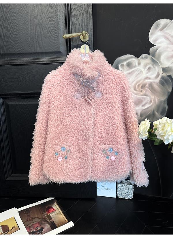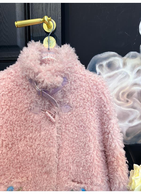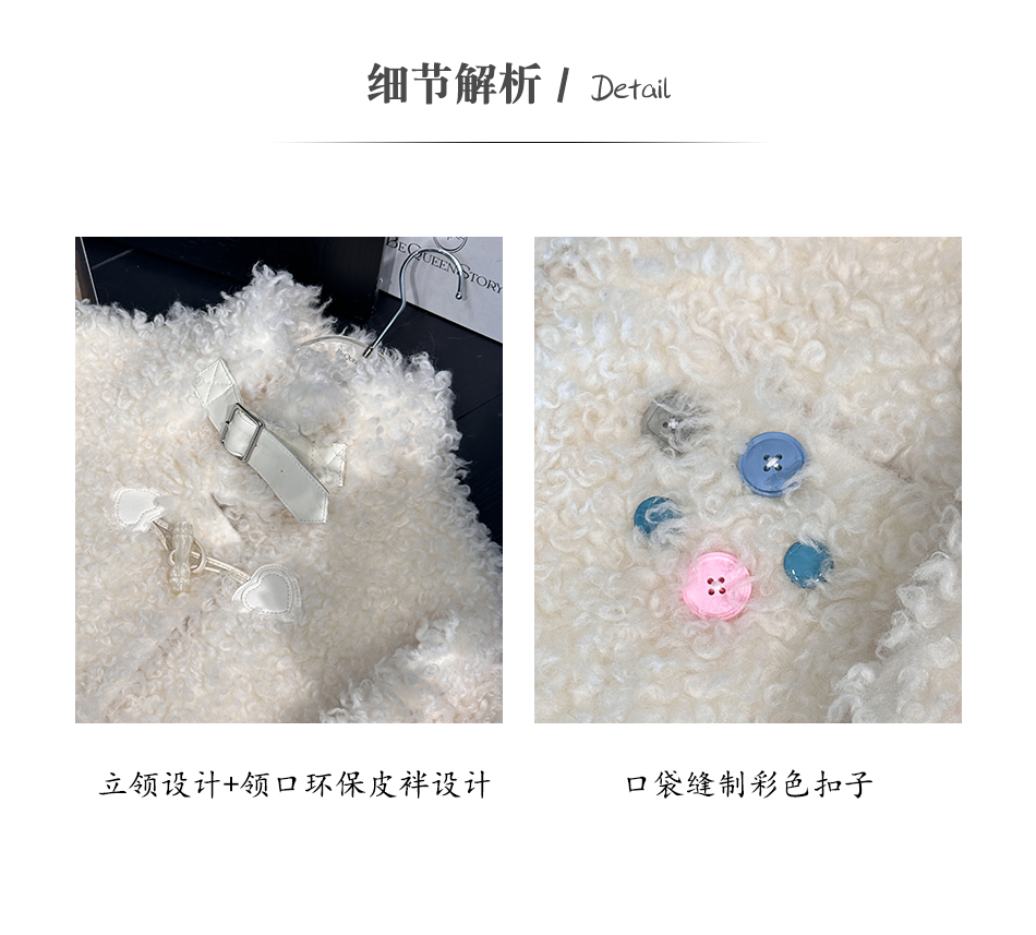 BeQueenStory【暖冬甜甜圈】时尚羊毛颗粒环保皮袢彩扣立领外套