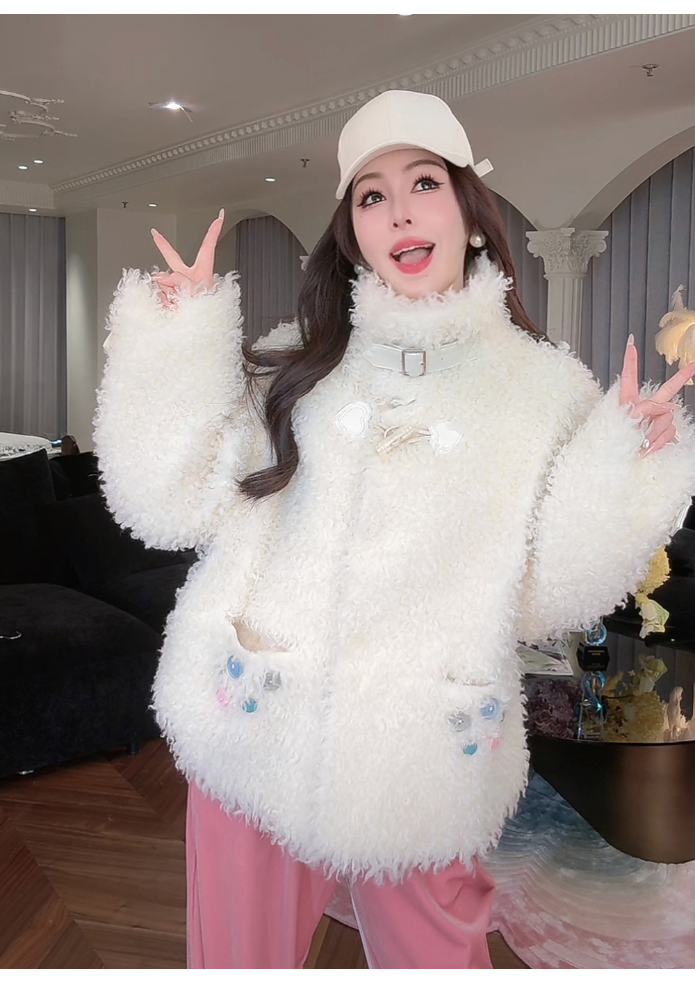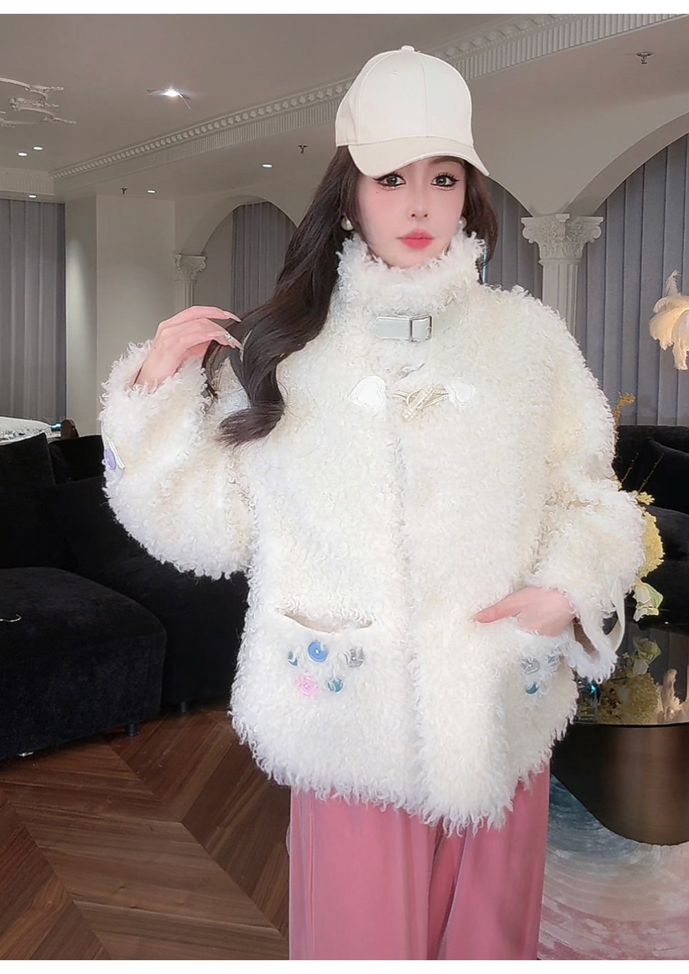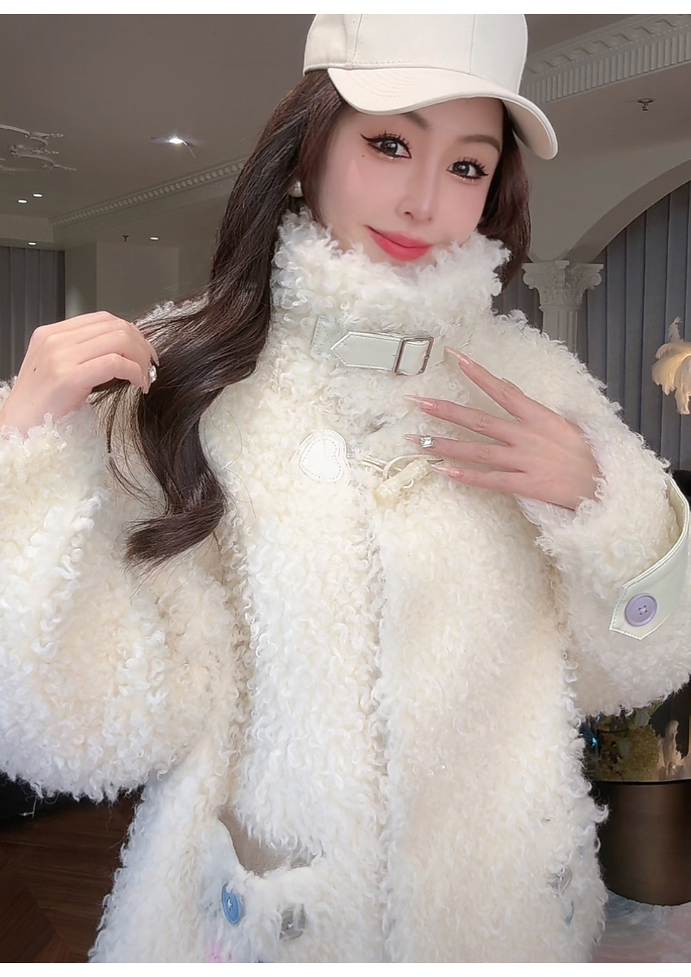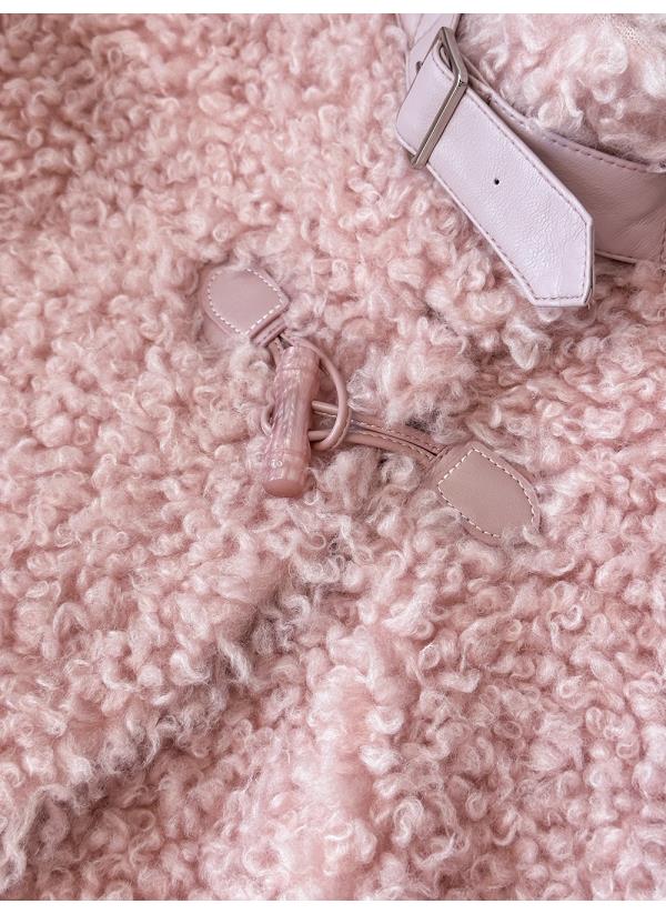 BeQueenStory【暖冬甜甜圈】时尚羊毛颗粒环保皮袢彩扣立领外套
