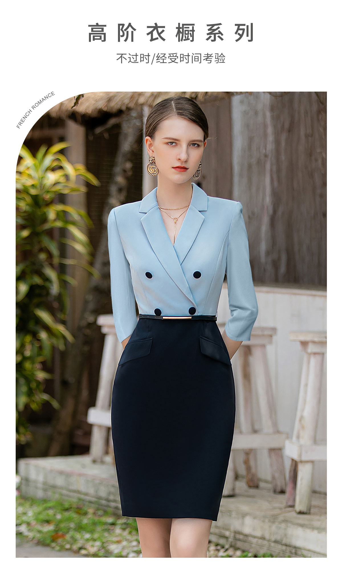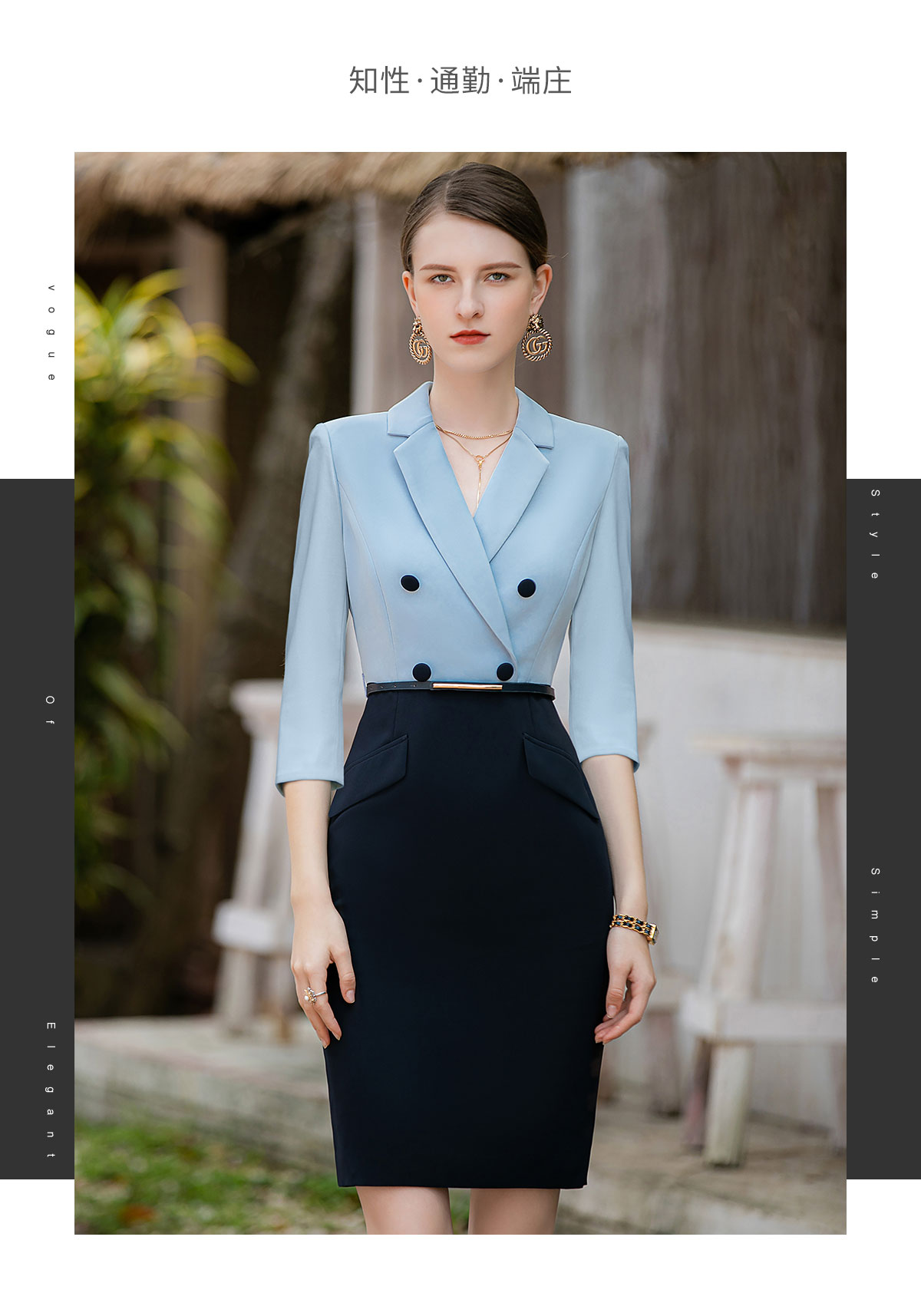 IWY/气质拼接西装连衣裙女中袖职业裙装假两件中袖套裙酒店接待工作服Q1000